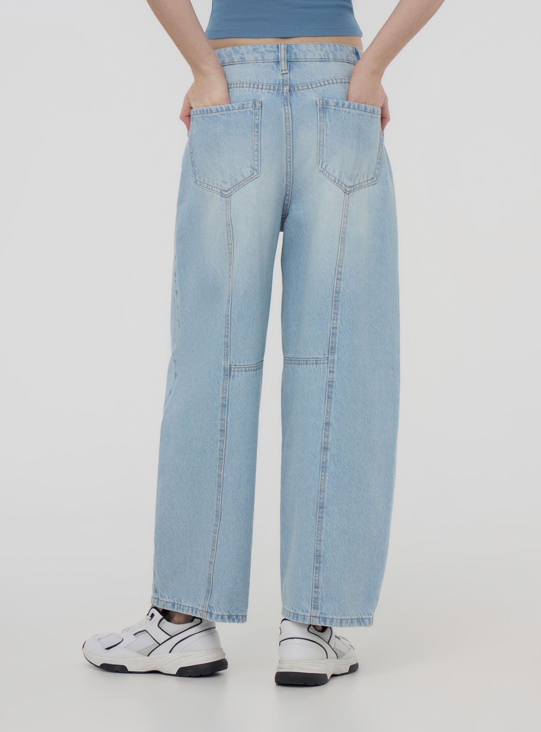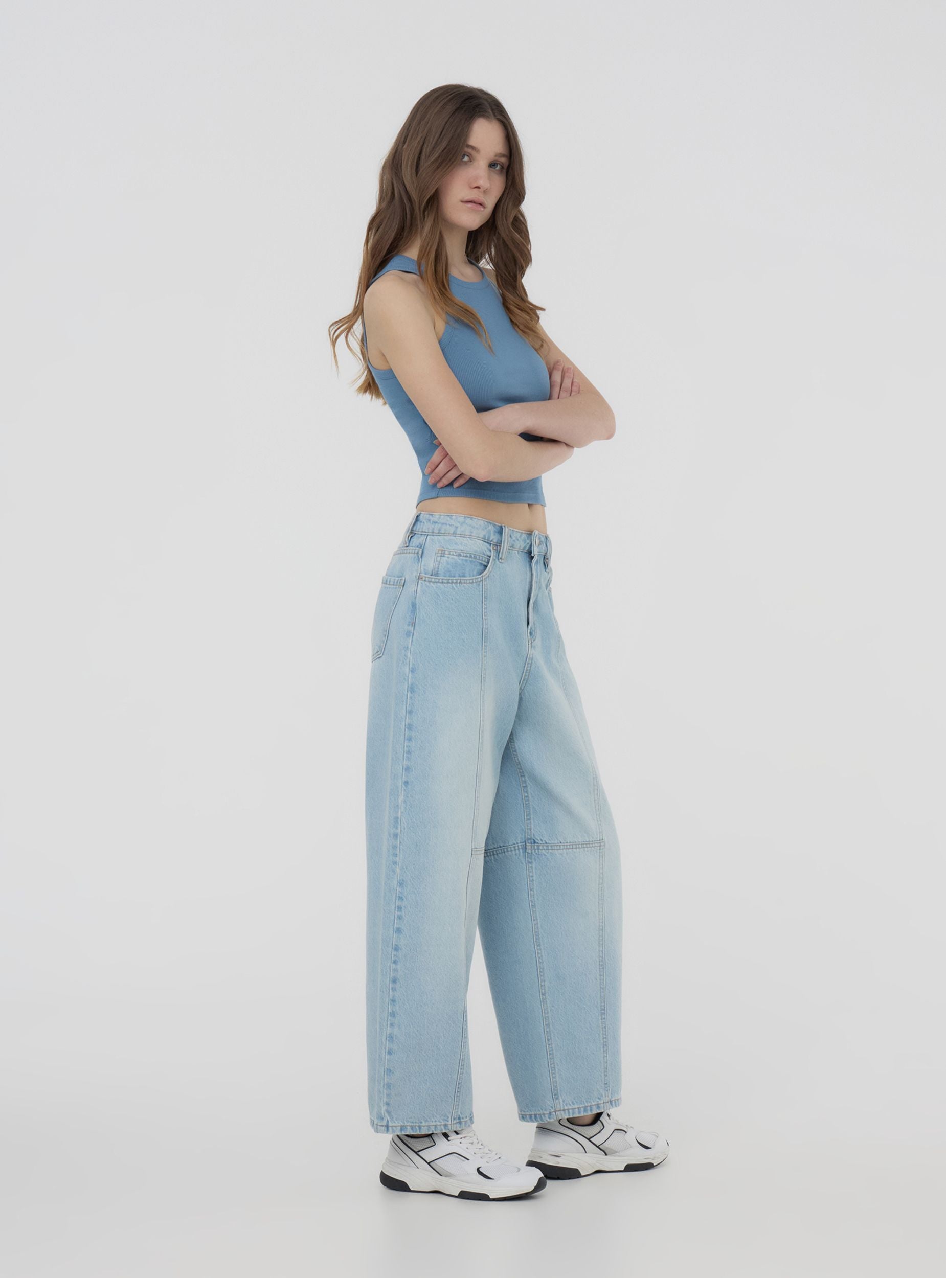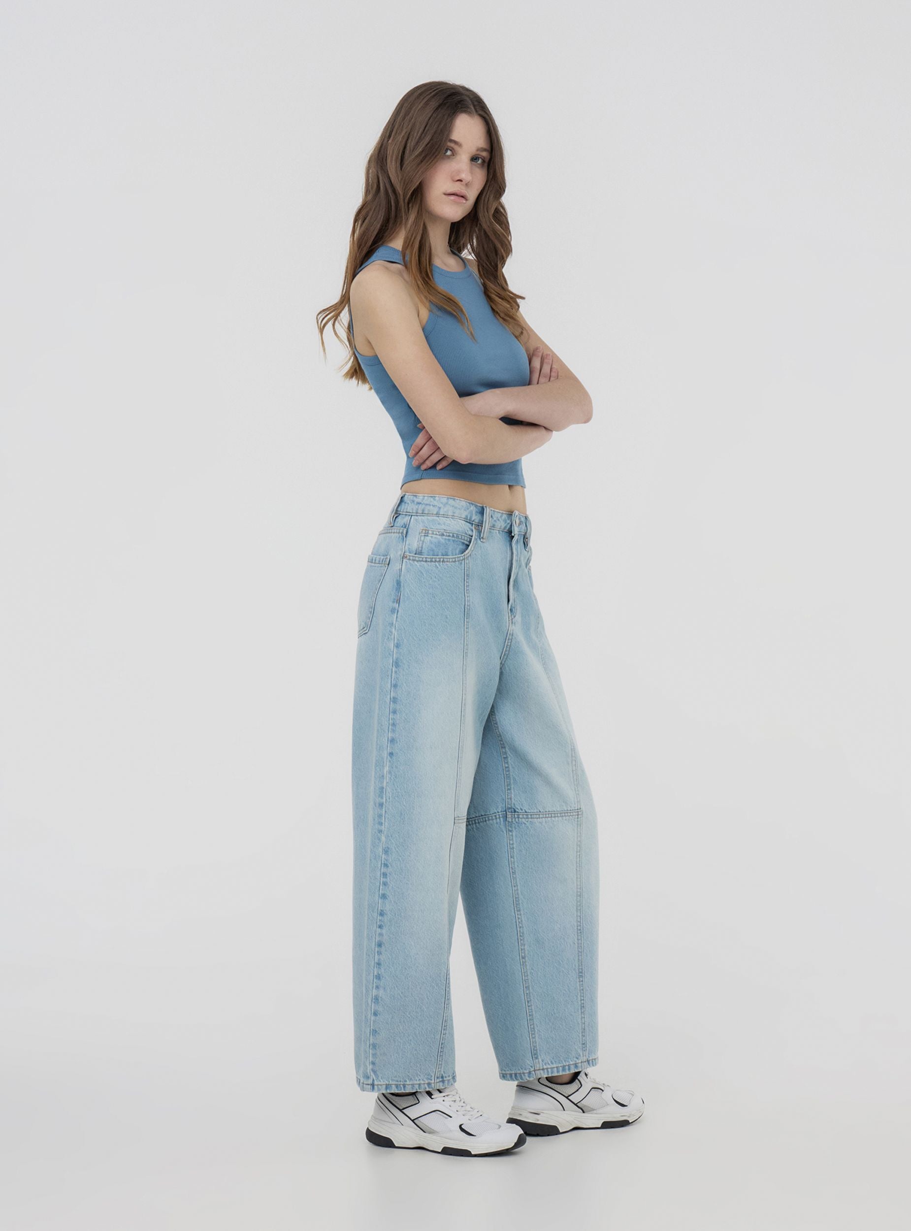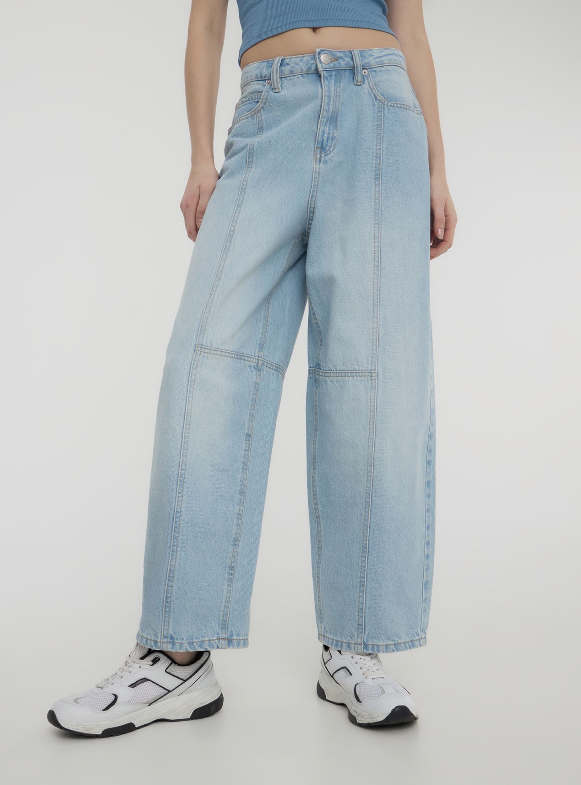 Jeans da donna dal design barrel, ideali per un look casual e moderno, perfetti per il tempo libero o per un outfit informale ma di tendenza. Dotati di passanti in vita, dettagli di cuciture, cinque tasche e pratica chiusura con bottone e zip. Il lavaggio chiaro dona un aspetto fresco e versatile, adatto a numerose occasioni quotidiane.Dettagli