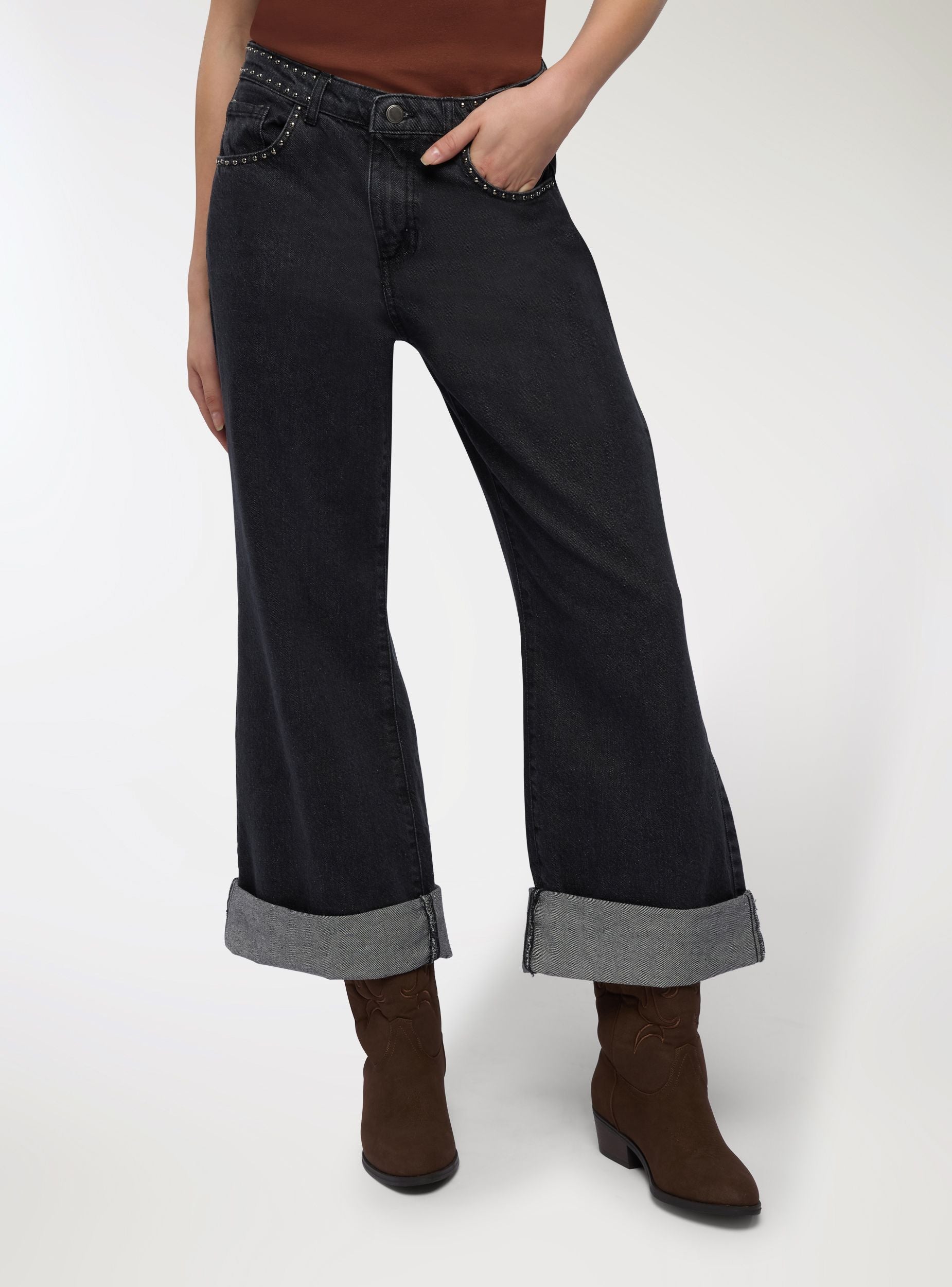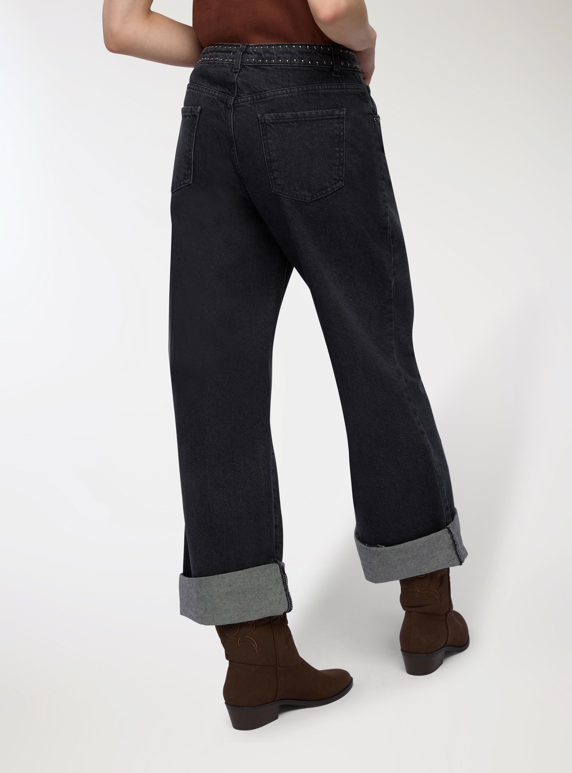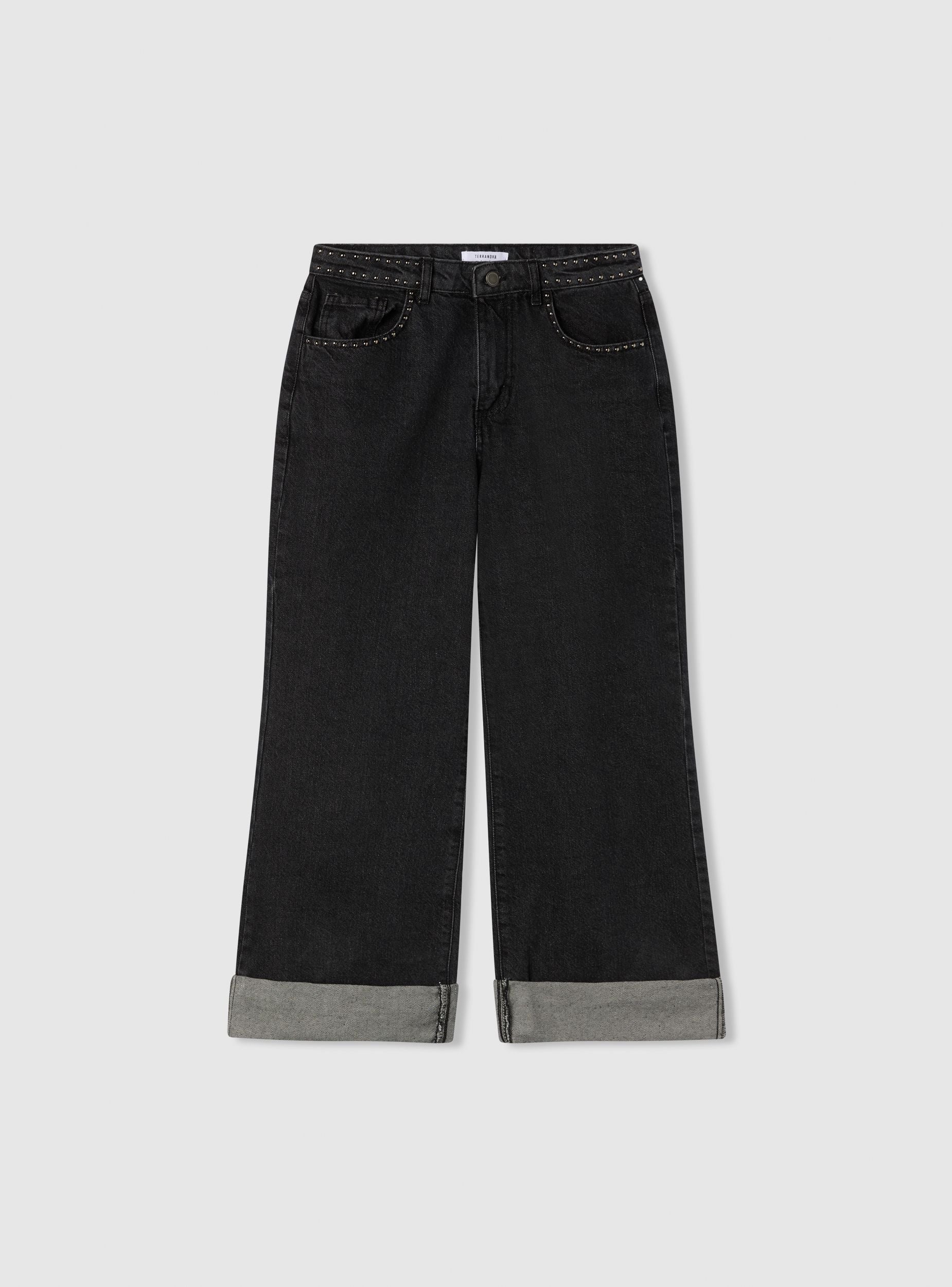 Jeans con borchie e risvolto