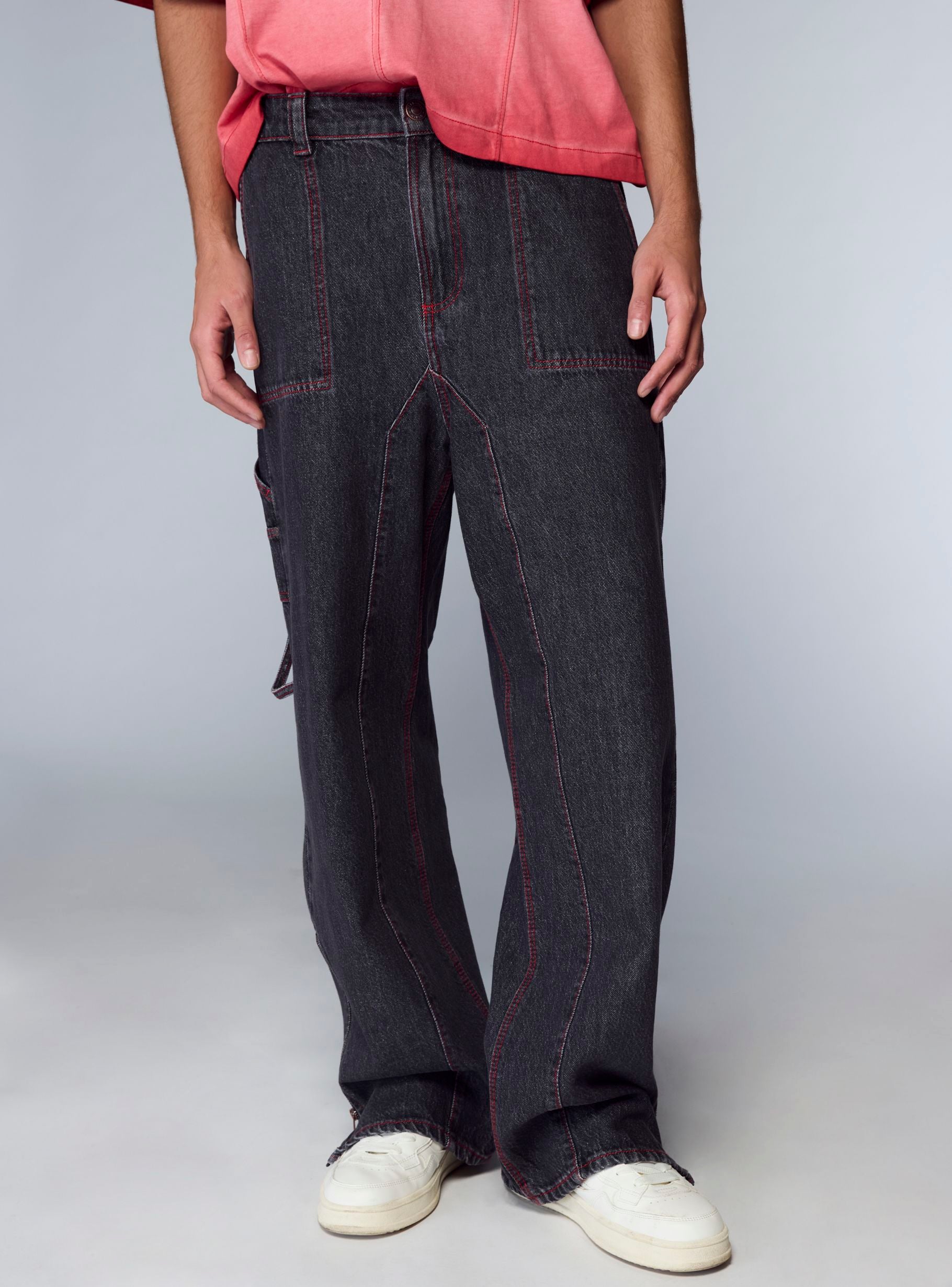 Jeans da uomo in tinta unita con vestibilità oversize e gamba dritta. Presentano passanti in vita, chiusura con bottone e zip, tasche anteriori applicate e tasche posteriori a toppa, più taschino laterale ispirazione utility. Cuciture a contrasto che valorizzano le linee e zip al fondo gamba per modulare l’ampiezza. Ideali per look urban con felpe o camicie casual e sneakers. Questo articolo fa parte del progetto TRNPOPLAB nato dalla collaborazione con NABA Milano. Gli studenti di fashion design hanno dato vita a collezioni ispirate ai trend più cool del momento. E ora vedranno le loro creazioni prendere vita e arrivare direttamente nelle tue mani!Dettagli
