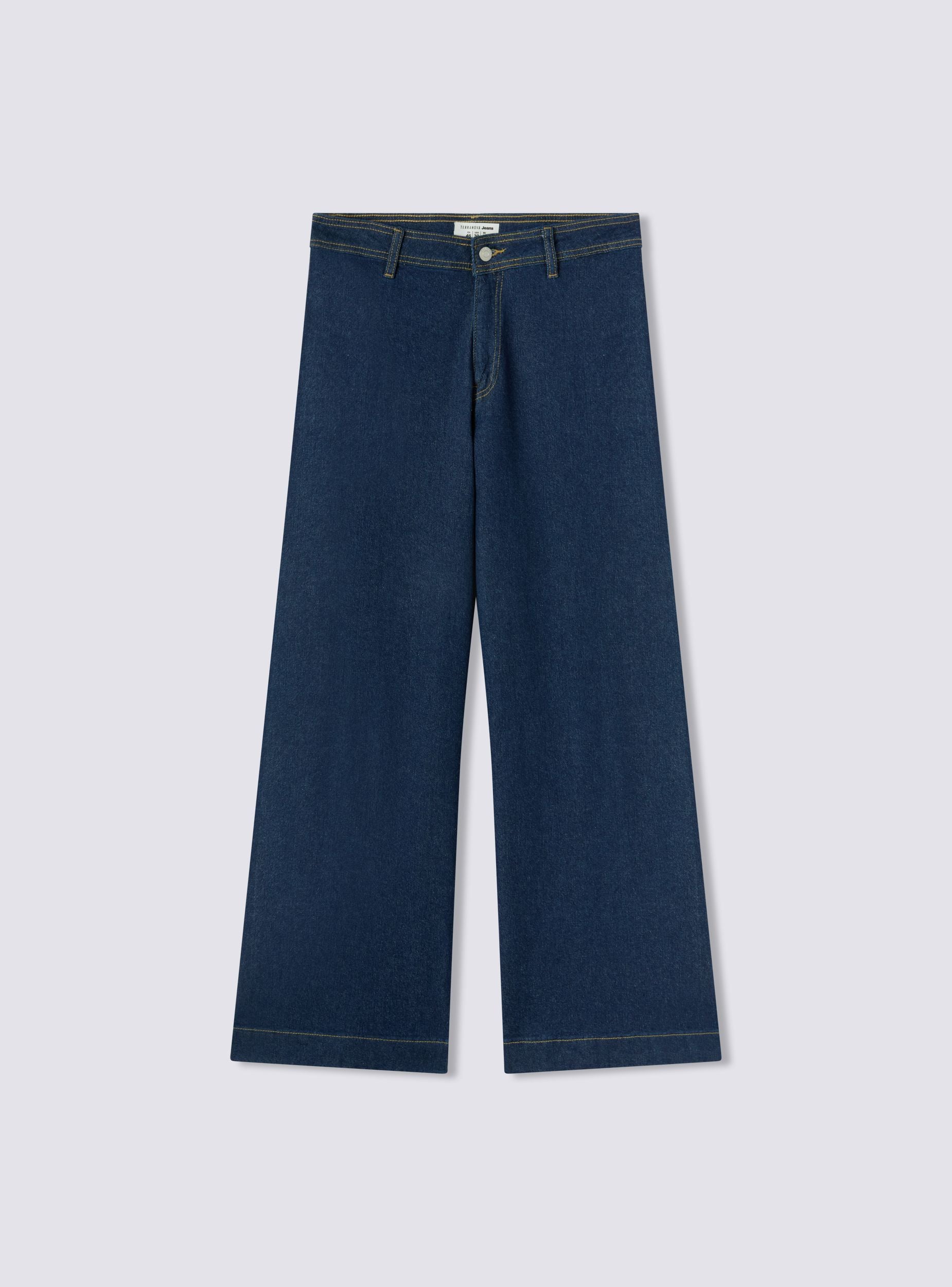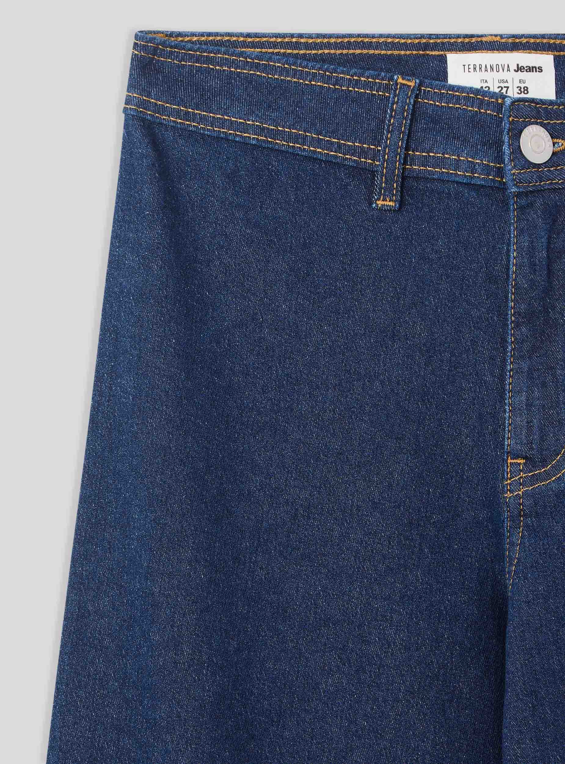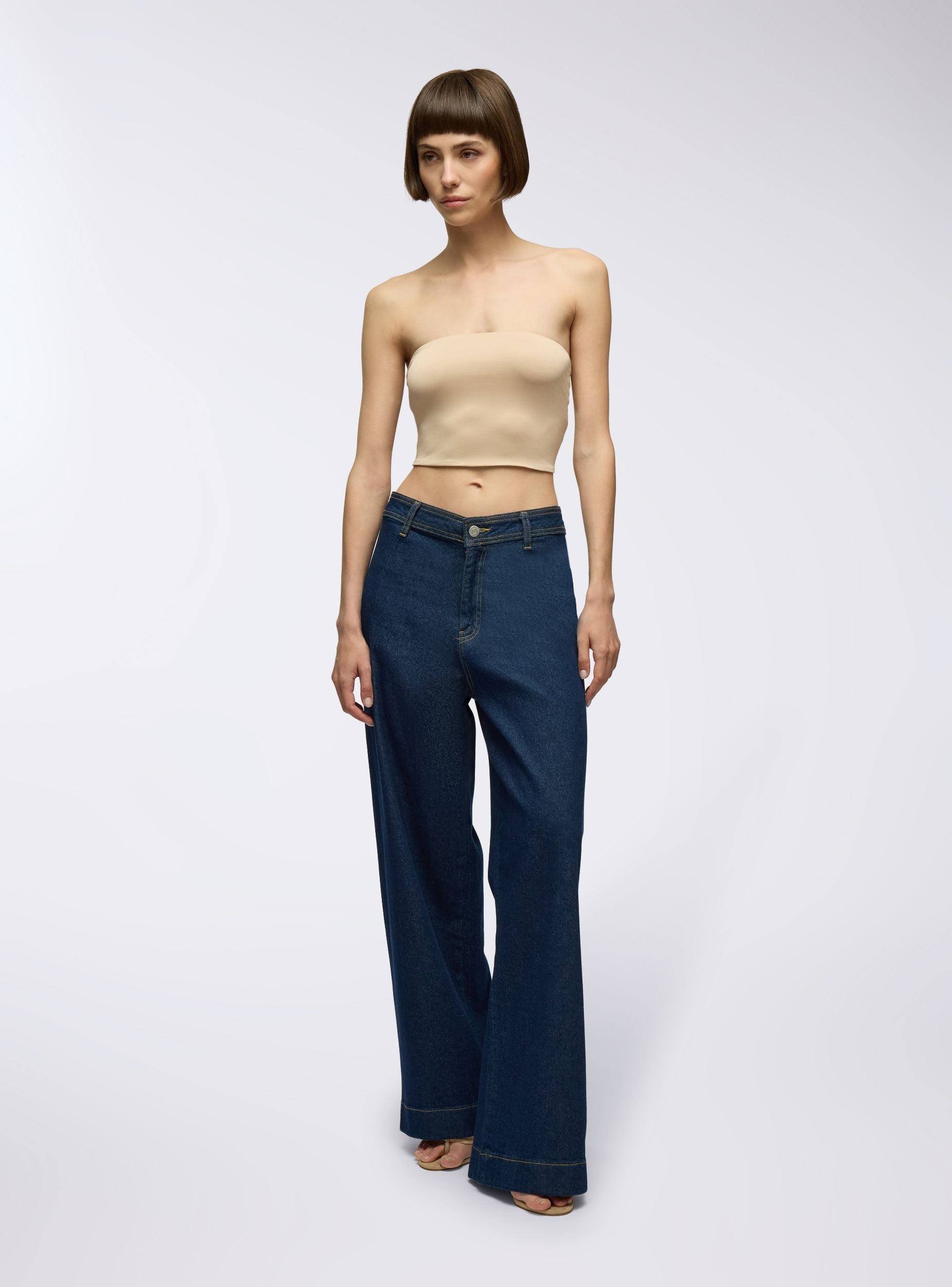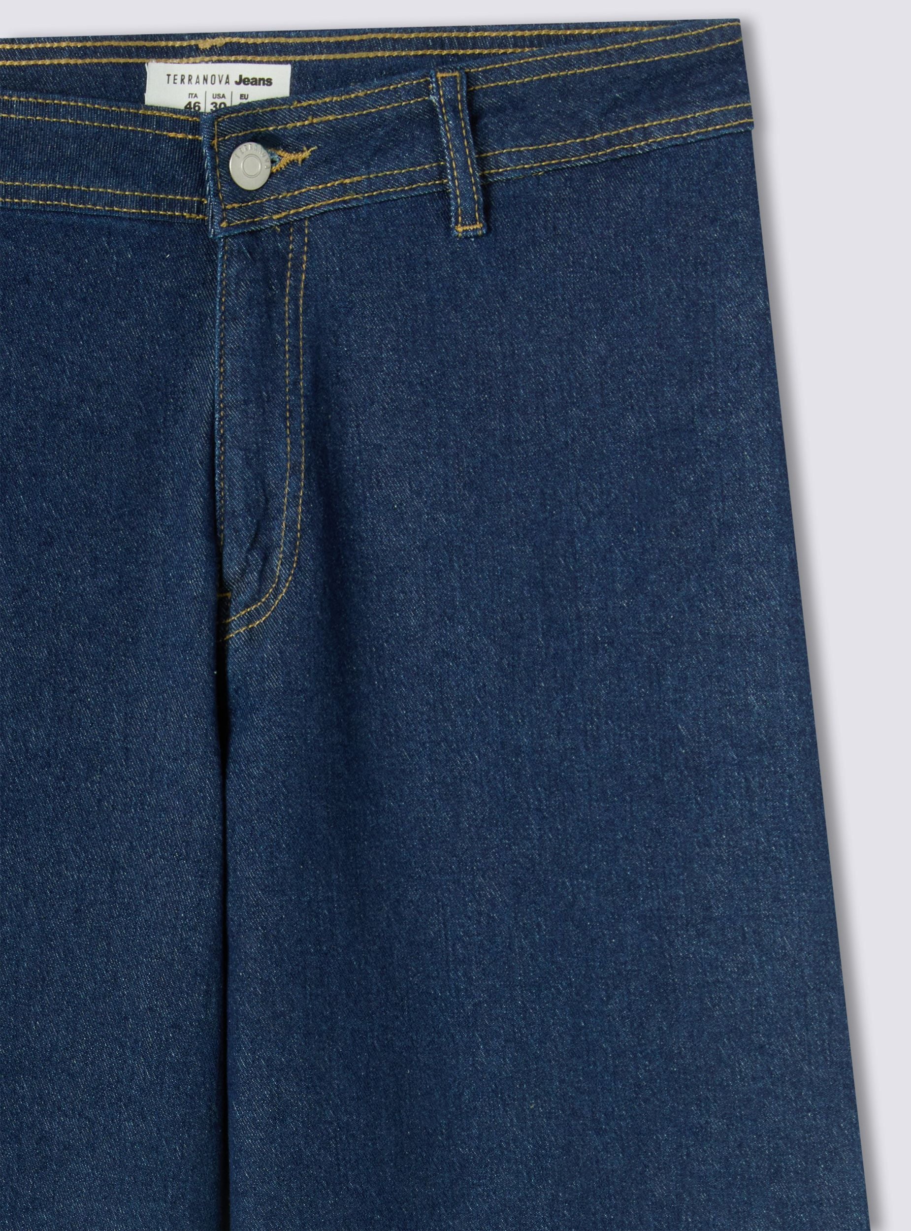 Jeans da donna, dal design a tinta unita e tonalità scura, ideali per un look contemporaneo. Caratterizzati da una chiusura con bottone, passanti in vita per eventuali cinture e comode tasche posteriori. Il modello wide leg offre una vestibilità ampia e moderna, perfetta per chi cerca uno stile unico e di tendenza.Dettagli