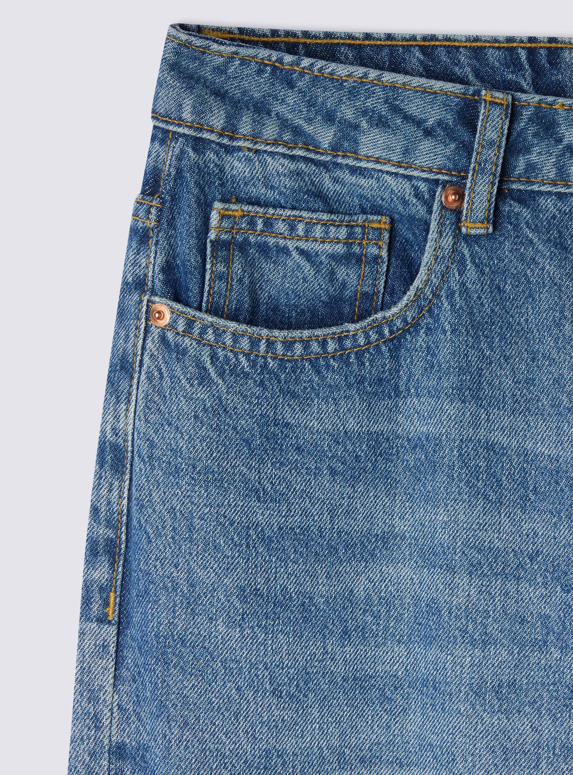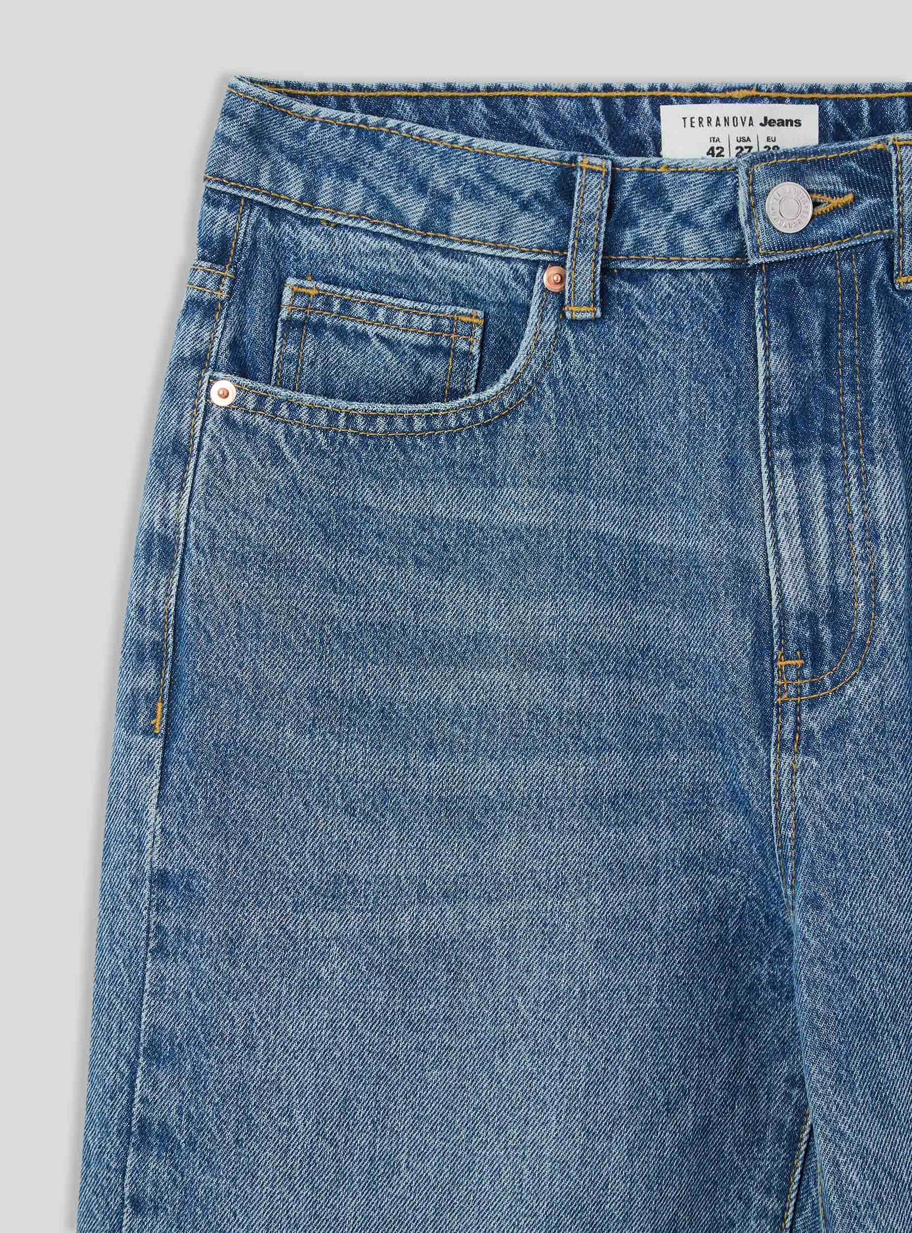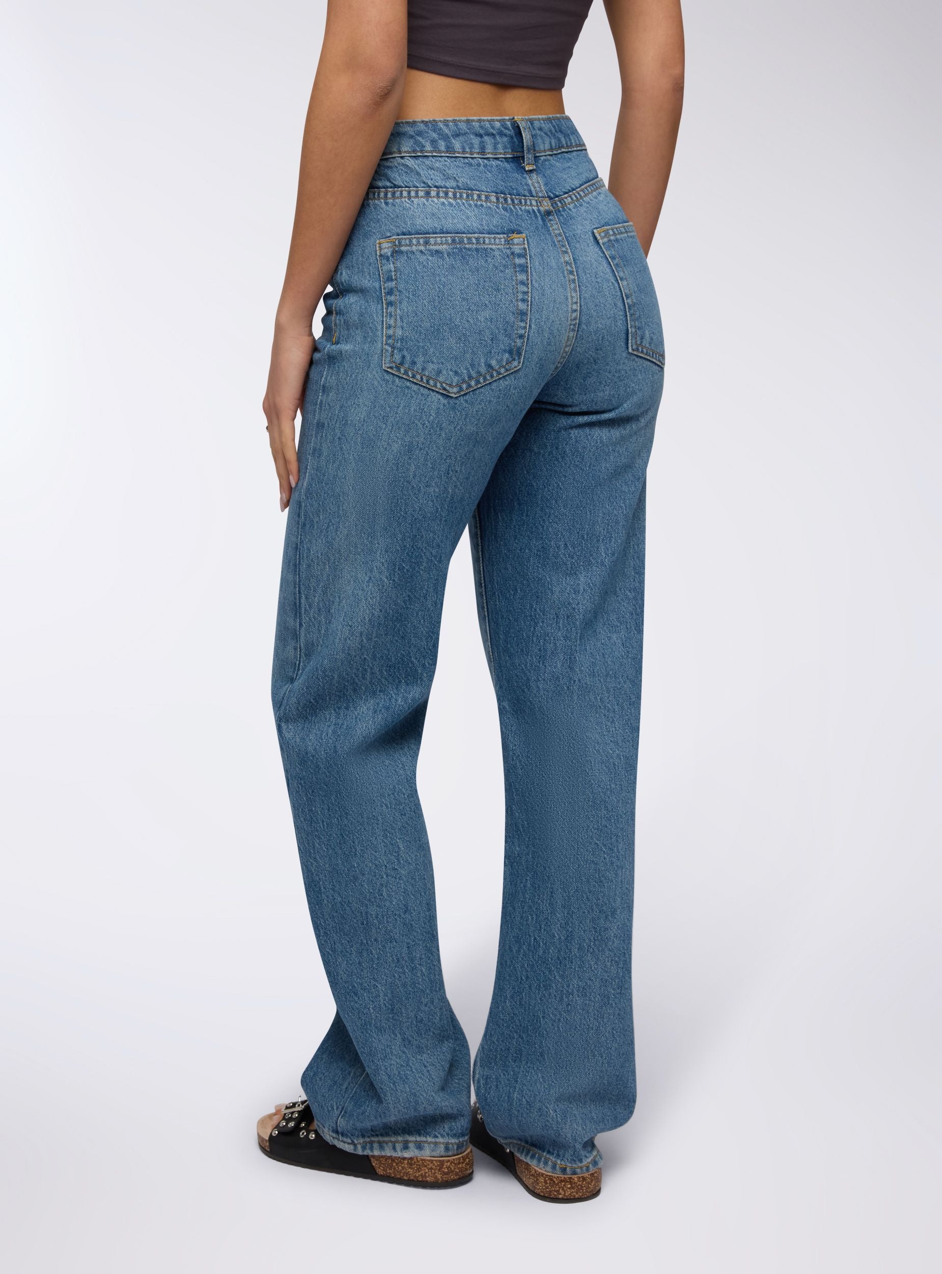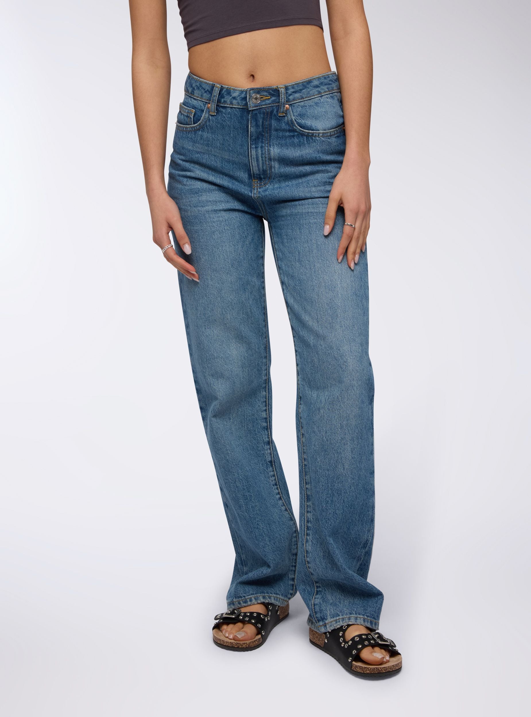 Jeans da donna ideali per un look casual e versatile, perfetti per il tempo libero o una giornata in città. Caratterizzati da un taglio straight per una vestibilità confortevole, presentano passanti in vita, cinque tasche funzionali, chiusura con bottone e zip e un lavaggio medio acid wash che dona un tocco moderno e di tendenza.Dettagli