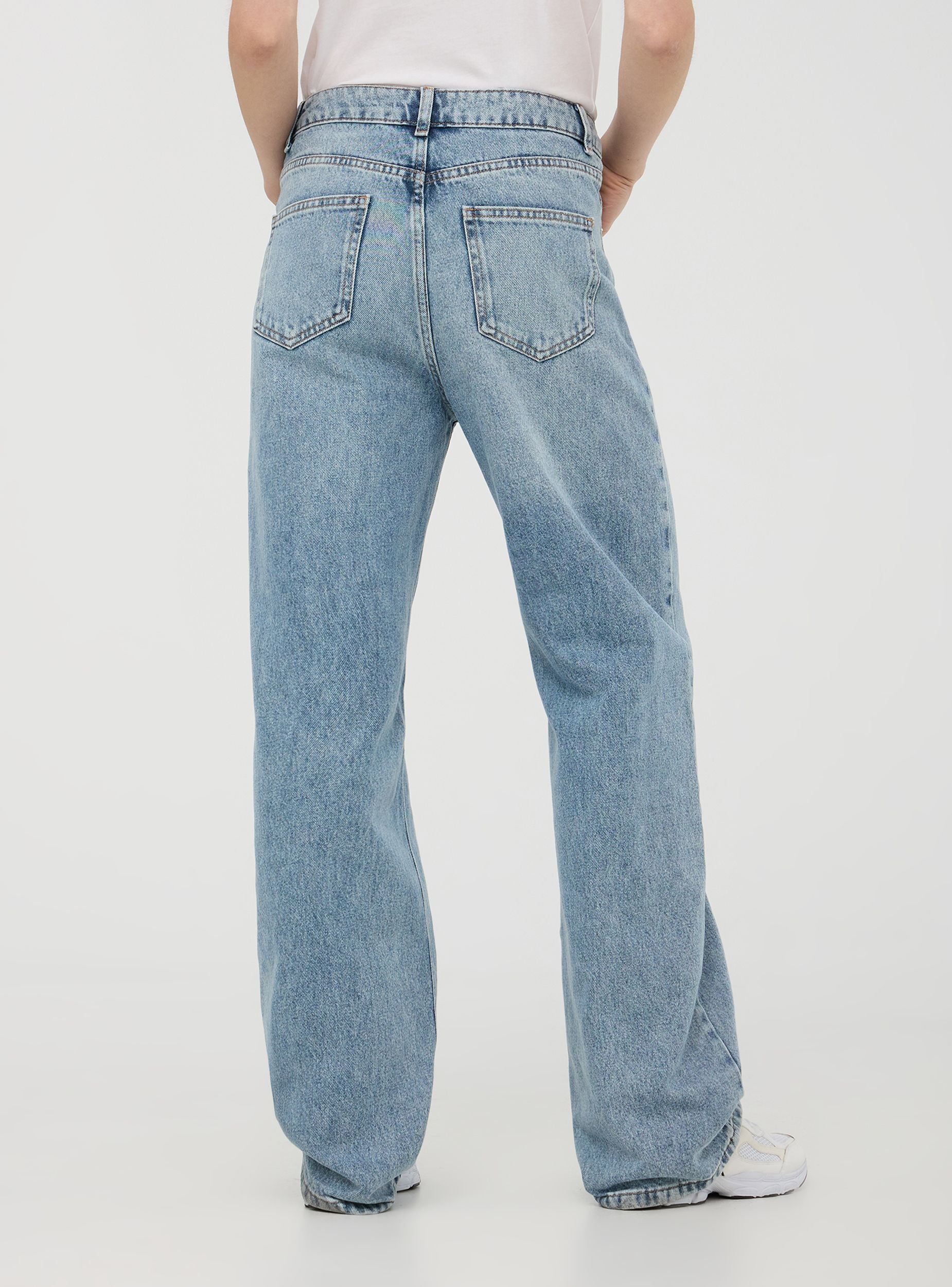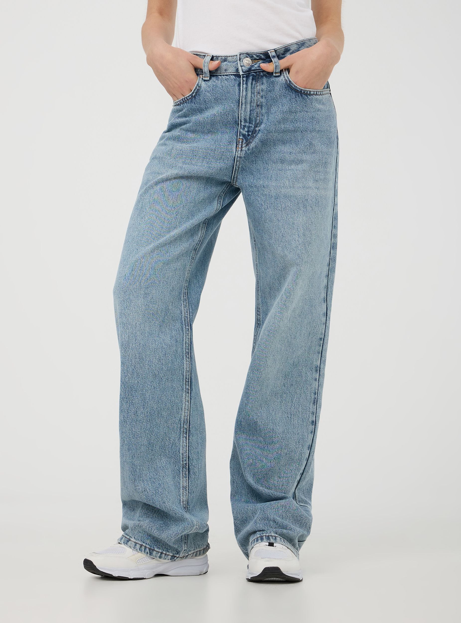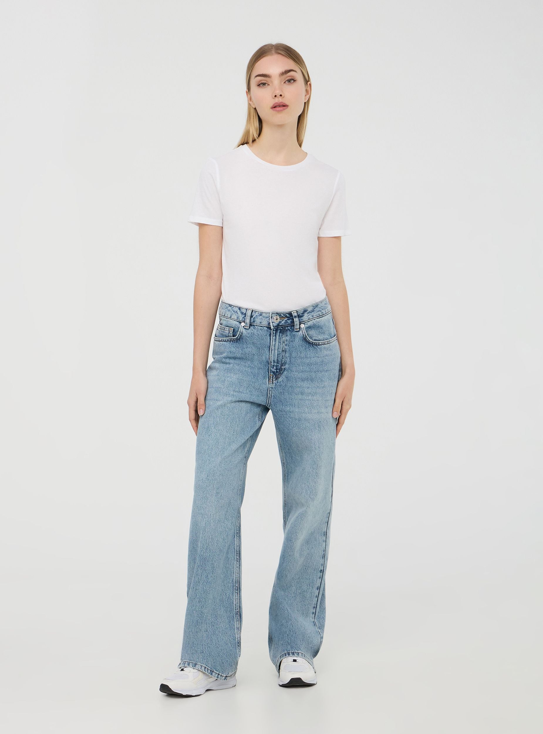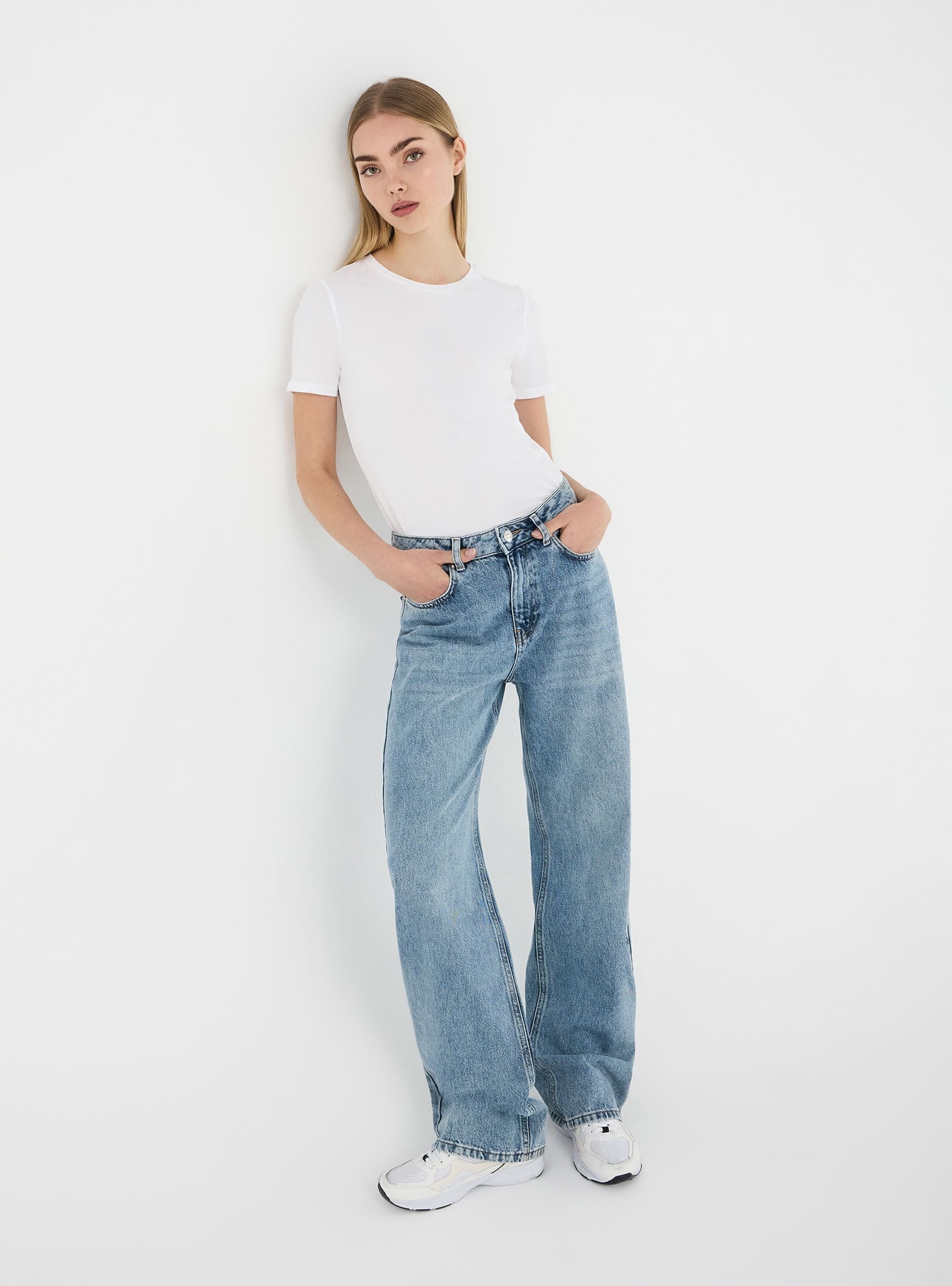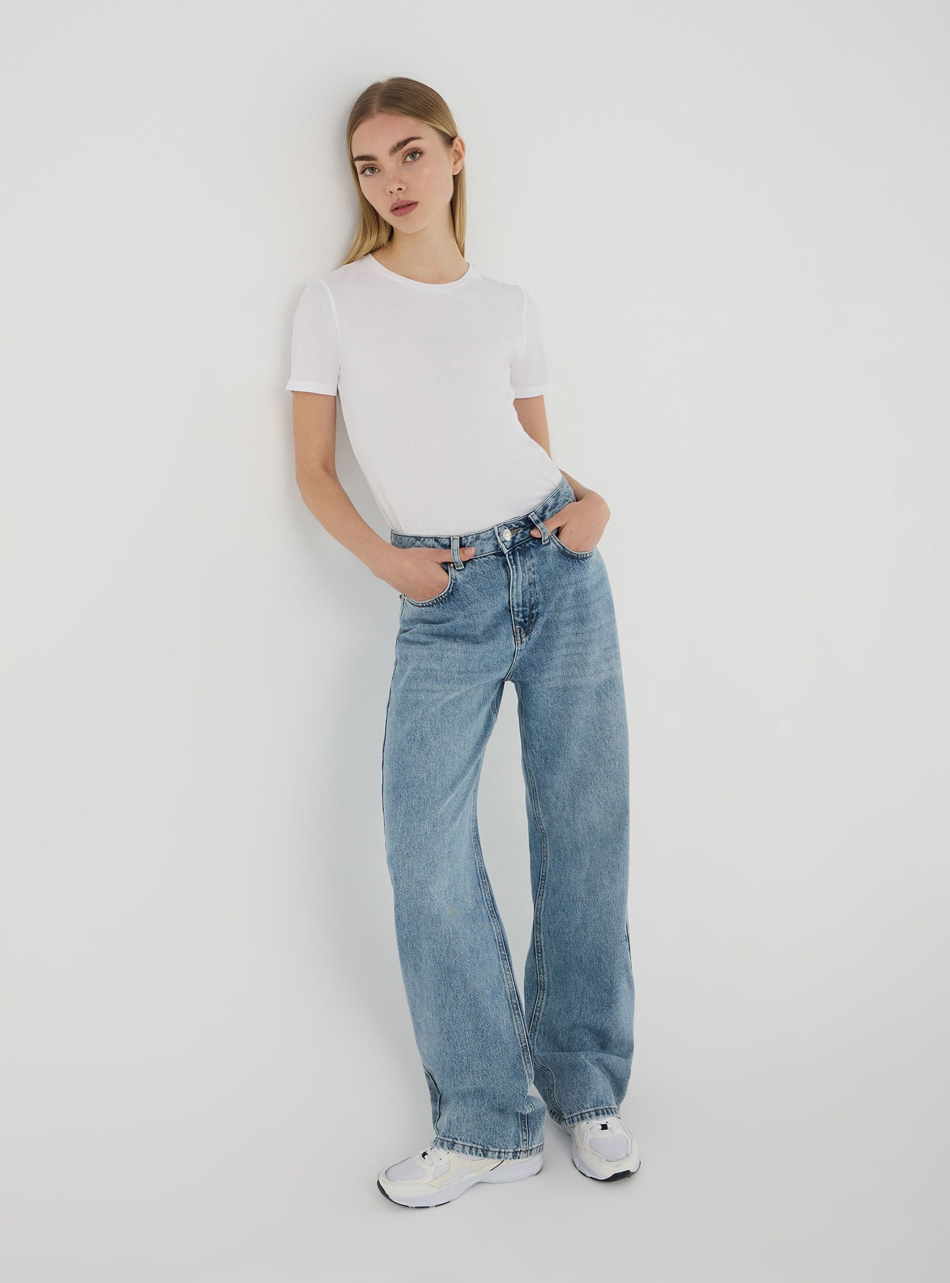 Jeans da donna ideali per un look casual e rilassato, perfetti per il tempo libero o le uscite informali. Modello wide leg con passanti in vita, pratiche cinque tasche e chiusura con bottone e zip. Il lavaggio medio acid wash aggiunge un tocco moderno, rendendoli un capo versatile e di tendenza.Dettagli