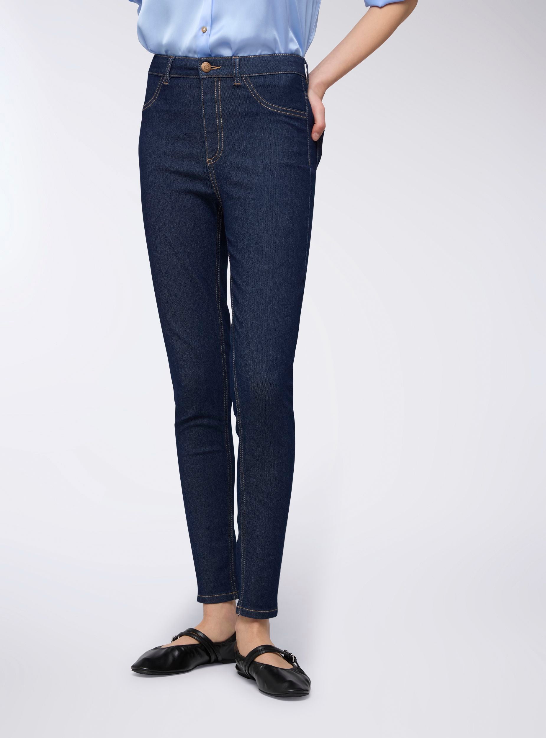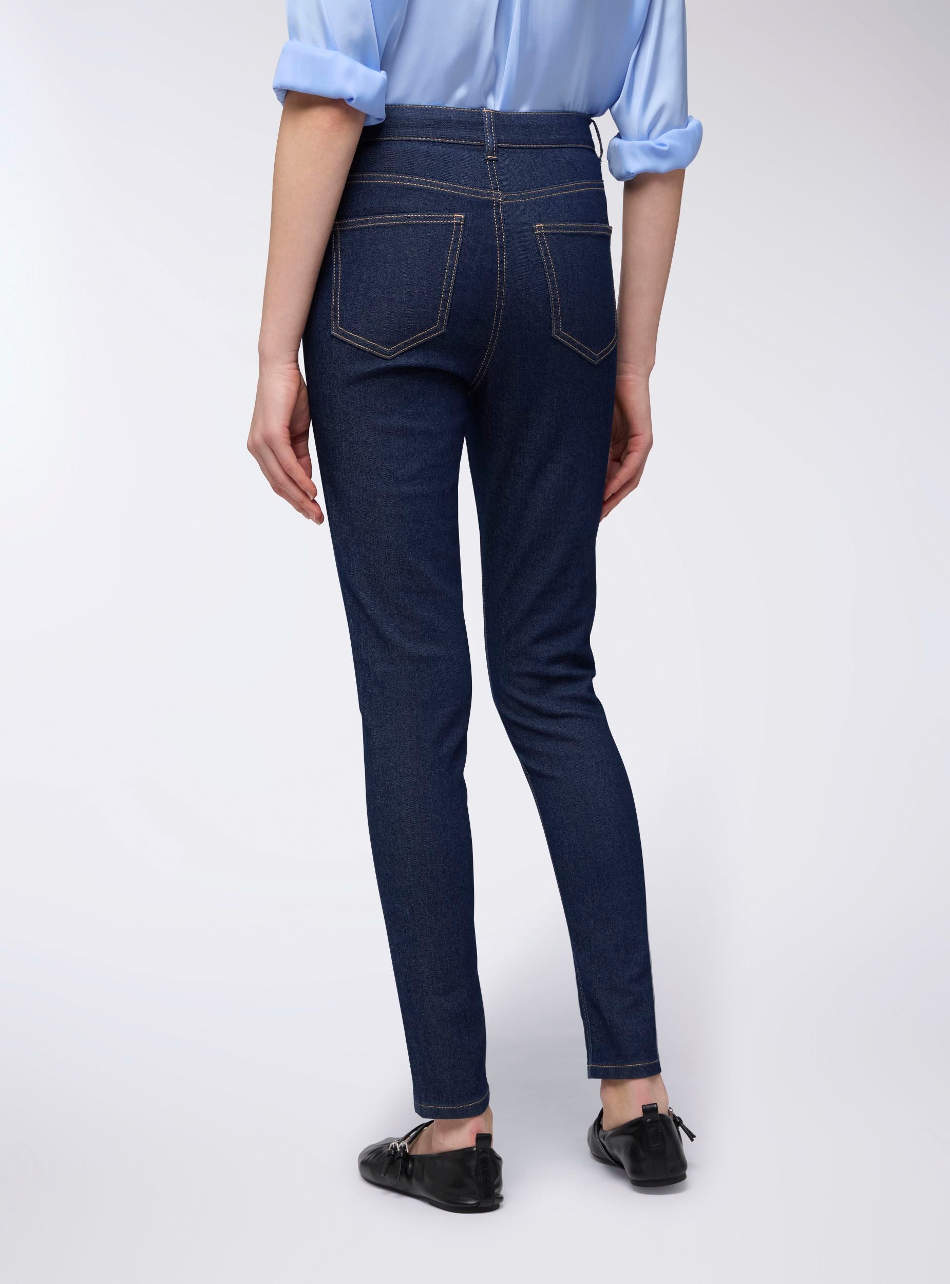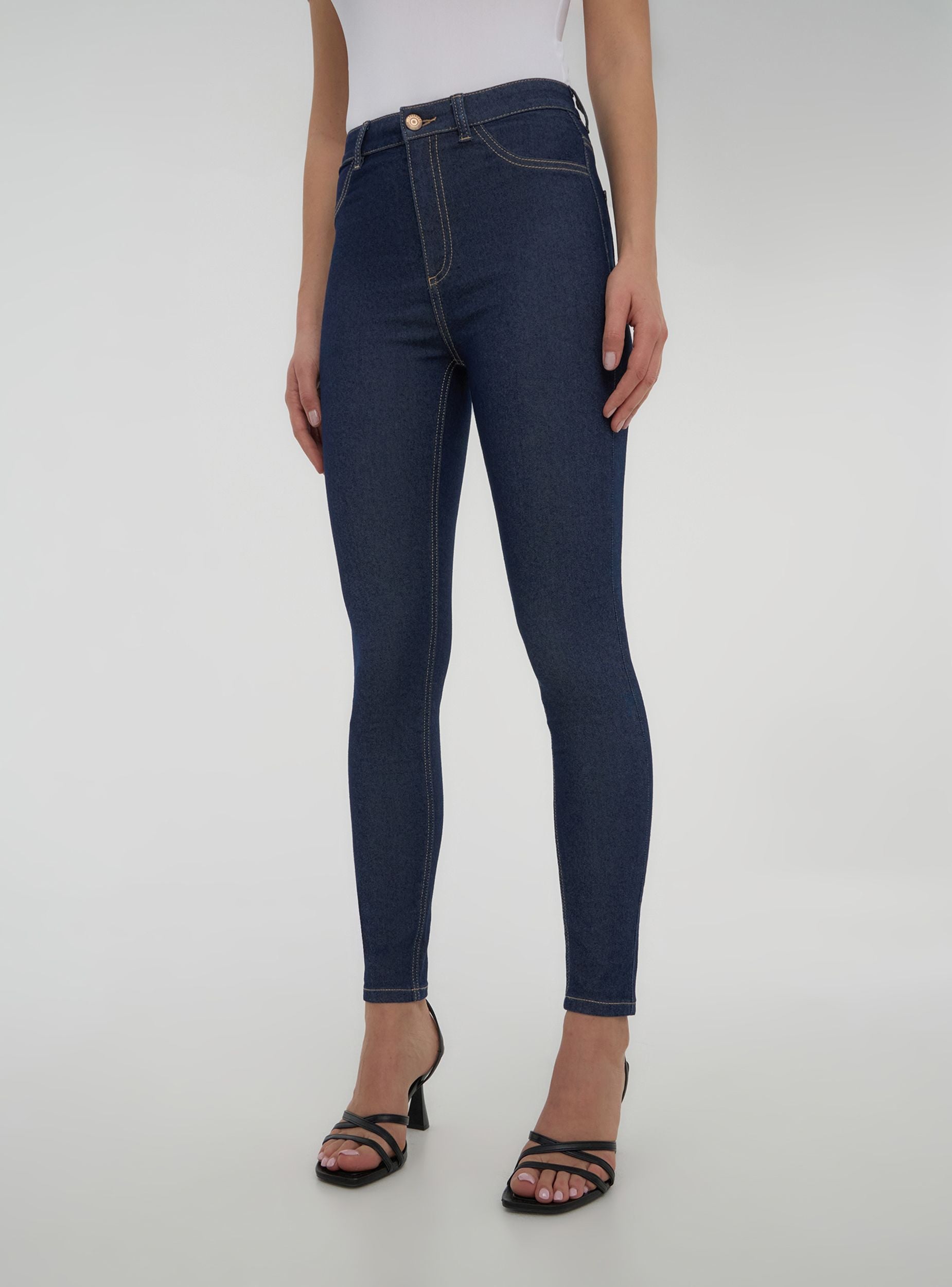 Jeggings da donna a vita alta, caratterizzati da una silhouette aderente che segue la linea della gamba. La chiusura frontale con zip e bottone garantisce una vestibilità sicura e confortevole, mentre la loro elasticità li rende ideali per un look casual ma curato. Perfetti per il quotidiano, questi jeggings possono essere abbinati a una t-shirt e sneakers per un look informale, oppure a una camicia morbida e stivaletti per un outfit più raffinato. Grazie alla loro versatilità, si adattano bene sia a contesti più rilassati che a occasioni dove è richiesta maggiore eleganza.Dettagli