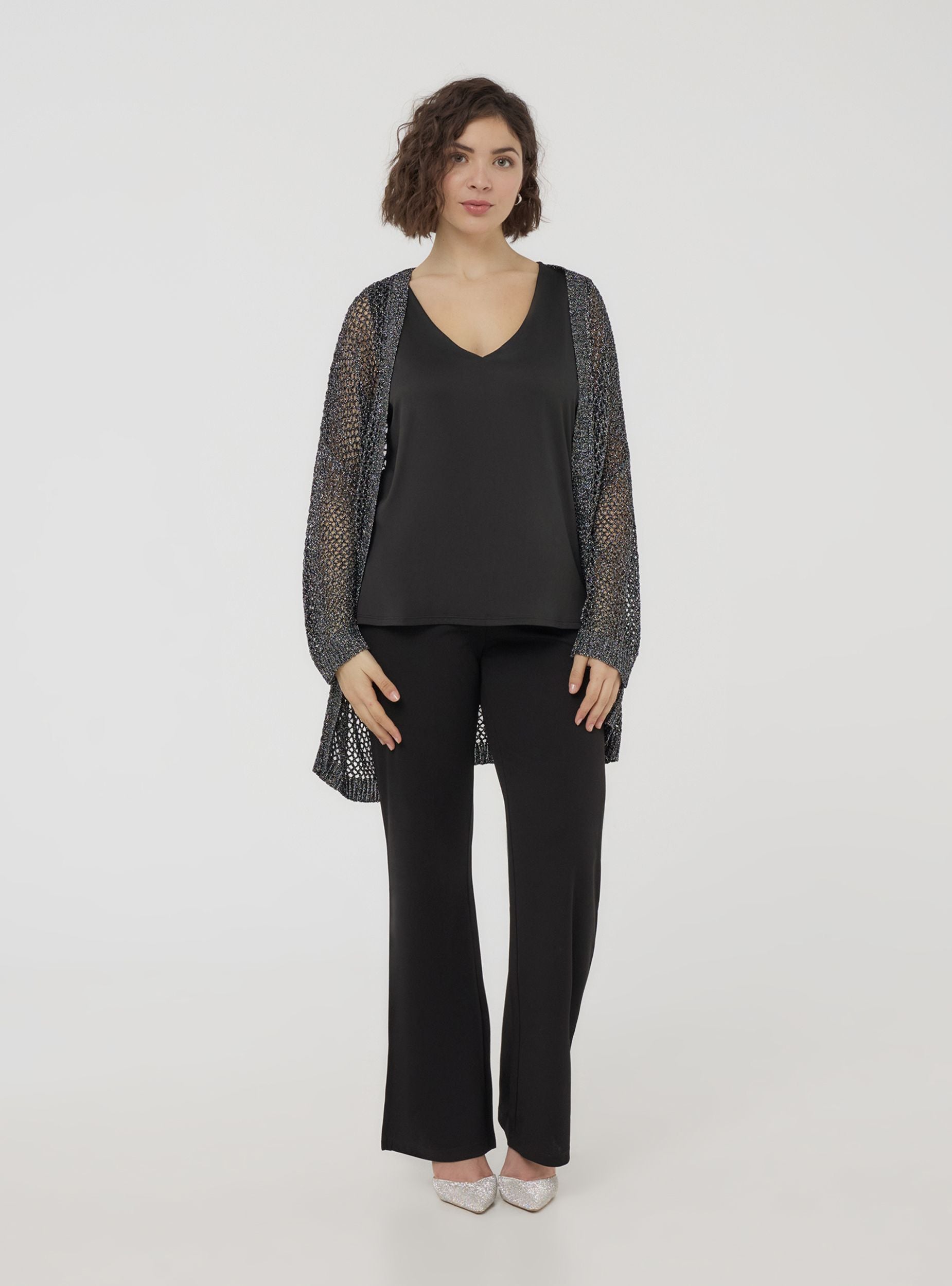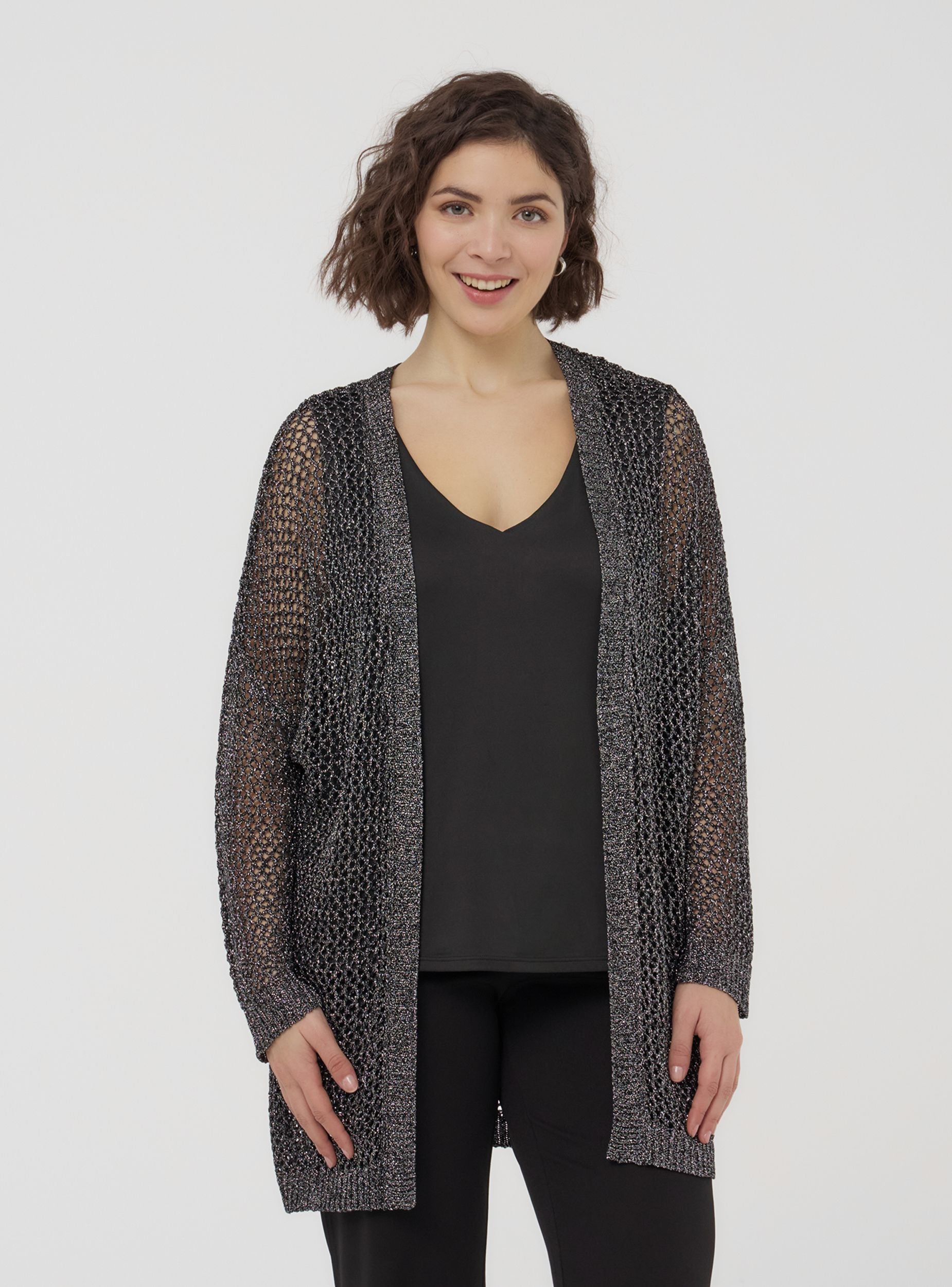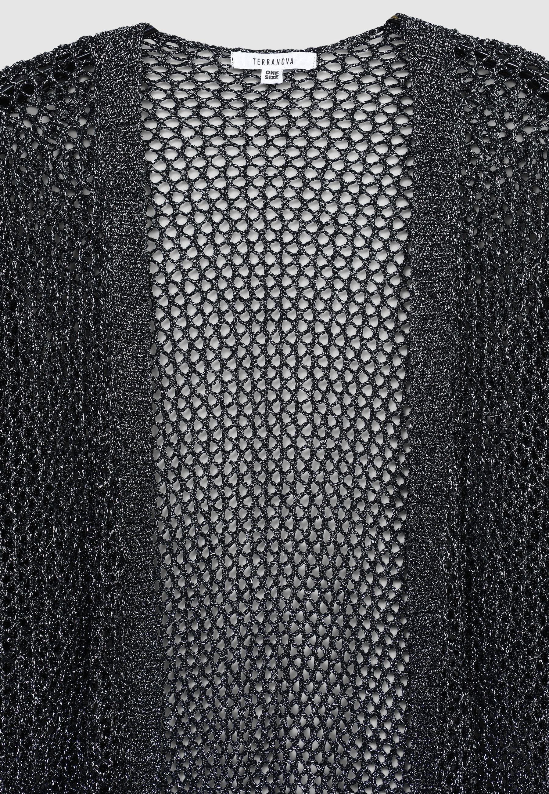 Maglia da donna in stile kimono, con maniche lunghe e lavorazione traforata che dona un tocco raffinato e arioso. La tinta unita la rende perfetta per abbinamenti versatili, ideale sopra top aderenti o abiti leggeri per un look sofisticato. Perfetta per le mezze stagioni, aggiunge eleganza a outfit casual e chic, ideale per serate estive o giornate rilassate in città.Dettagli