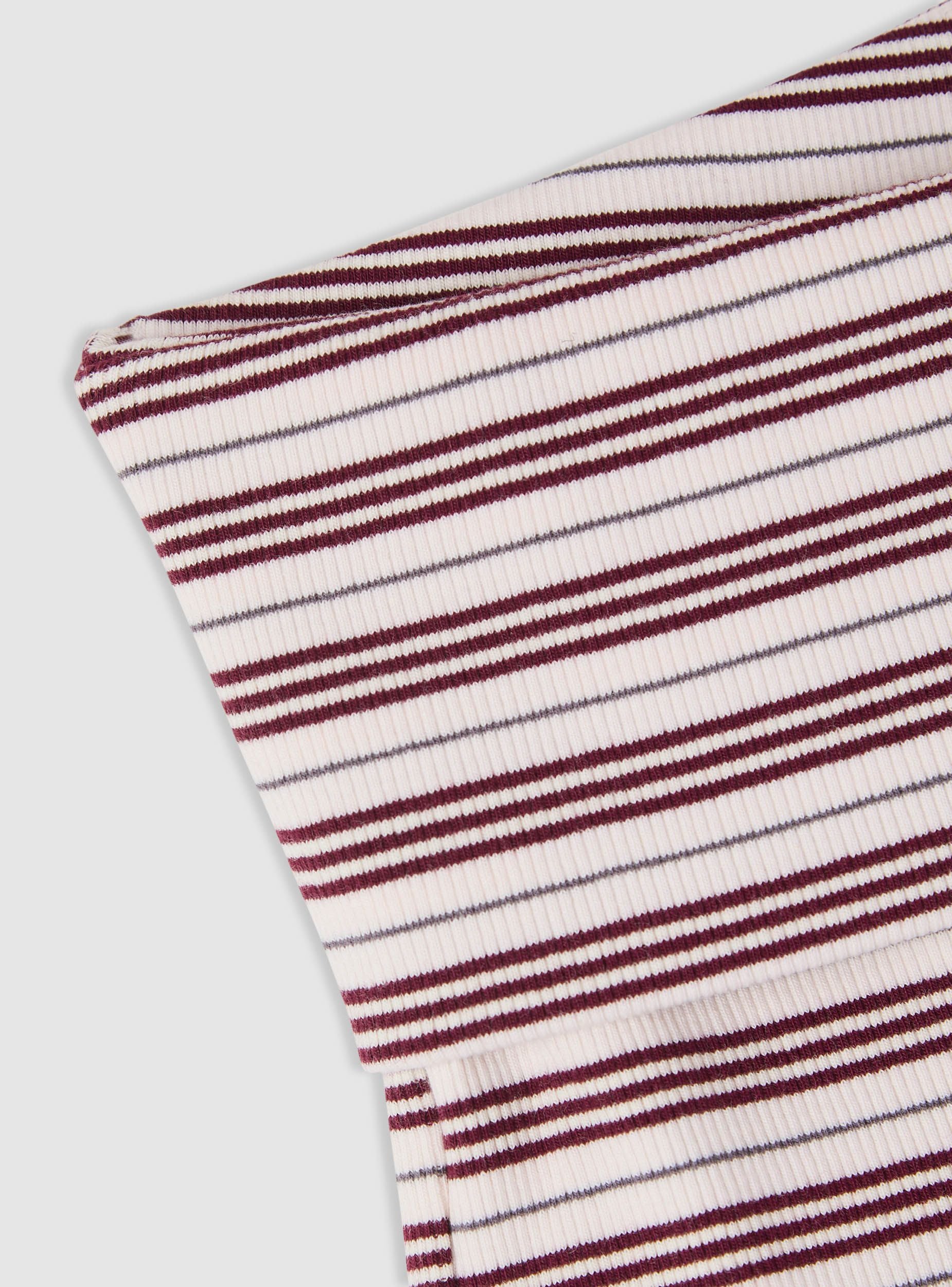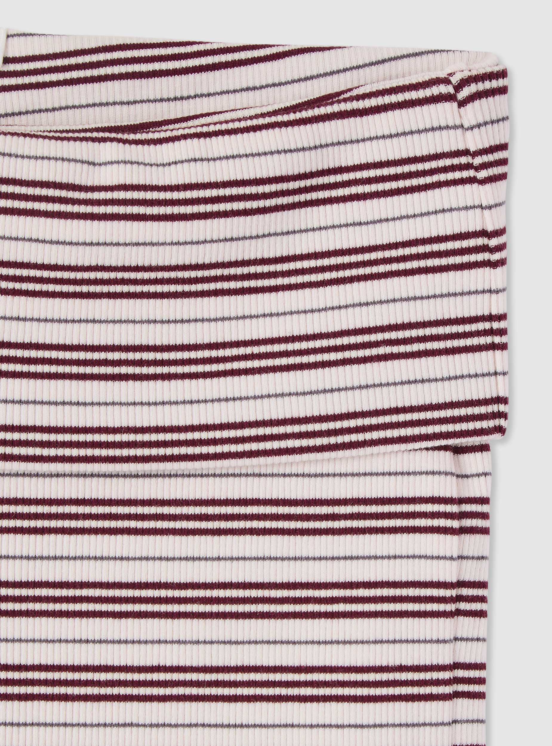 Leggings da donna corti a righe, perfetti per il tempo libero e l’allenamento leggero. Modello a vita elasticizzata senza chiusure, realizzato in tessuto morbido ed elasticizzato che segue i movimenti. La lunghezza mini valorizza la figura e si abbina facilmente a maglietta oversize o felpa con zip per un look casual. Struttura a costine che dona texture e comfort in ogni occasione.Dettagli