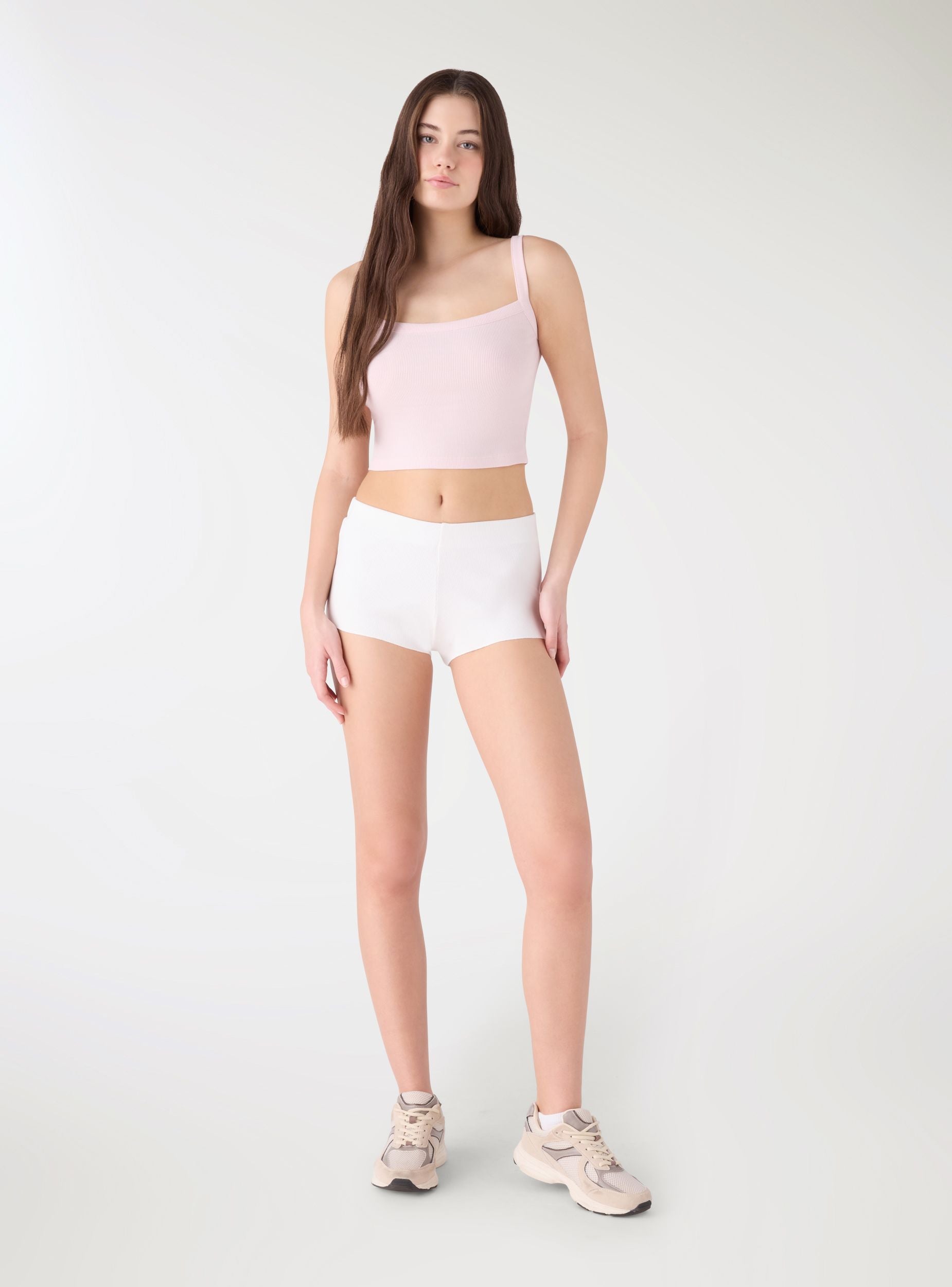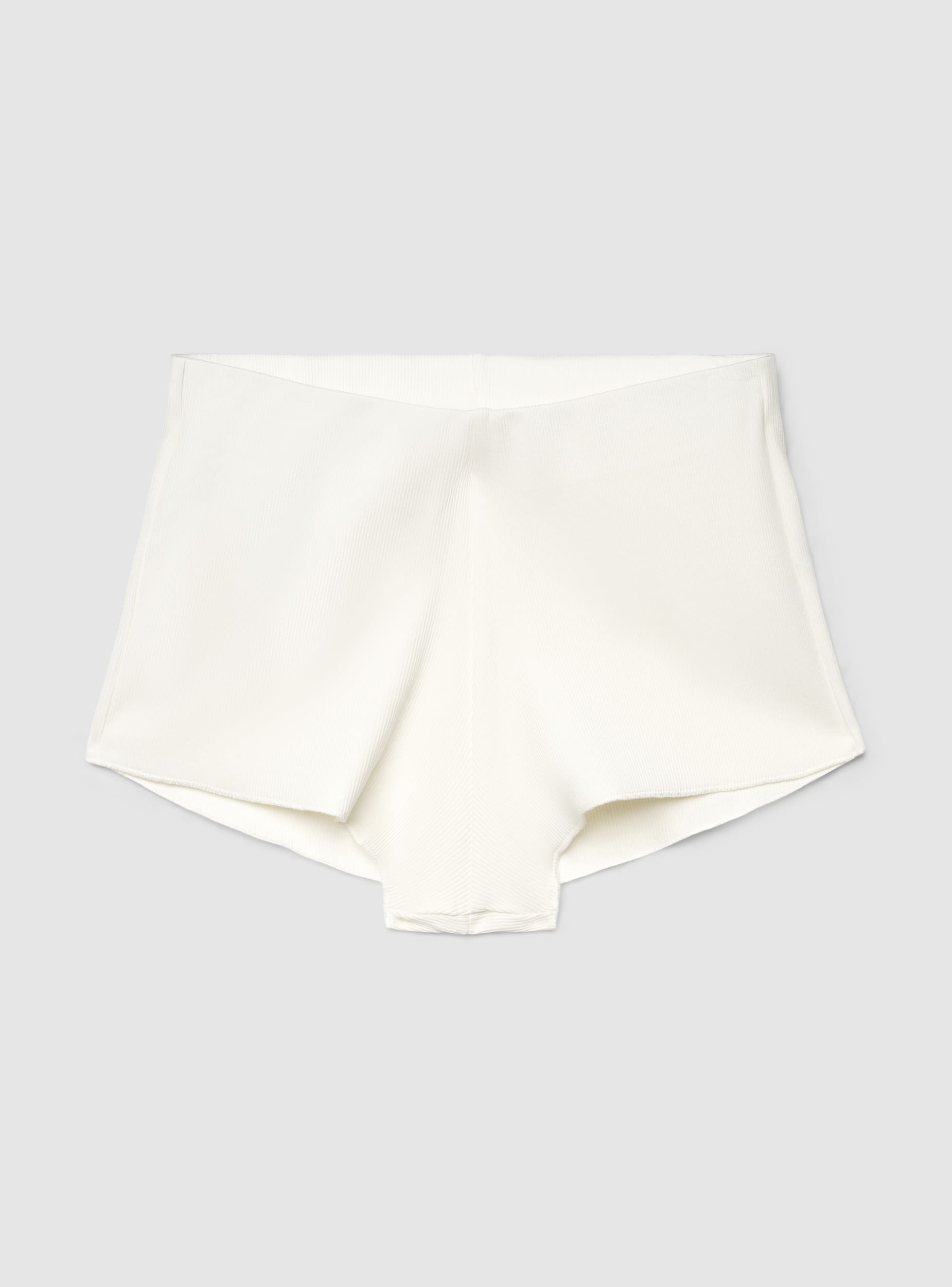 Culotte da donna a tinta unita con vita elasticizzata. Il design minimal e il taglio aderente valorizzano la figura, perfetti da indossare sotto vestiti o gonne, per la palestra o il relax a casa. La lavorazione a costine aggiunge texture discreta e comfort. Facili da abbinare con felpe oversize, top sportivi o camicie lunghe per look versatili in ogni stagione.Dettagli