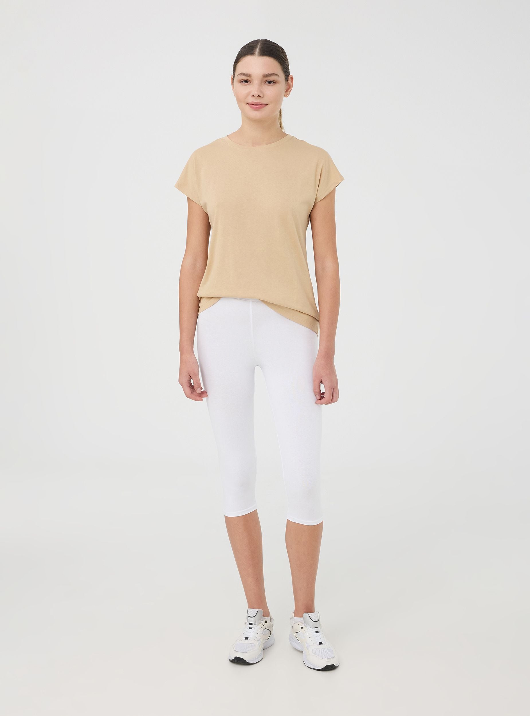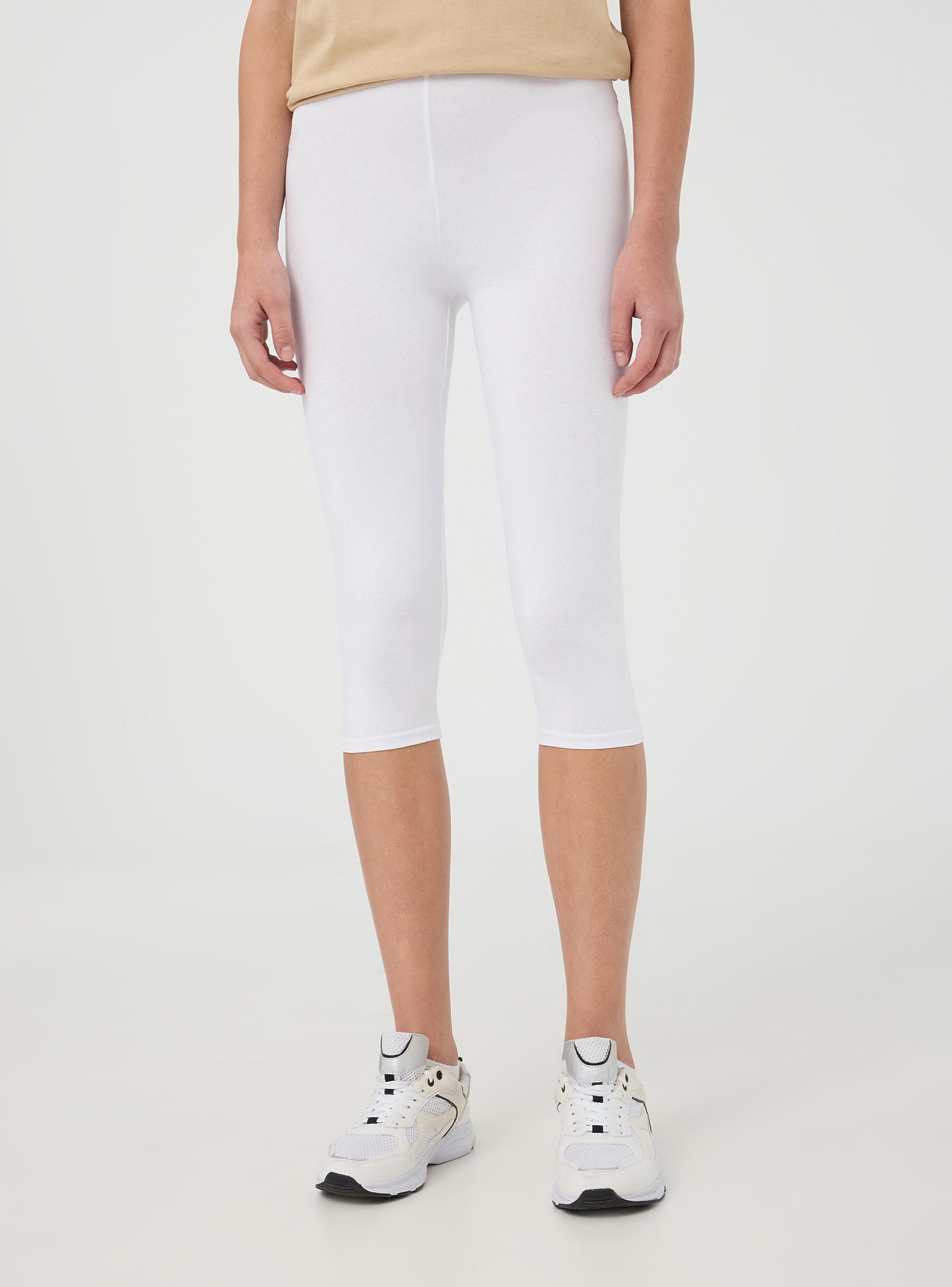 Leggings da donna elasticizzati a tinta unita con lunghezza tre quarti. Il design aderente valorizza la figura, offrendo comfort e libertà di movimento grazie alla struttura elasticizzata. Ideali per essere indossati in situazioni casual o sportive, garantiscono praticità e versatilità. Il taglio tre quarti li rende perfetti per le giornate più calde, mantenendo comunque uno stile essenziale e minimalista.Dettagli