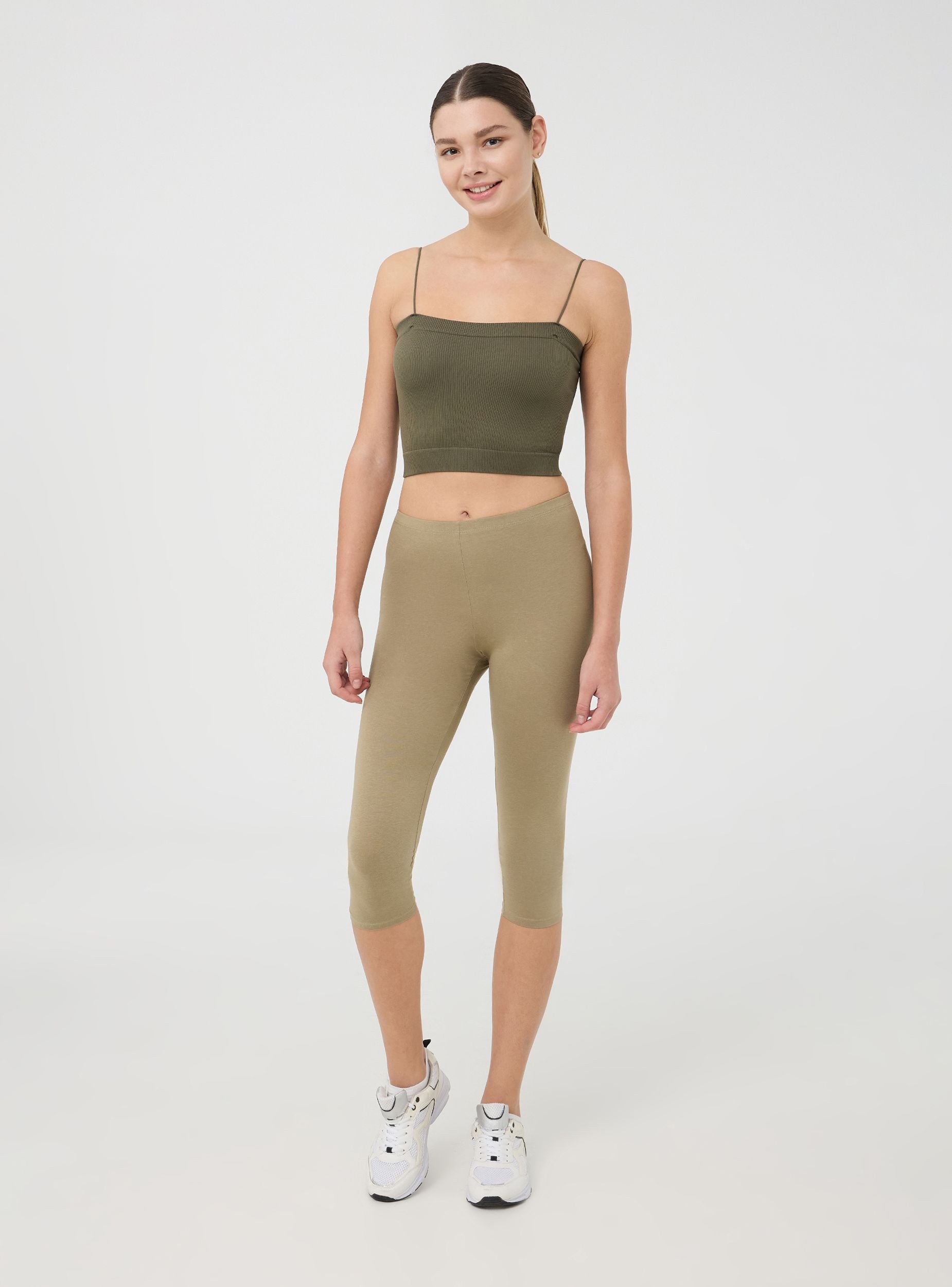 Leggings da donna elasticizzati a tinta unita con lunghezza tre quarti. Il design aderente valorizza la figura, offrendo comfort e libertà di movimento grazie alla struttura elasticizzata. Ideali per essere indossati in situazioni casual o sportive, garantiscono praticità e versatilità. Il taglio tre quarti li rende perfetti per le giornate più calde, mantenendo comunque uno stile essenziale e minimalista.Dettagli