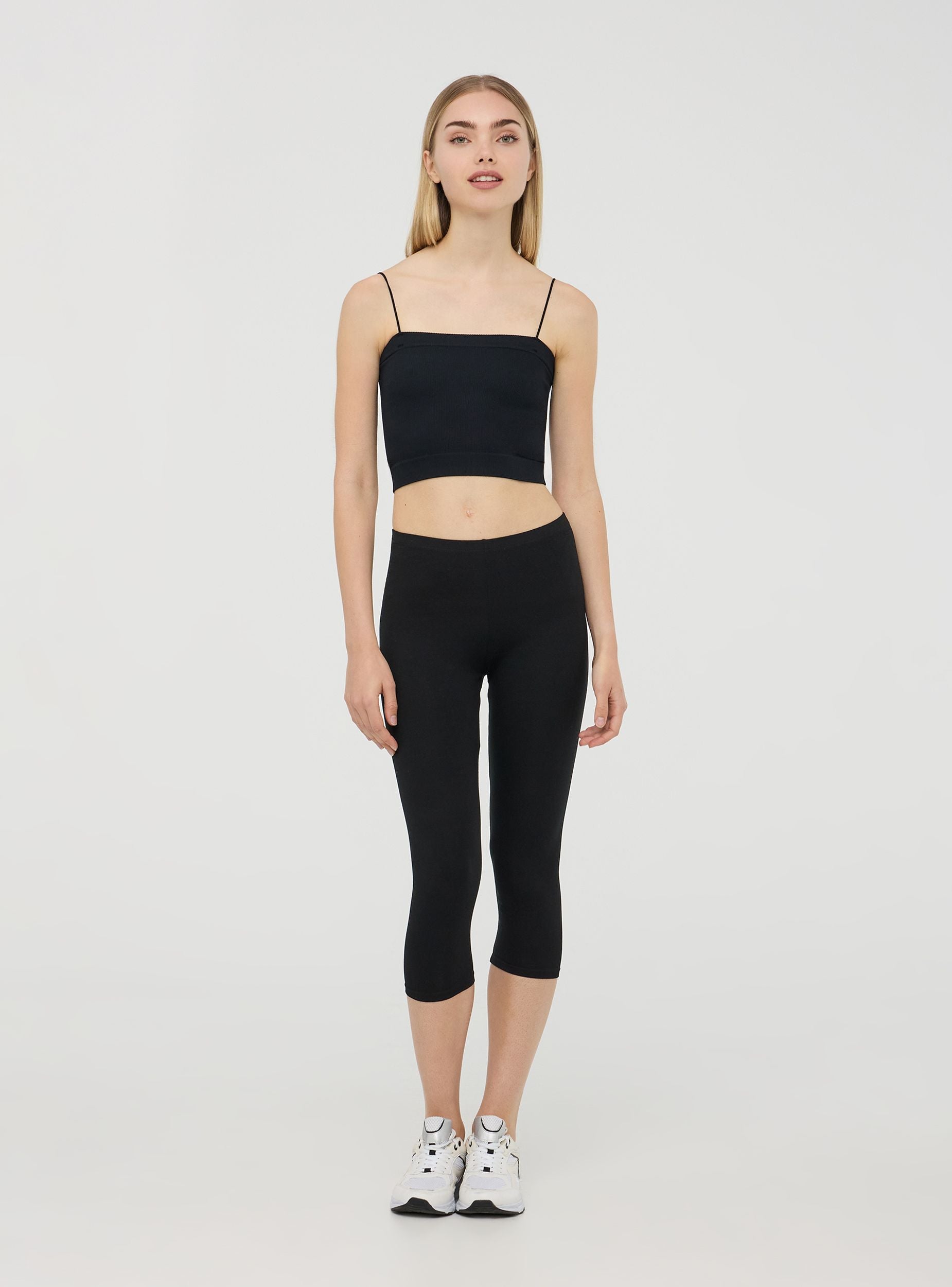 Leggings da donna elasticizzati a tinta unita con lunghezza tre quarti. Il design aderente valorizza la figura, offrendo comfort e libertà di movimento grazie alla struttura elasticizzata. Ideali per essere indossati in situazioni casual o sportive, garantiscono praticità e versatilità. Il taglio tre quarti li rende perfetti per le giornate più calde, mantenendo comunque uno stile essenziale e minimalista.Dettagli