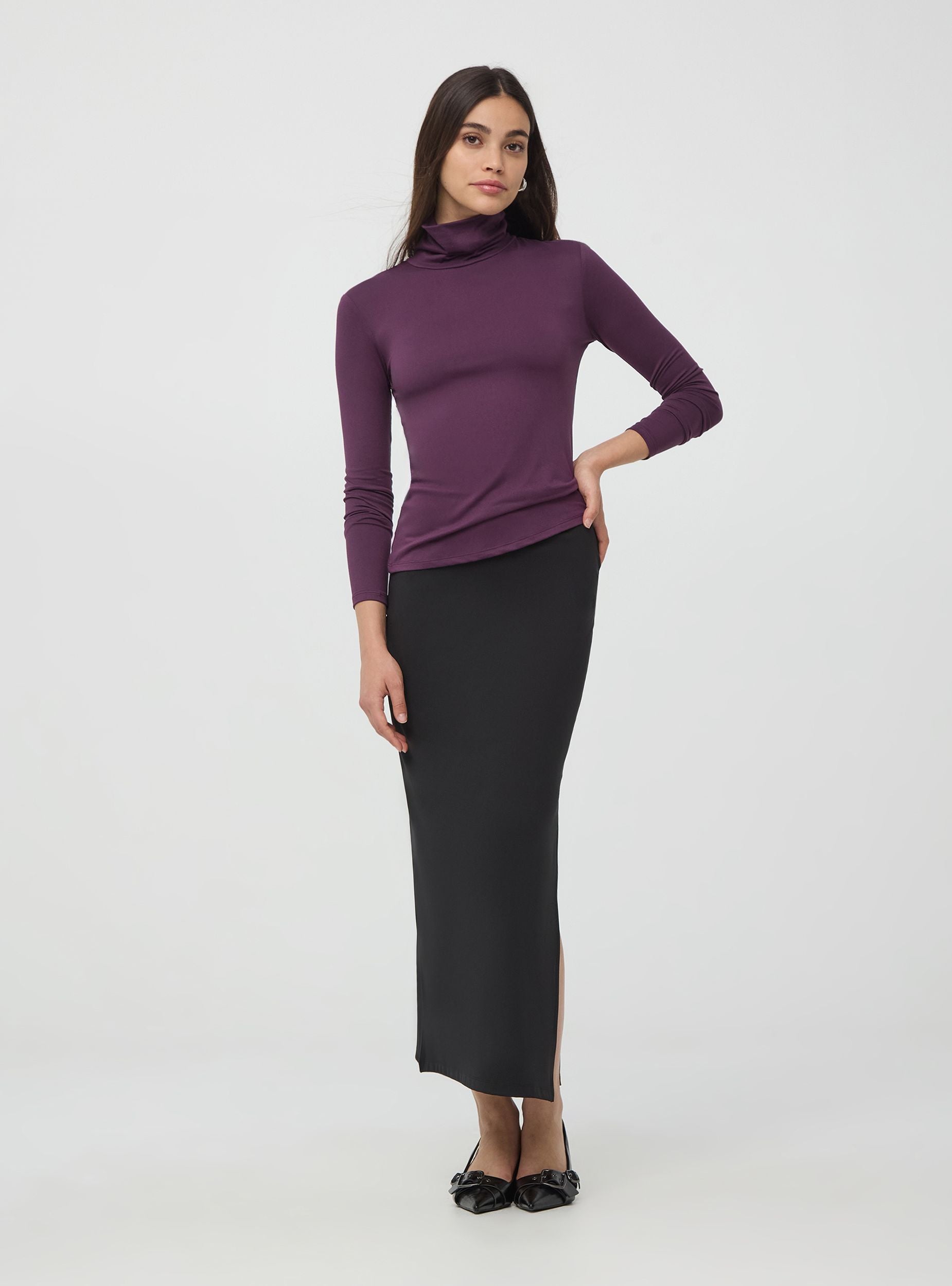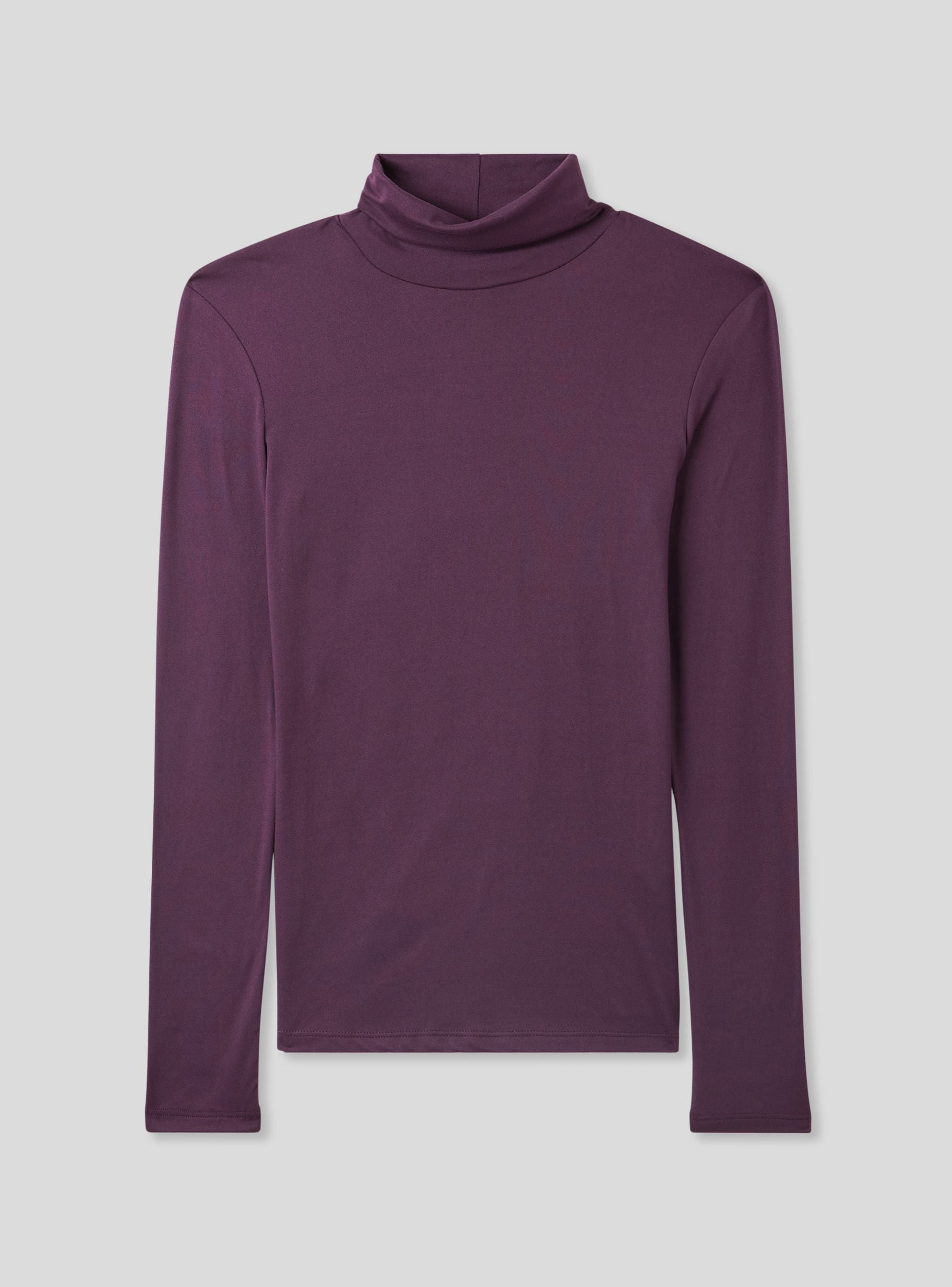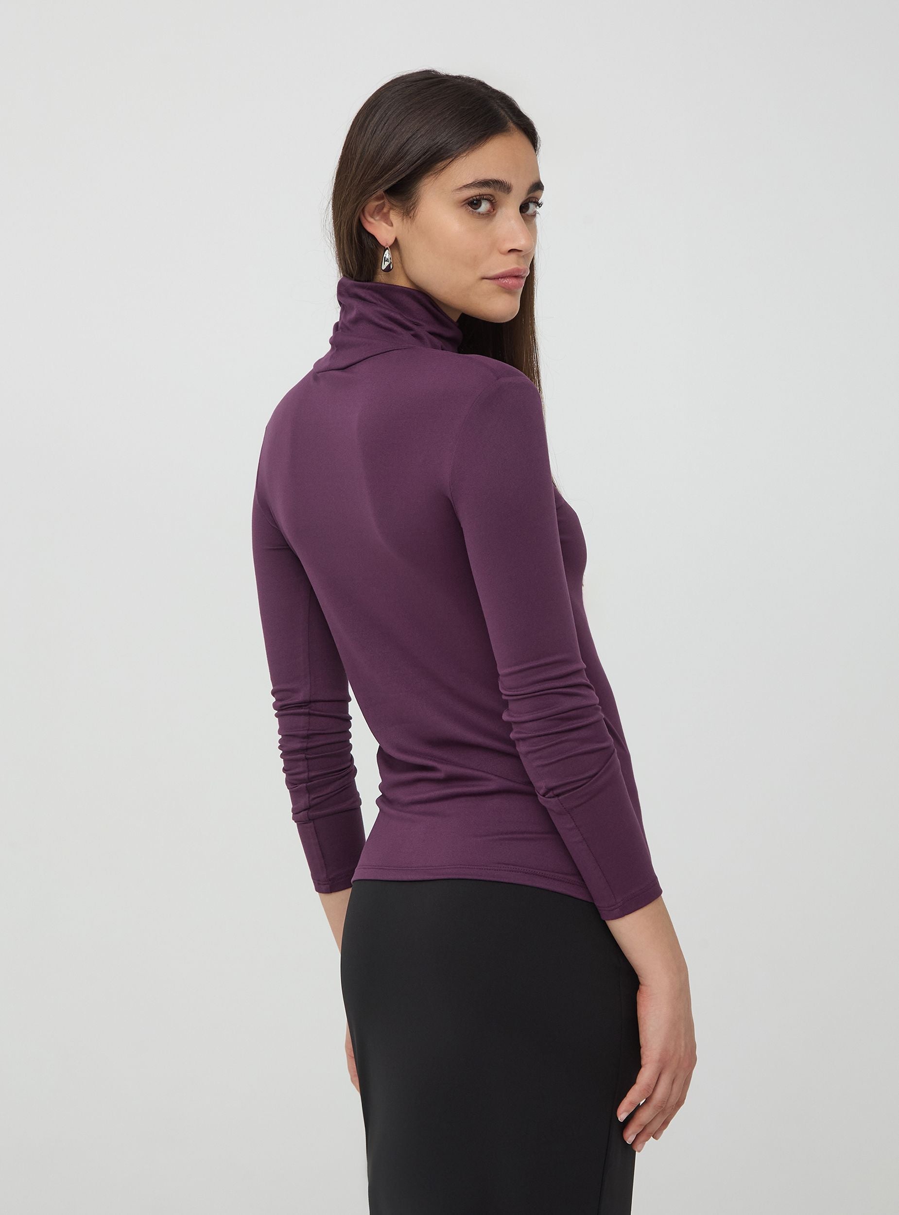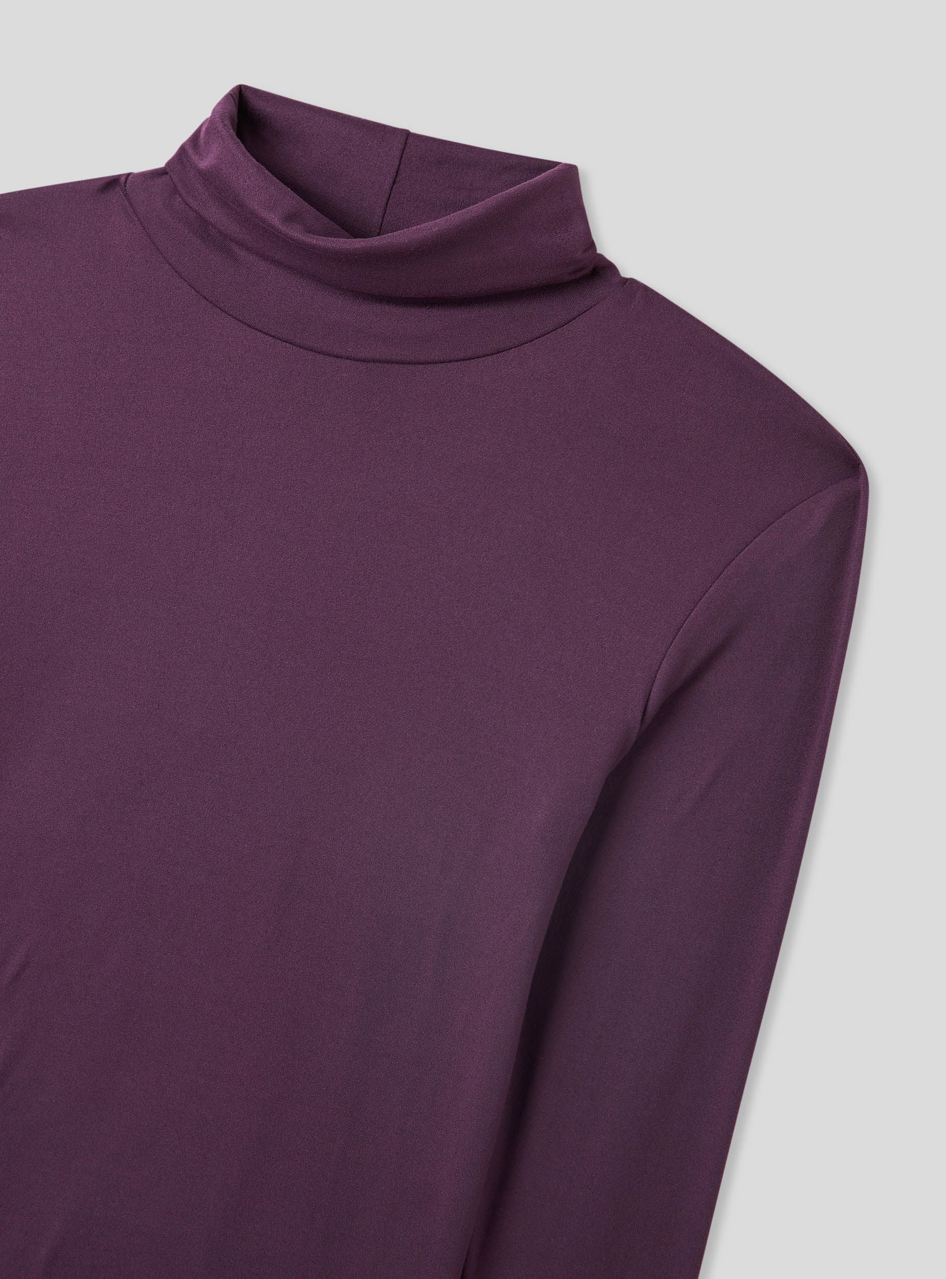 Maglia da donna a tinta unita, aderente a collo alto. Realizzata in tessuto jersey elasticizzato, offre comfort e libertà di movimento. Ideale per le giornate invernali, può essere indossata da sola o come strato aggiuntivo sotto giacche e cappotti, adatta per un look casual o per un outfit più formale. Perfetta per un uso quotidiano o per un’occasione speciale. Capo basic indispensabile nell'armadio.