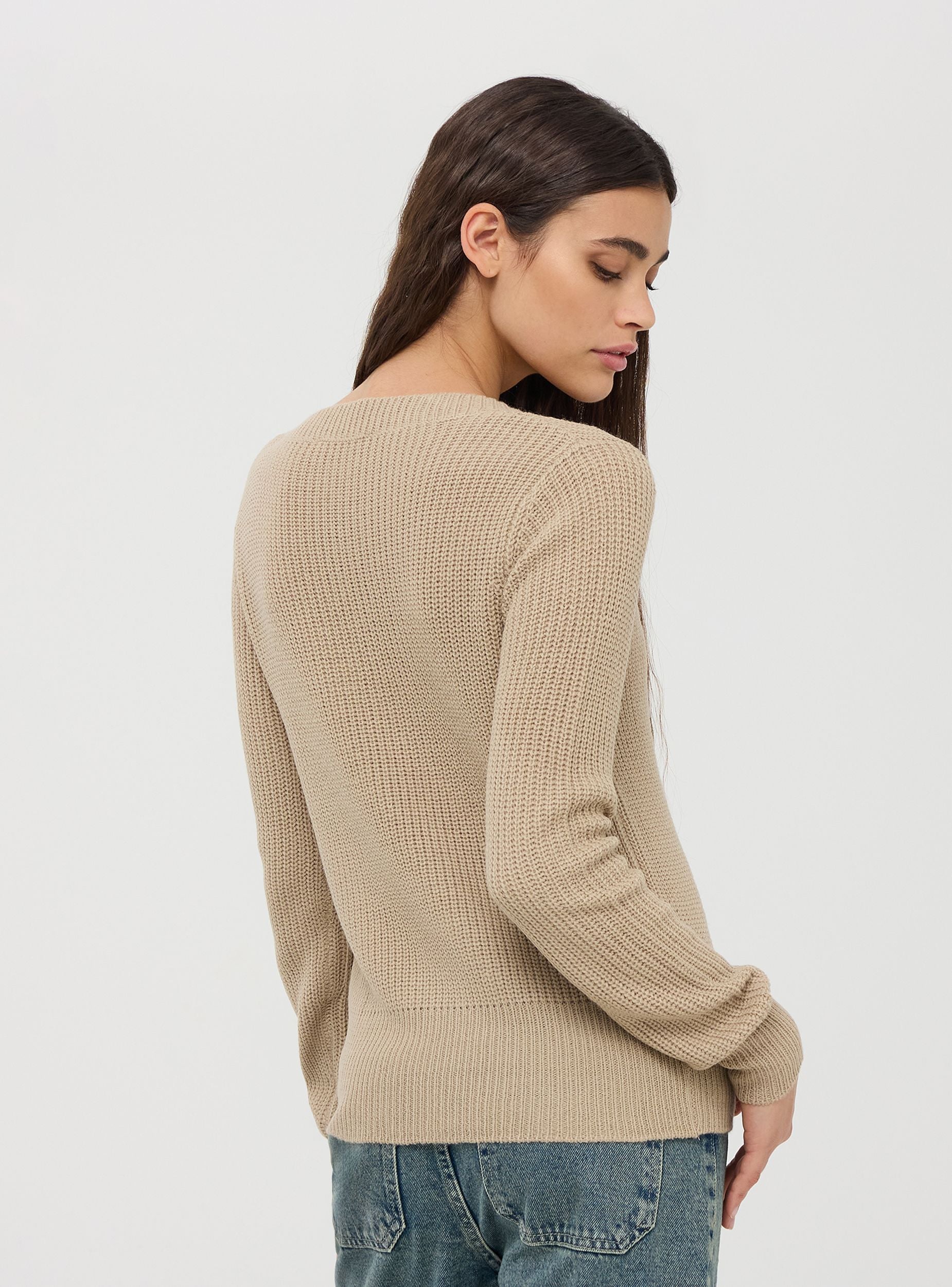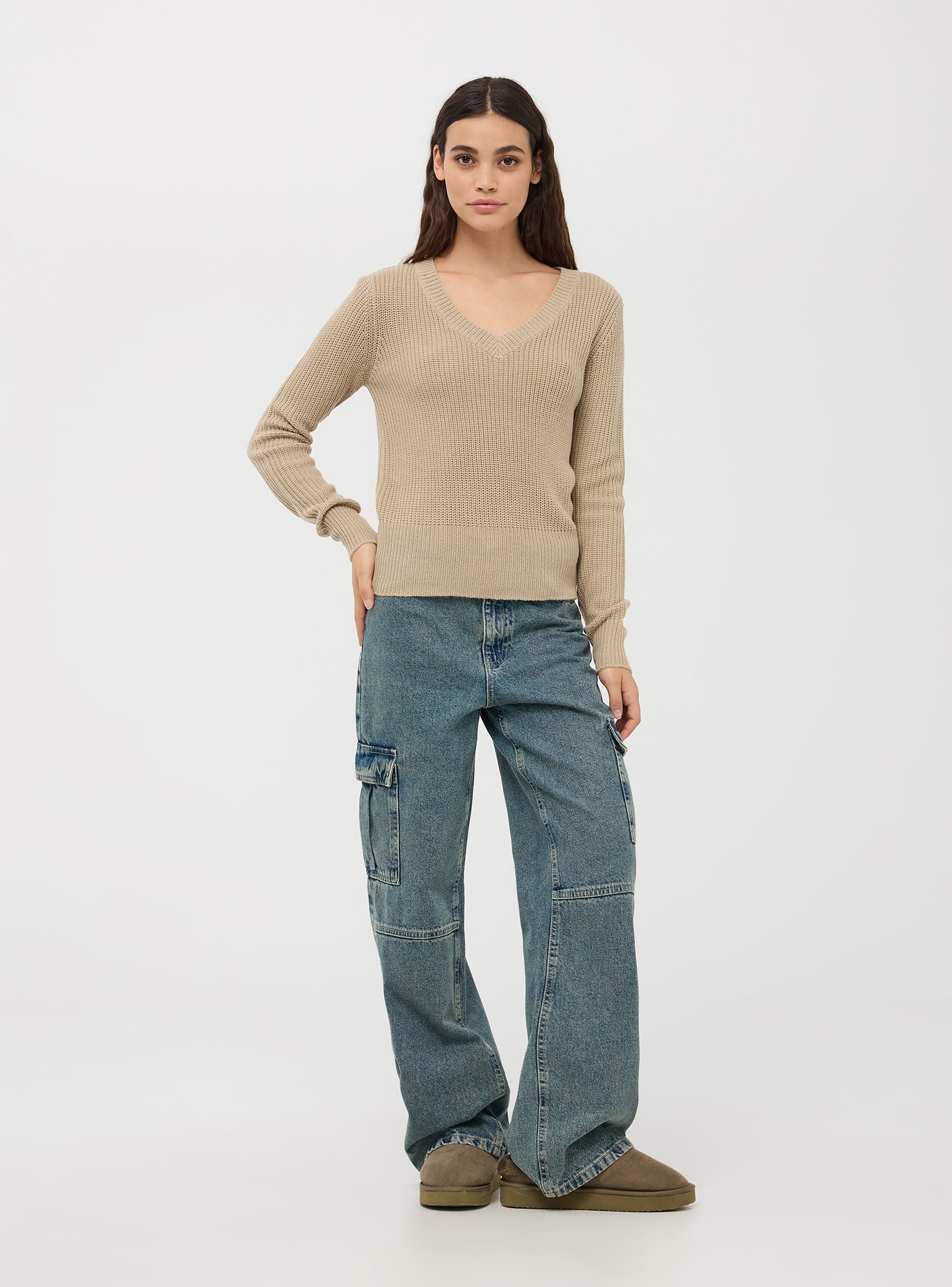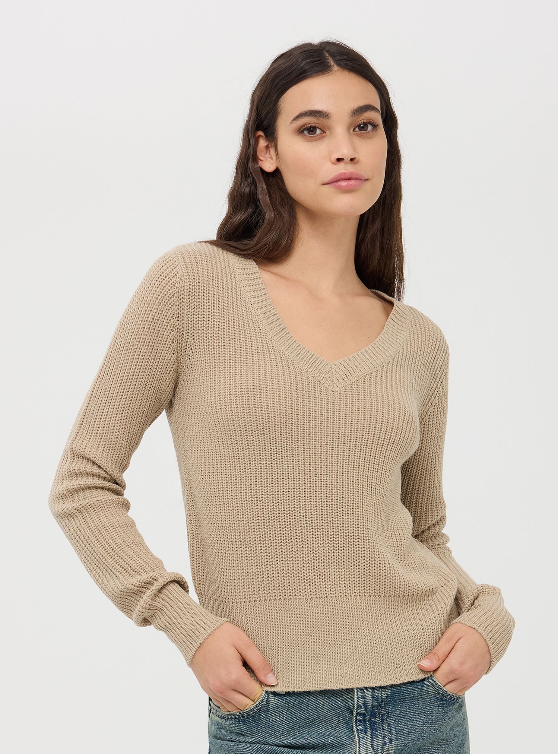 Maglia da donna a maniche lunghe in tessuto tinta unita a coste inglese, realizzata in morbido e caldo materiale perfetto per l'inverno. Il design presenta uno scollo a V che aggiunge un tocco di femminilità e stile. Vestibilità regular e confortevole, garantisce calore e comfort durante le giornate fredde. Perfetta per le occasioni casual o per un look da ufficio rilassato, questa maglia può essere abbinata a jeans, pantaloni eleganti o gonne. Indossala con una camicia sotto per un outfit più formale, oppure da sola per un look più semplice e quotidiano.Dettagli