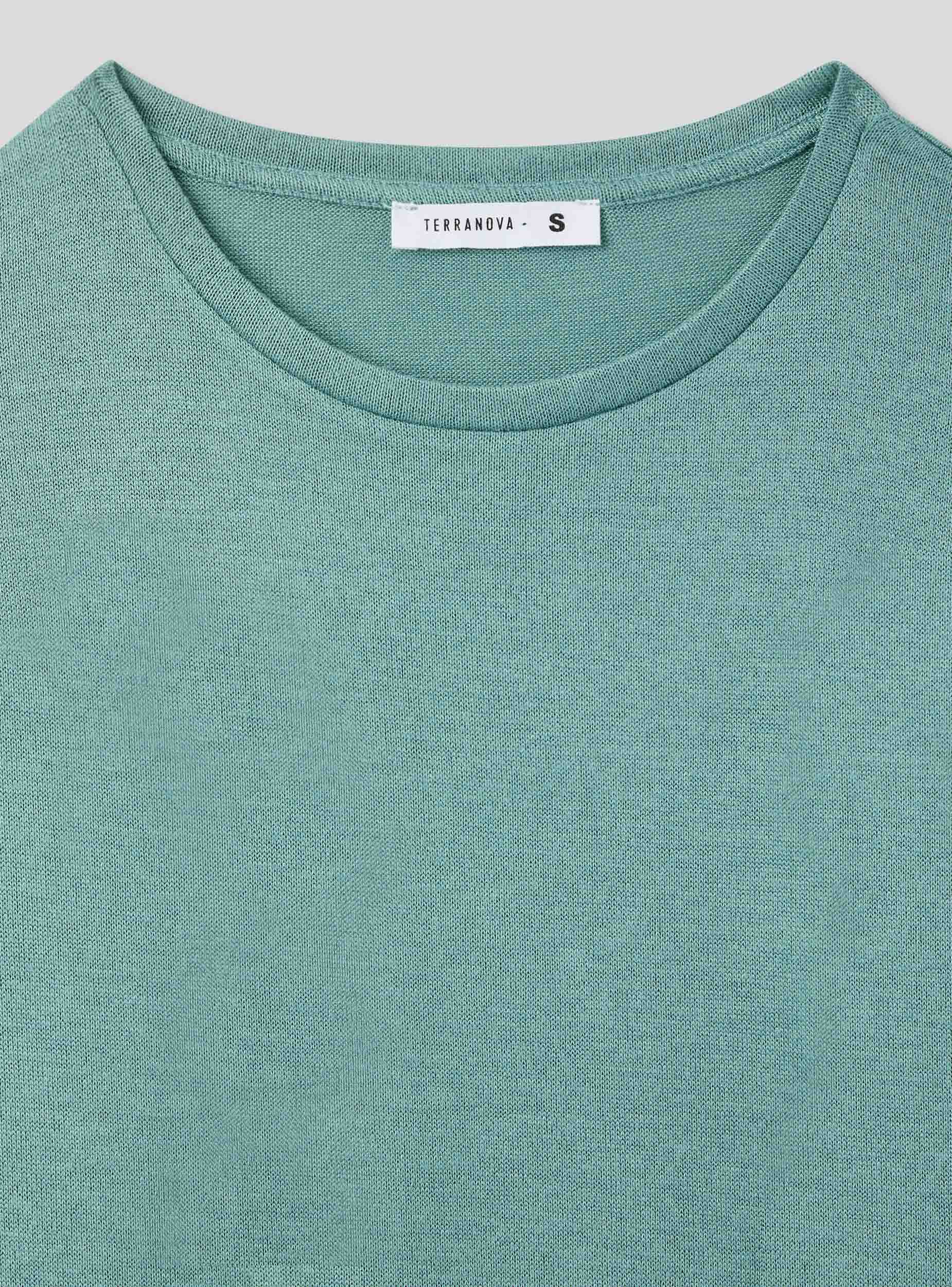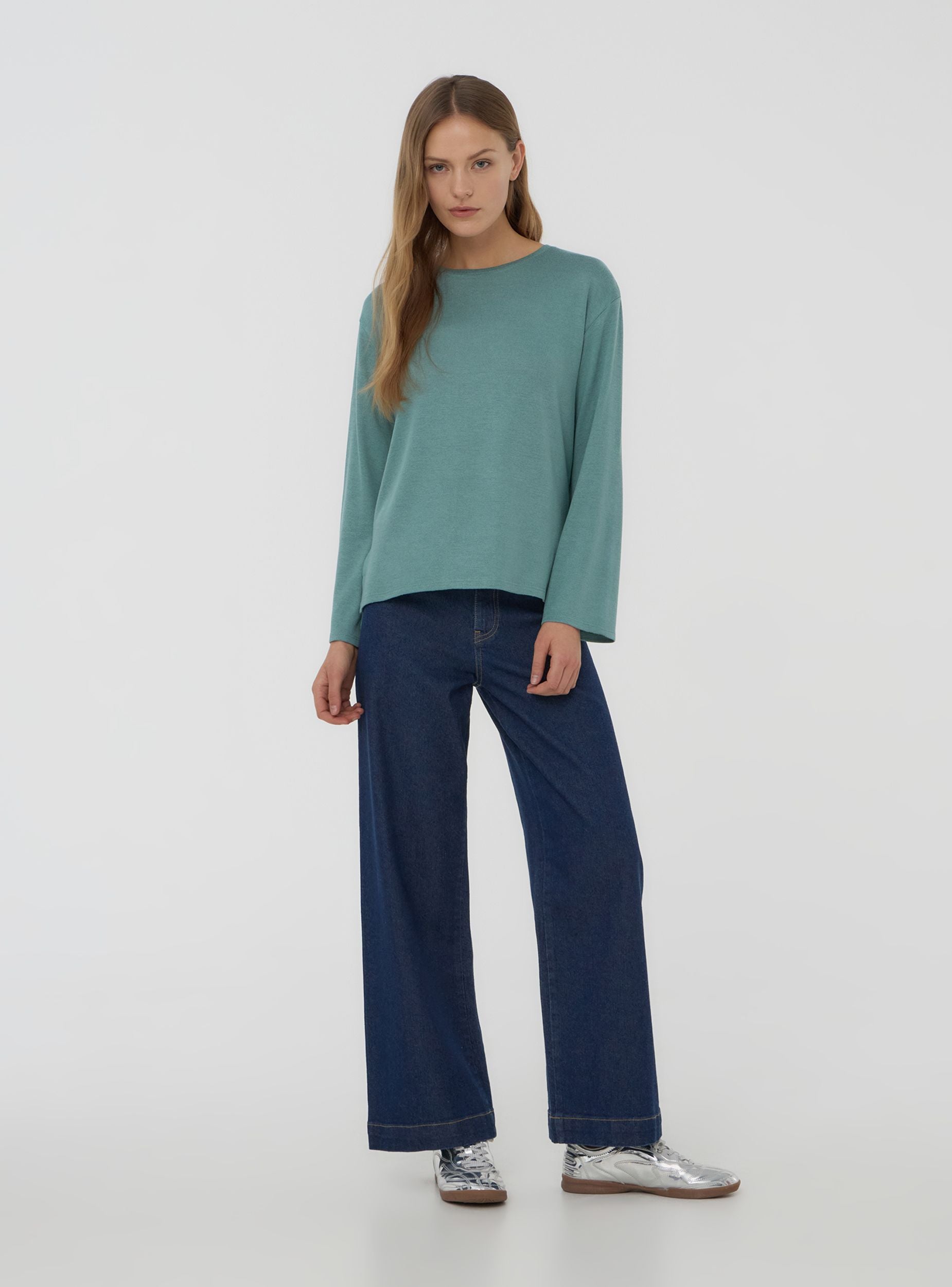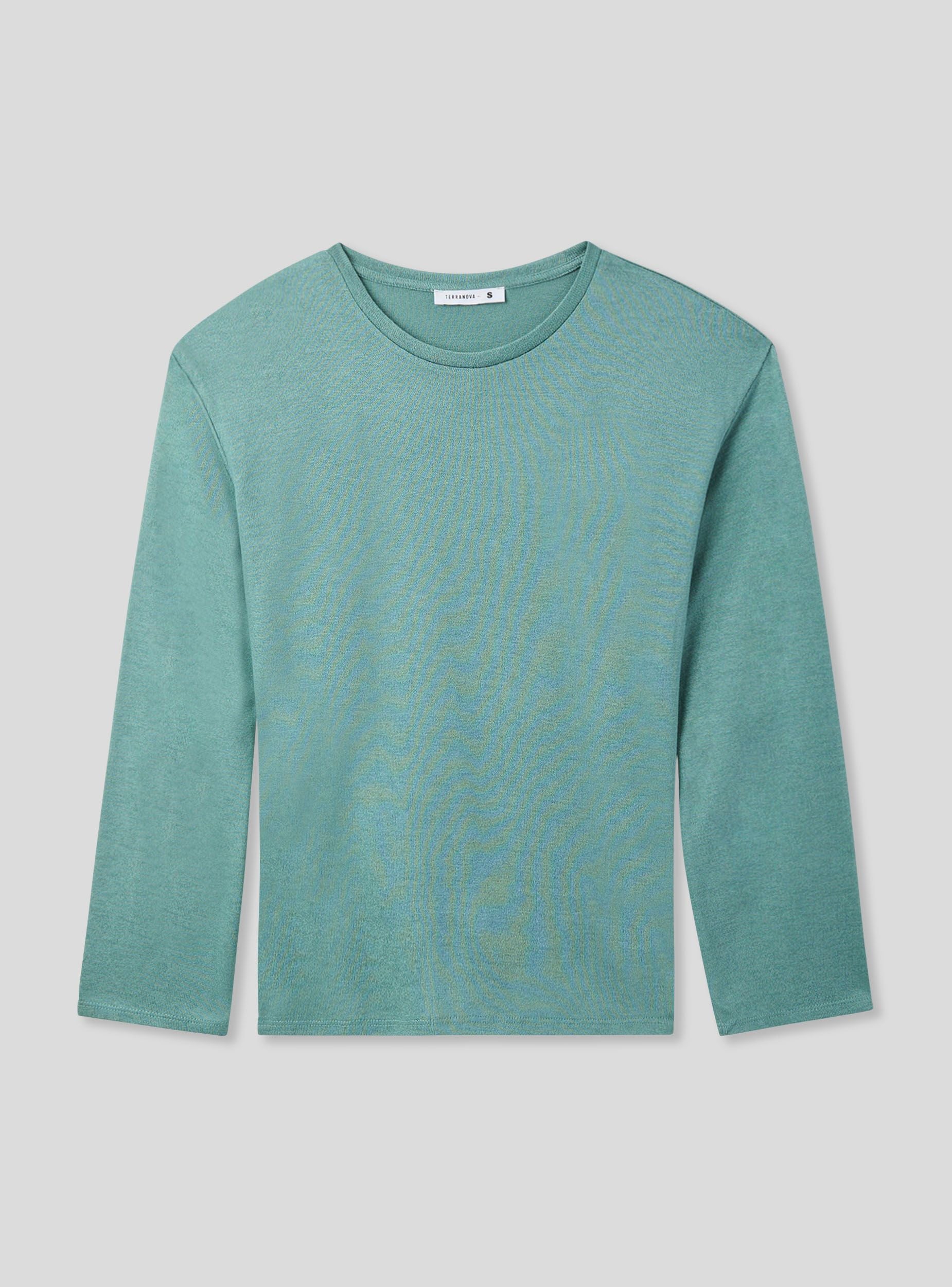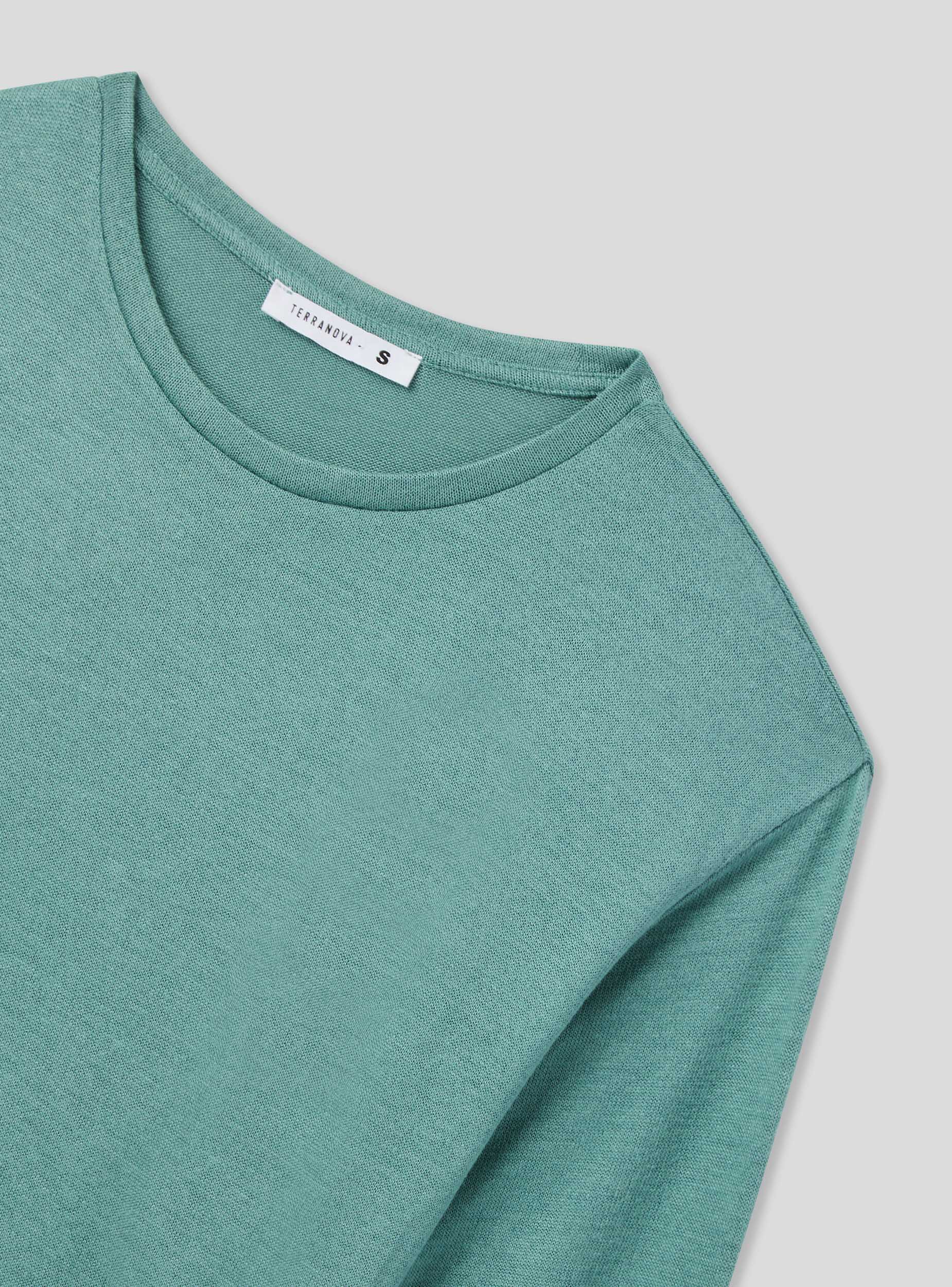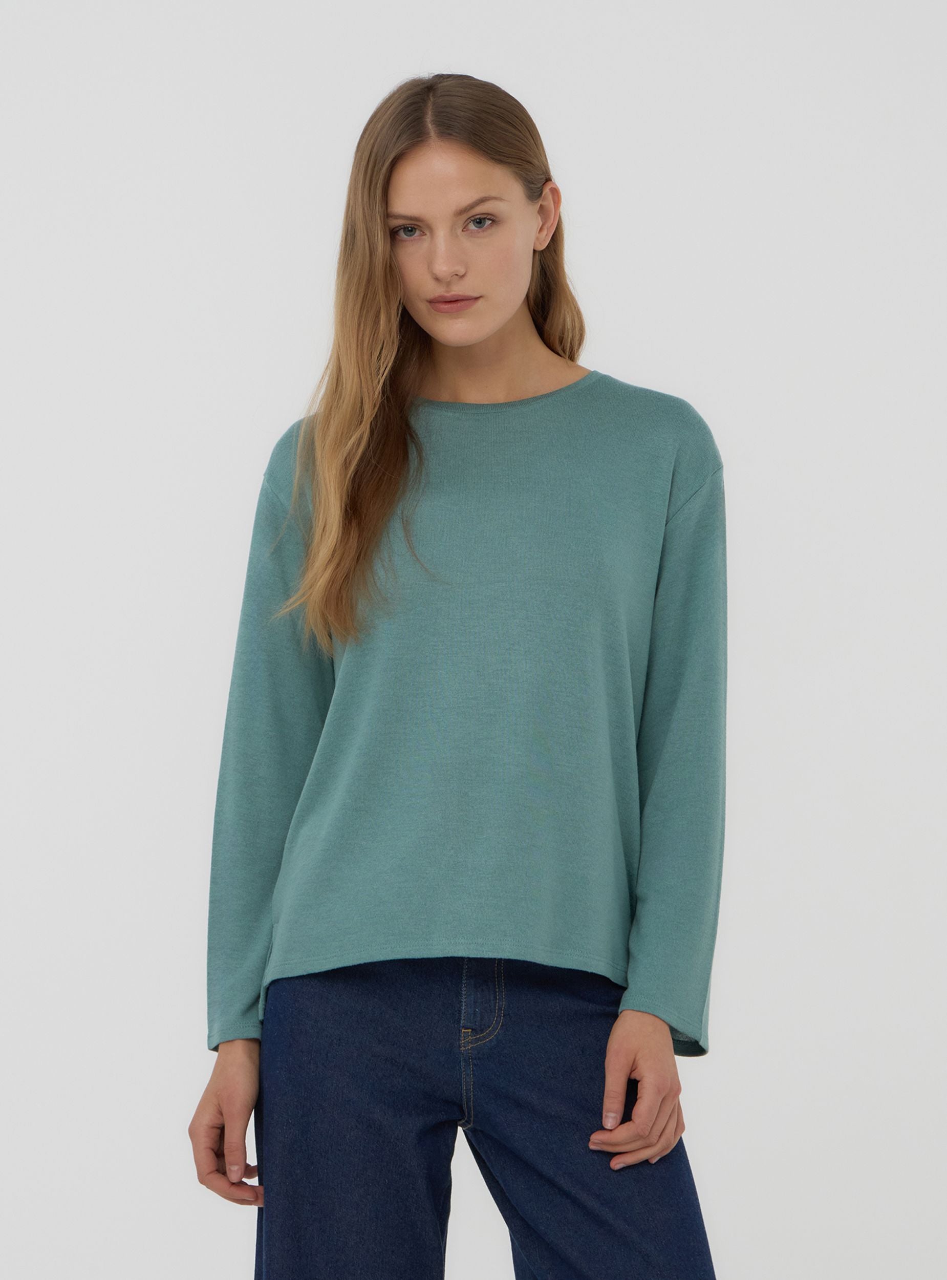 Maglia da donna a tinta unita, caratterizzata da maniche lunghe e un comodo girocollo, perfetta per un look semplice e versatile. Il design essenziale e la vestibilità confortevole la rendono ideale per essere indossata in ogni occasione, garantendo uno stile casual e ricercato.Dettagli