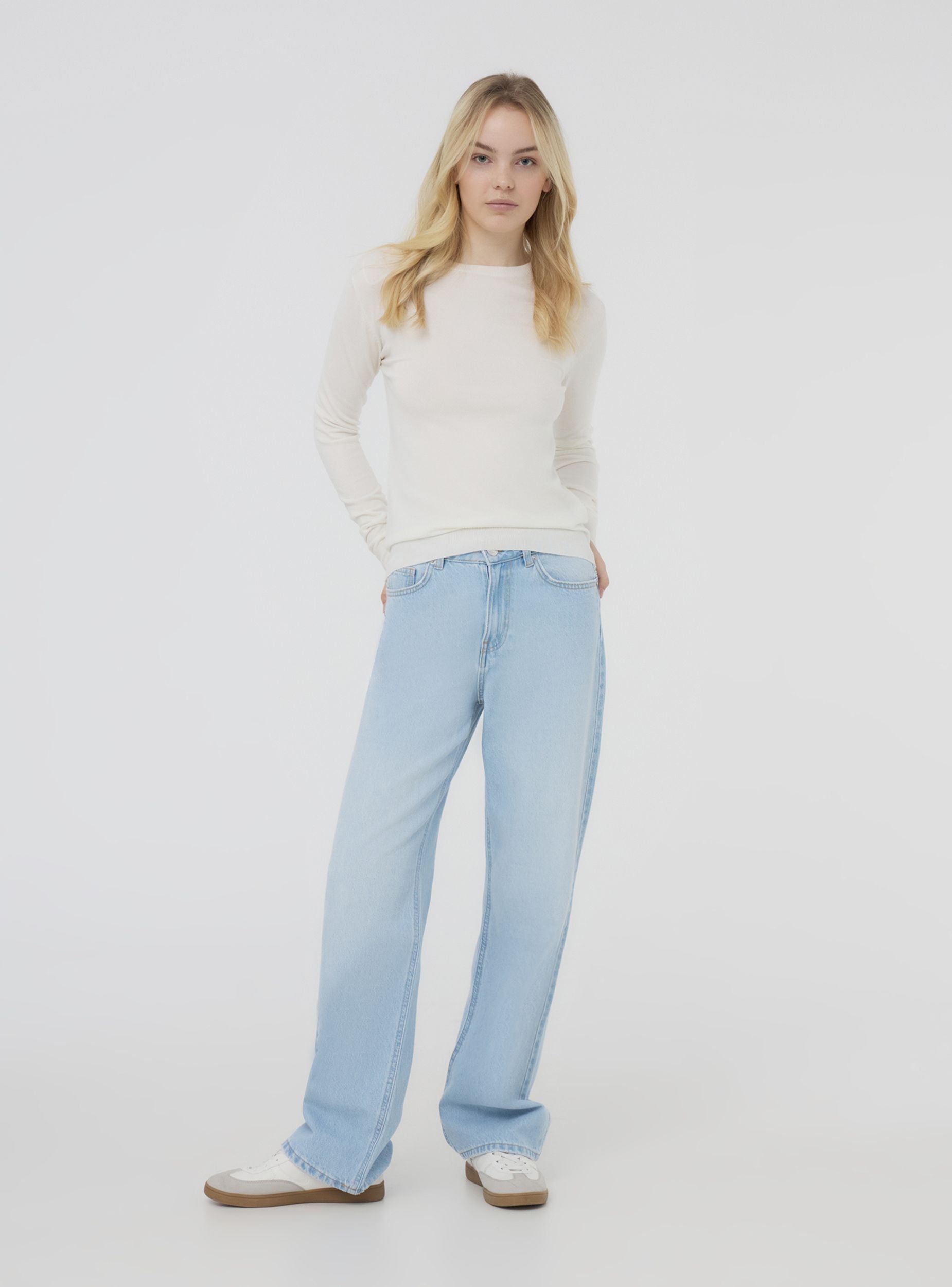 Maglia da donna ideale per un look quotidiano versatile e confortevole. Il design a tinta unita, con girocollo e maniche lunghe, la rende perfetta per ogni occasione, dal tempo libero alle giornate in ufficio. Il taglio basico assicura una vestibilità comoda e adatta a qualsiasi stile, da abbinare facilmente con jeans, leggings o gonne per un outfit pratico e alla moda.Dettagli