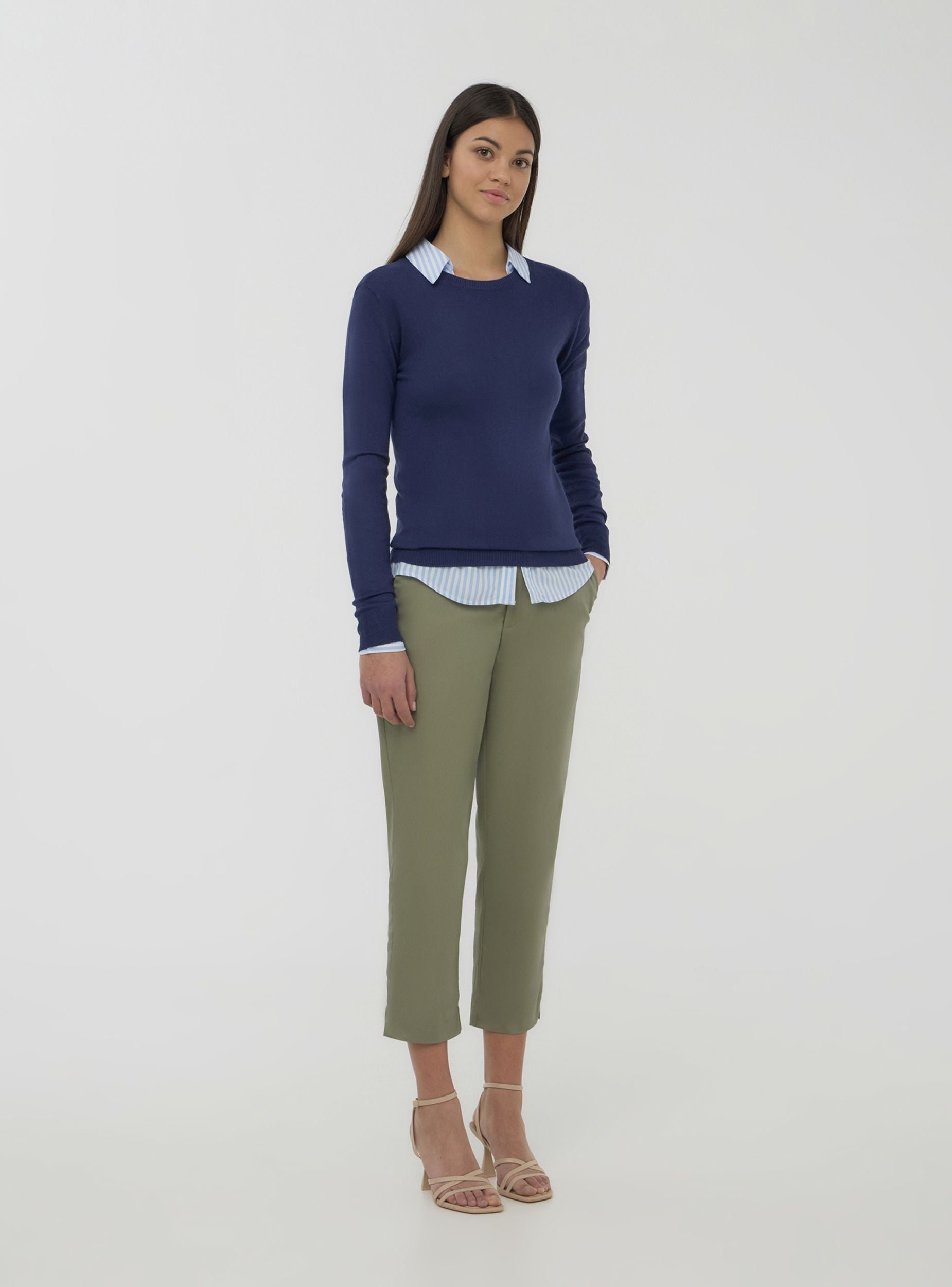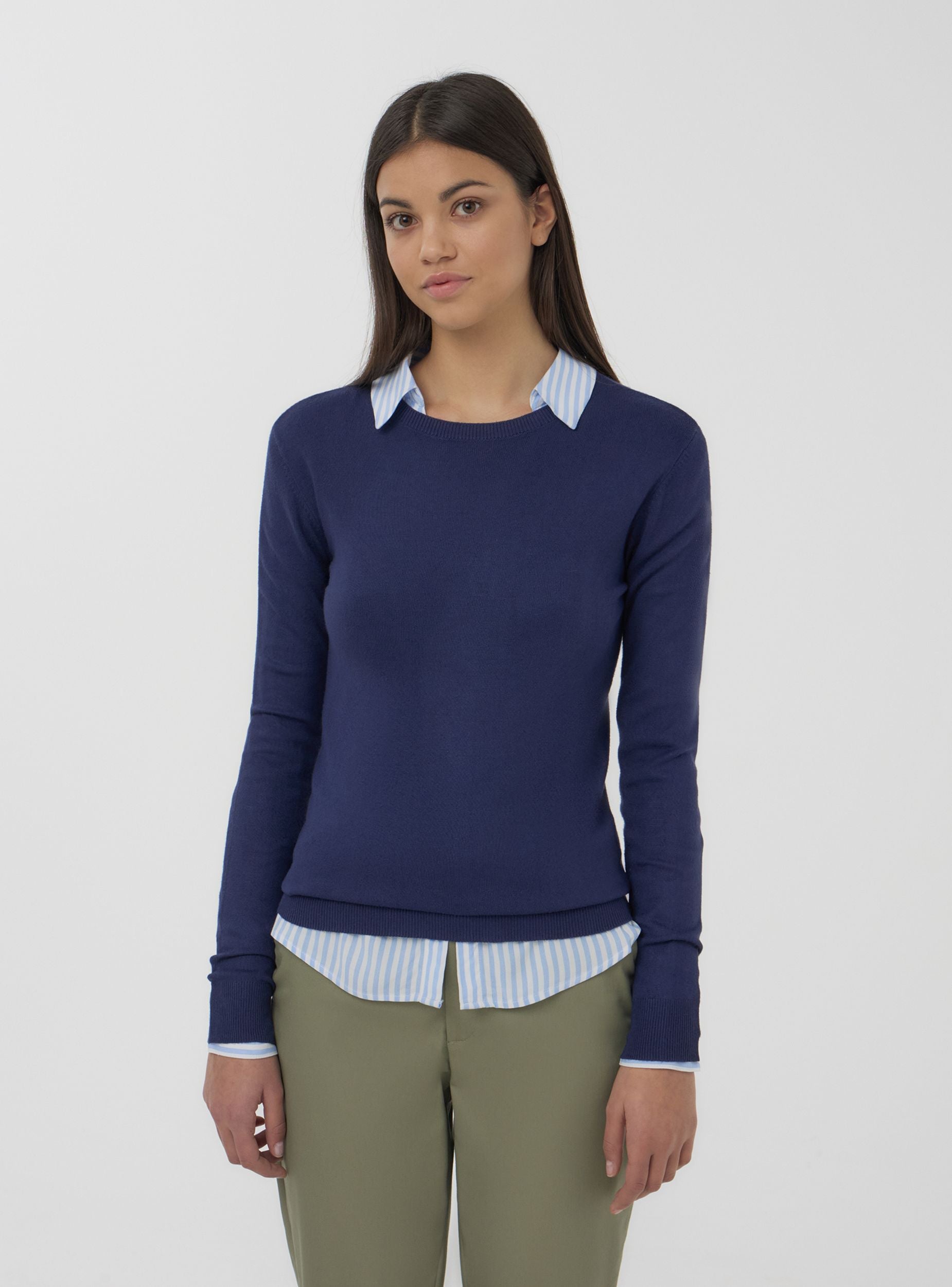 Maglia da donna ideale per un look quotidiano versatile e confortevole. Il design a tinta unita, con girocollo e maniche lunghe, la rende perfetta per ogni occasione, dal tempo libero alle giornate in ufficio. Il taglio basico assicura una vestibilità comoda e adatta a qualsiasi stile, da abbinare facilmente con jeans, leggings o gonne per un outfit pratico e alla moda.Dettagli