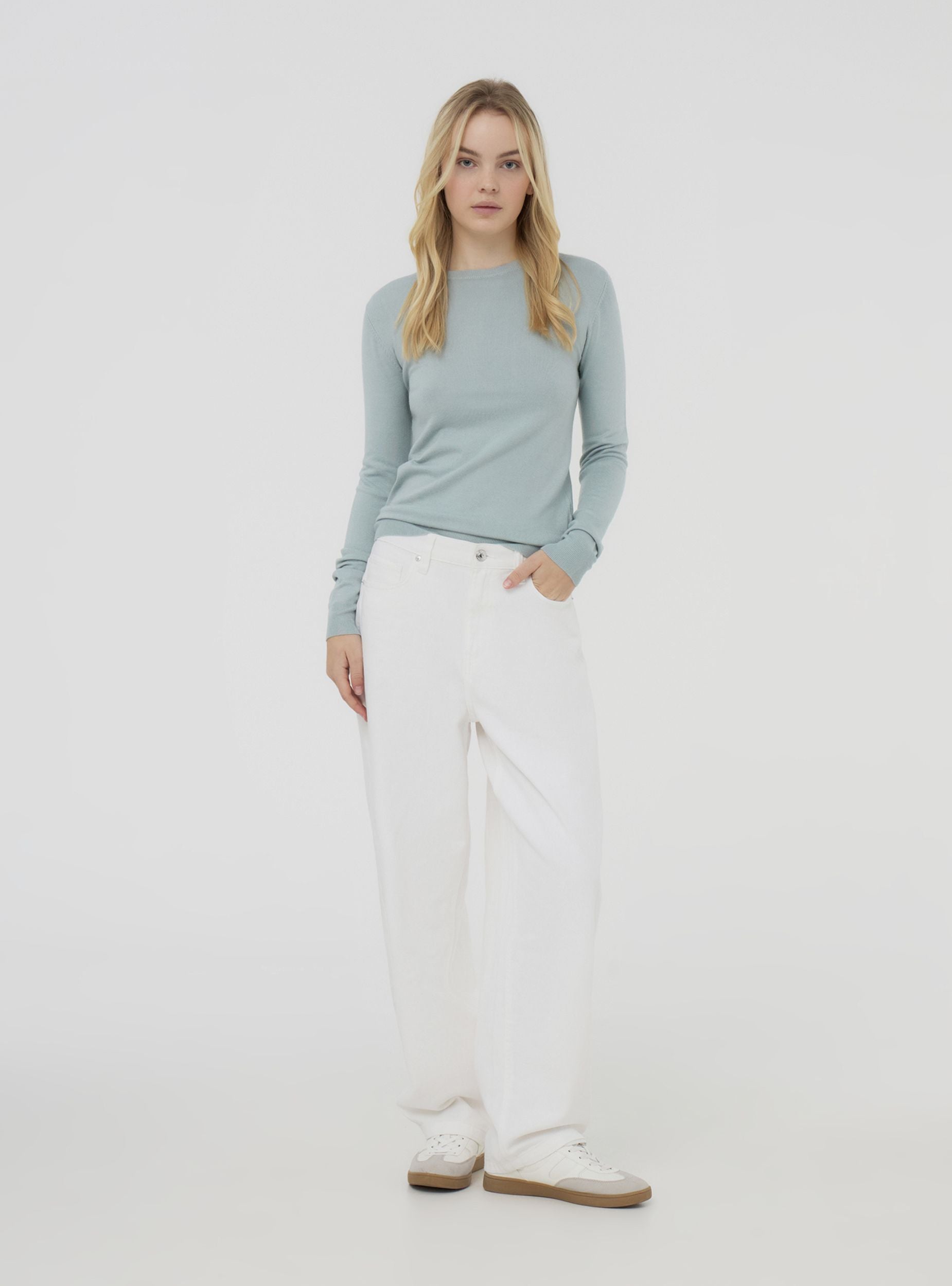 Maglia da donna ideale per un look quotidiano versatile e confortevole. Il design a tinta unita, con girocollo e maniche lunghe, la rende perfetta per ogni occasione, dal tempo libero alle giornate in ufficio. Il taglio basico assicura una vestibilità comoda e adatta a qualsiasi stile, da abbinare facilmente con jeans, leggings o gonne per un outfit pratico e alla moda.Dettagli