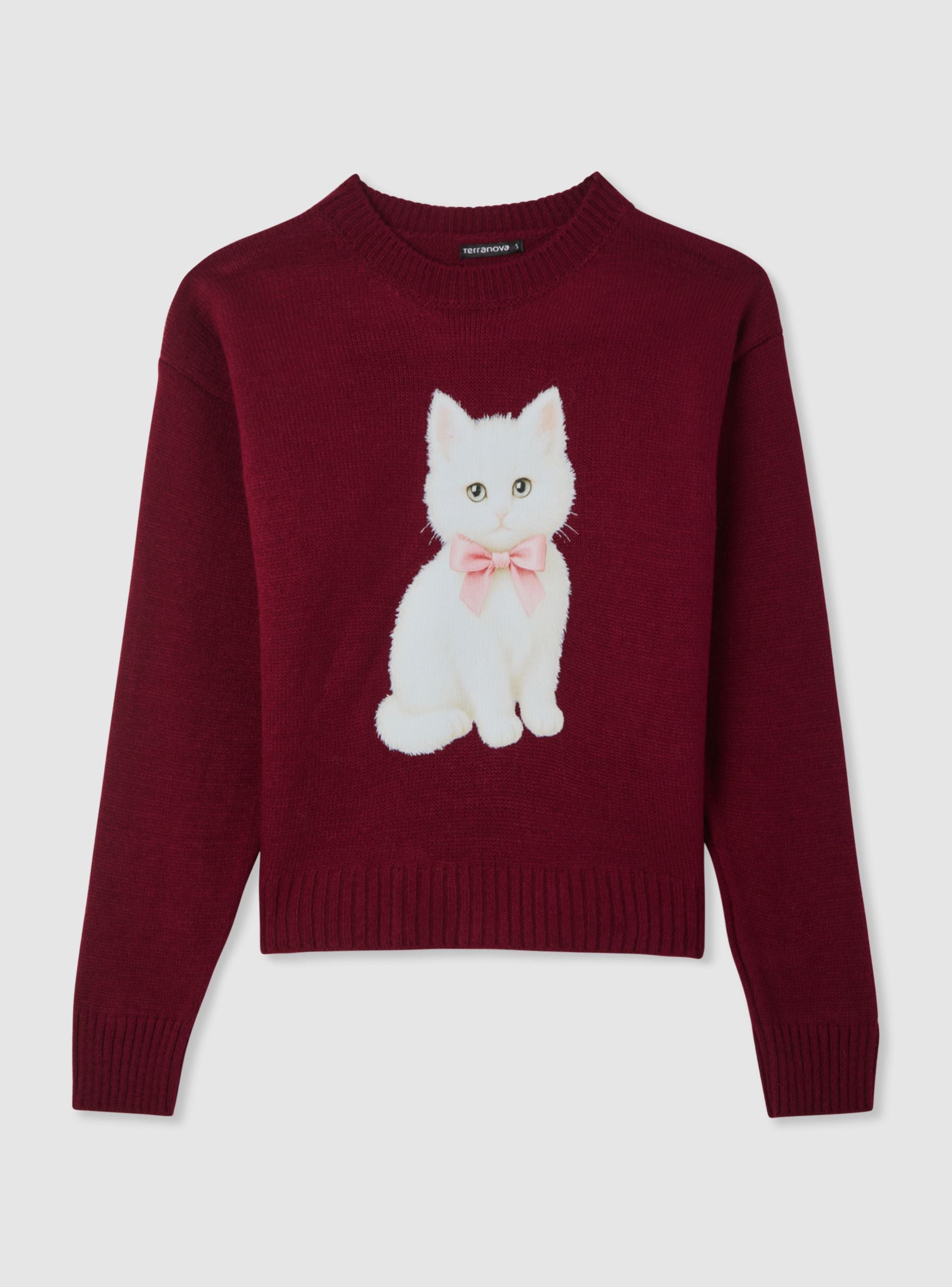 Maglia da donna a tinta unita con stampa gattino centrale, ideale per look casual e da tempo libero. Modello girocollo con maniche lunghe e spalle leggermente scese, facile da abbinare a jeans o pantaloni a vita alta. Polsini e fondo a costine per una linea ordinata e una vestibilità confortevole, perfetta anche sotto cappotti e giacche.Dettagli