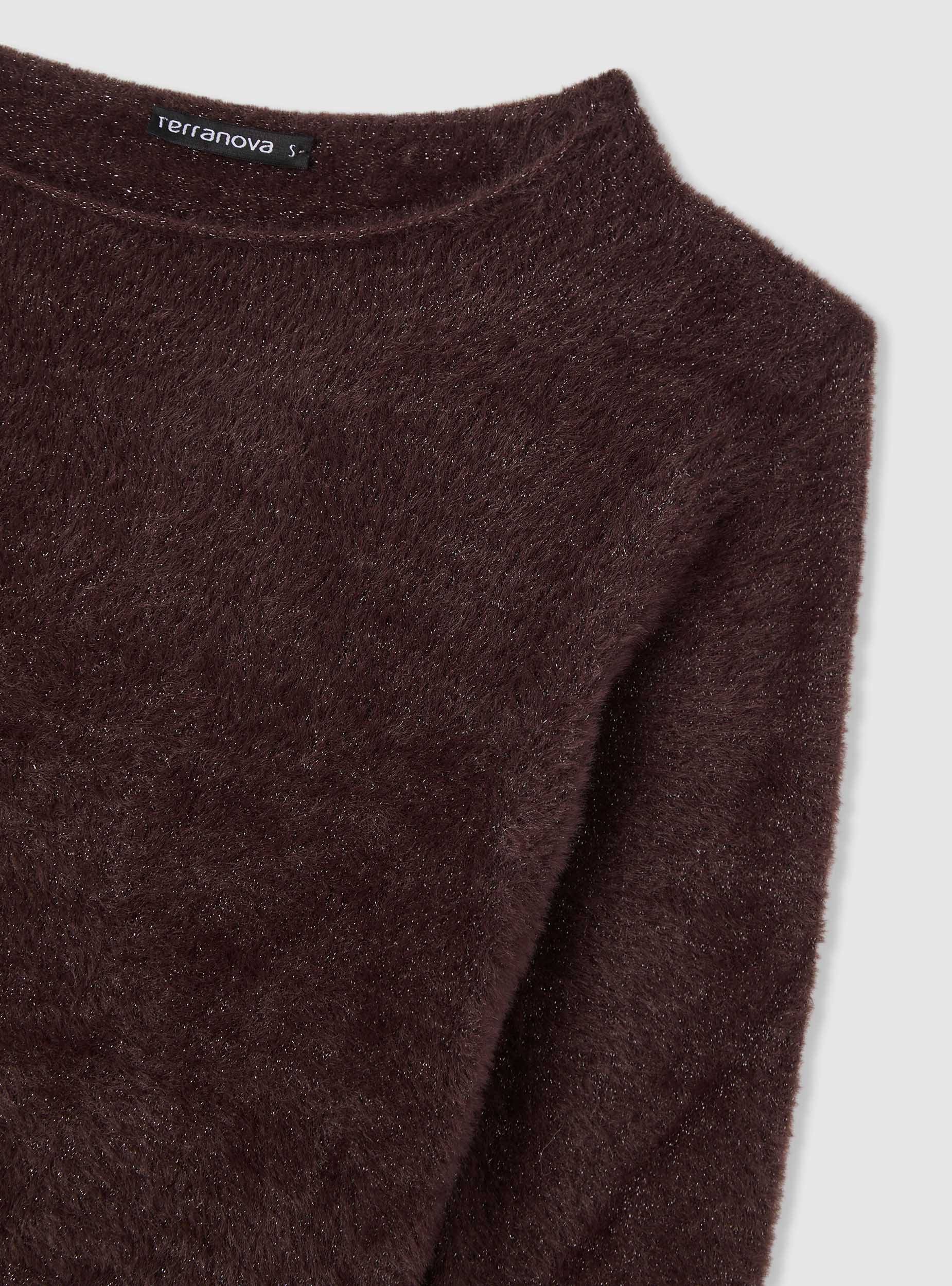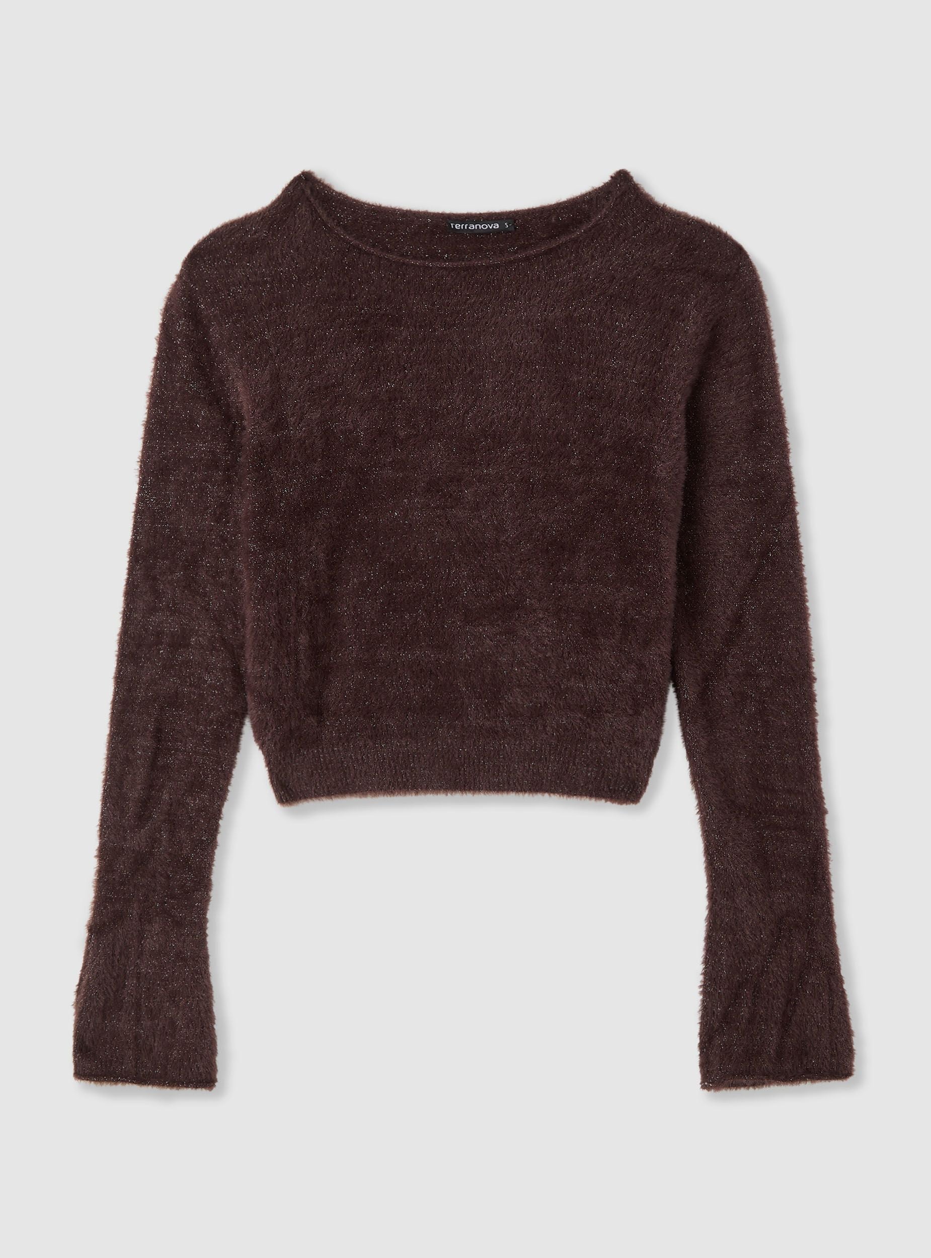 Maglia da donna a tinta unita dal finish effetto luccicante, ideale per look da sera o per dare un tocco brillante agli outfit di tutti i giorni. Modello a girocollo con maniche lunghe e linea corta, facile da abbinare a jeans a vita alta, gonne o pantaloni sartoriali. Design essenziale senza chiusura, per un fit comodo e versatile.Dettagli