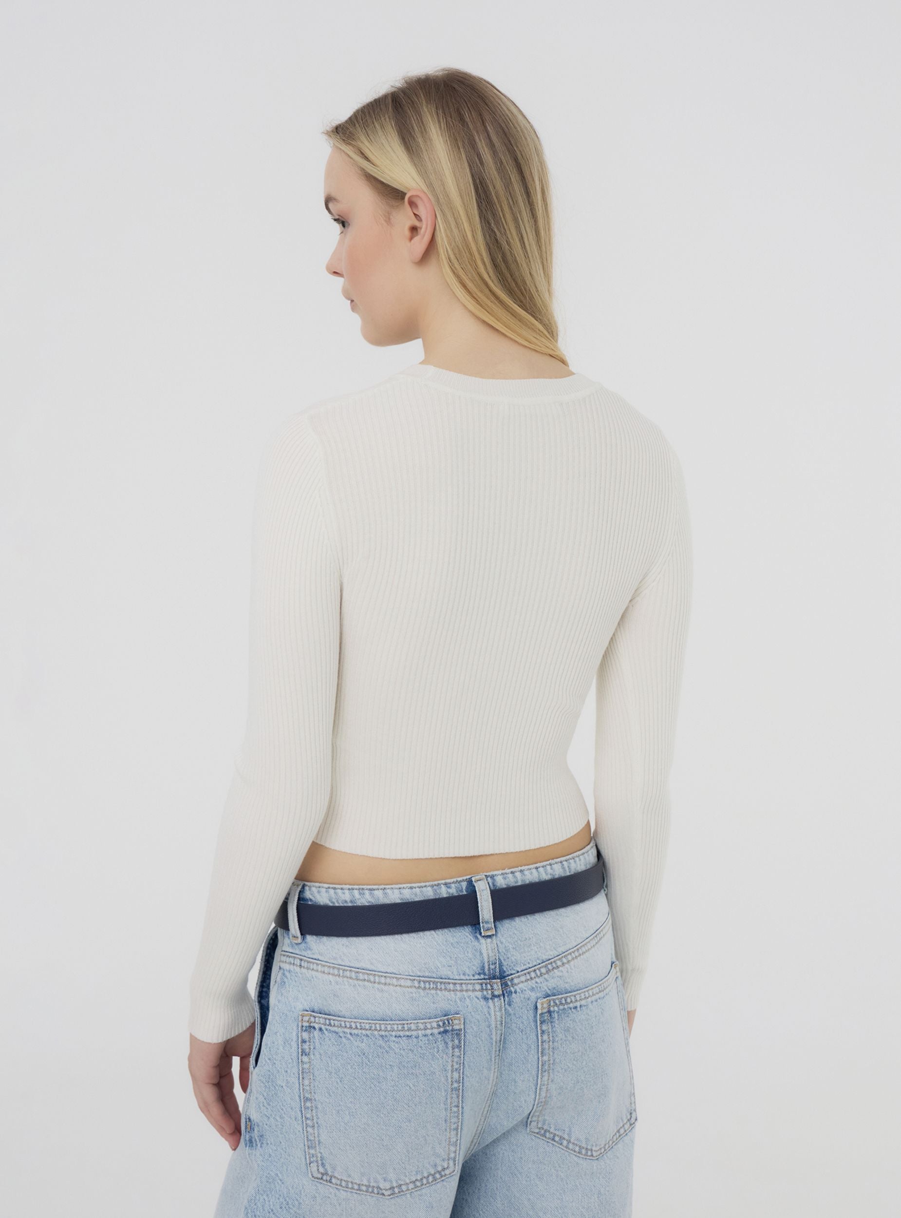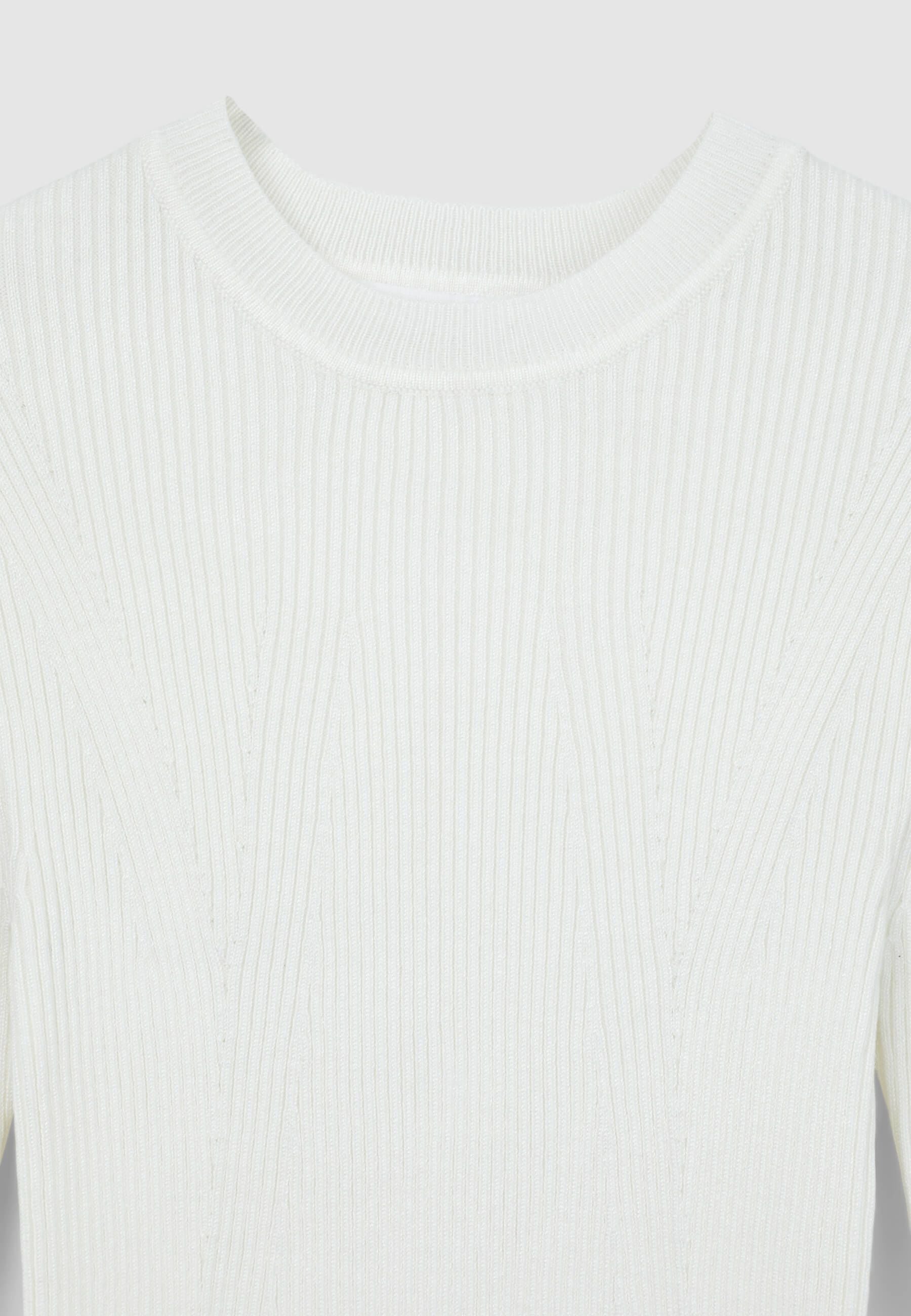 Maglia da donna a tinta unita con girocollo e maniche lunghe, caratterizzata da una lavorazione a costine che valorizza la silhouette. Il design crop la rende ideale per abbinamenti con jeans a vita alta o gonne aderenti, perfetta per un look casual ma curato. Ideale per il tempo libero, un aperitivo o una giornata di shopping, unisce stile e versatilità in ogni occasione.Dettagli