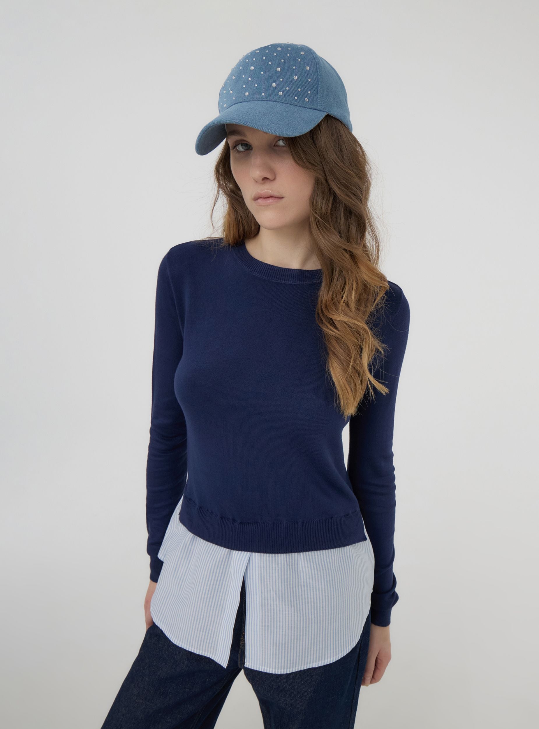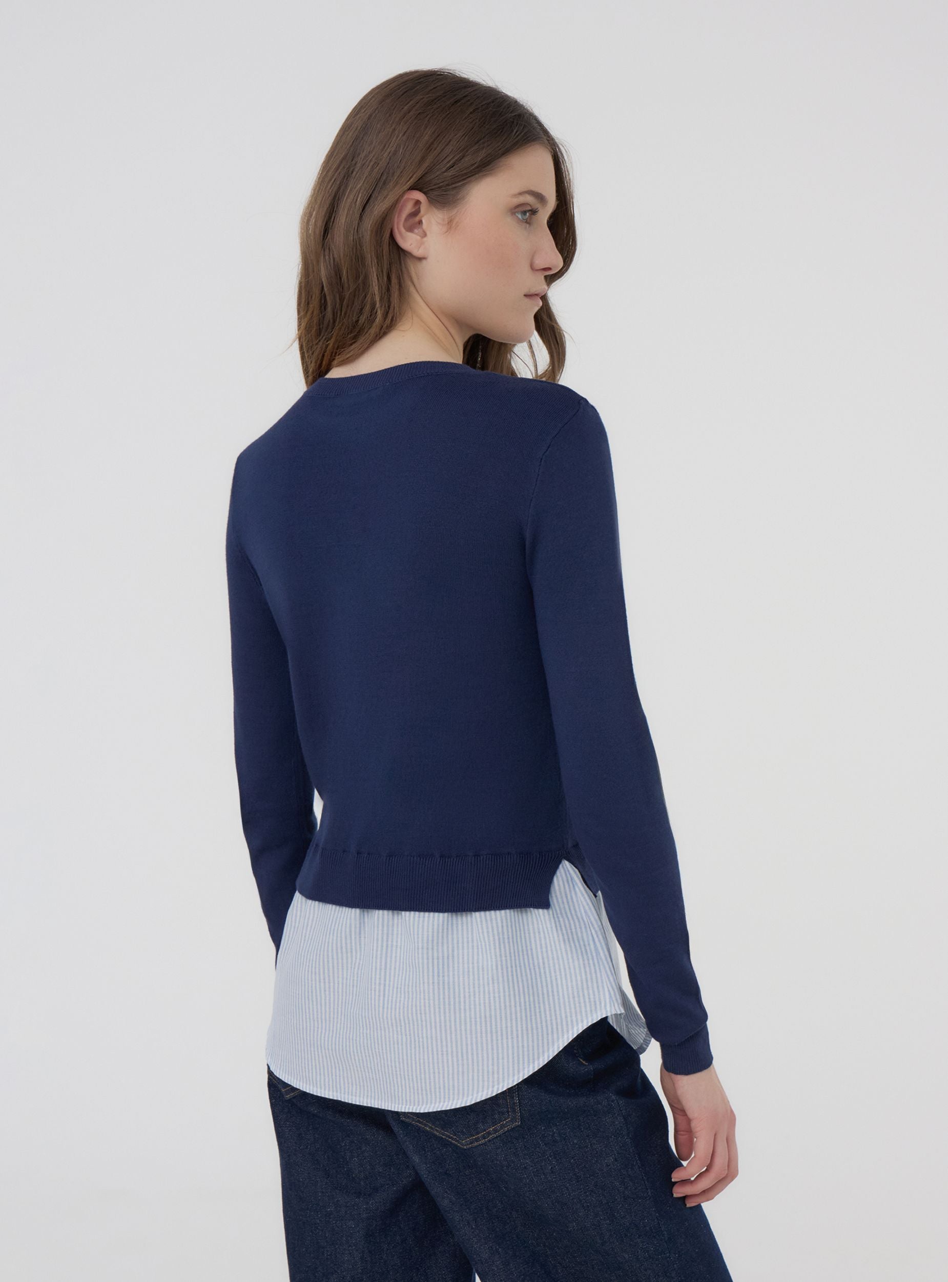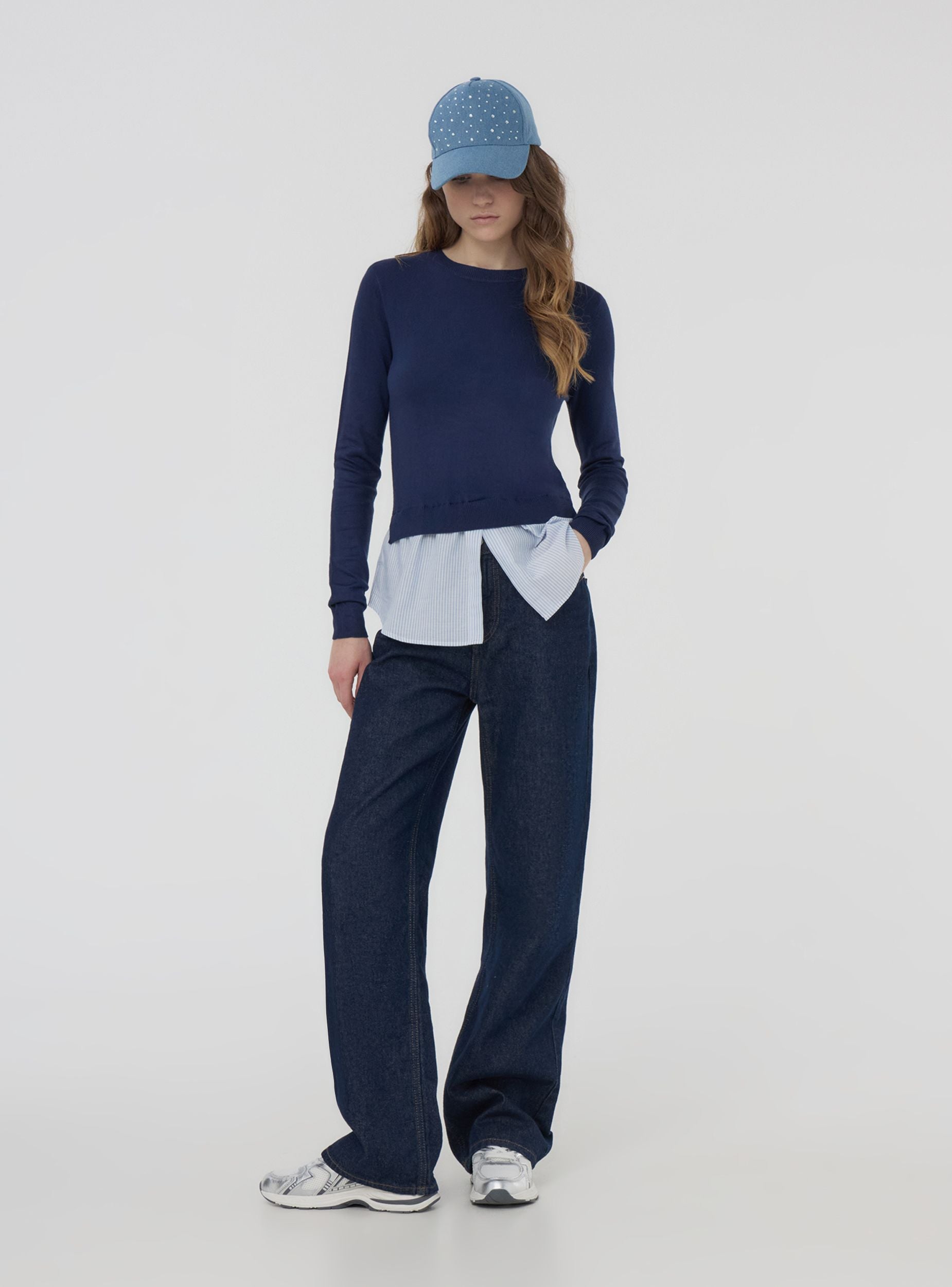 Maglia da donna doppiata con maniche lunghe e girocollo, perfetta per aggiungere un tocco di stile ai tuoi outfit quotidiani. Il design a doppio strato dona un effetto sofisticato e dinamico, ideale per abbinamenti con jeans o pantaloni skinny. Perfetta per il lavoro, incontri informali o momenti di relax, offre un look contemporaneo e versatile.Dettagli