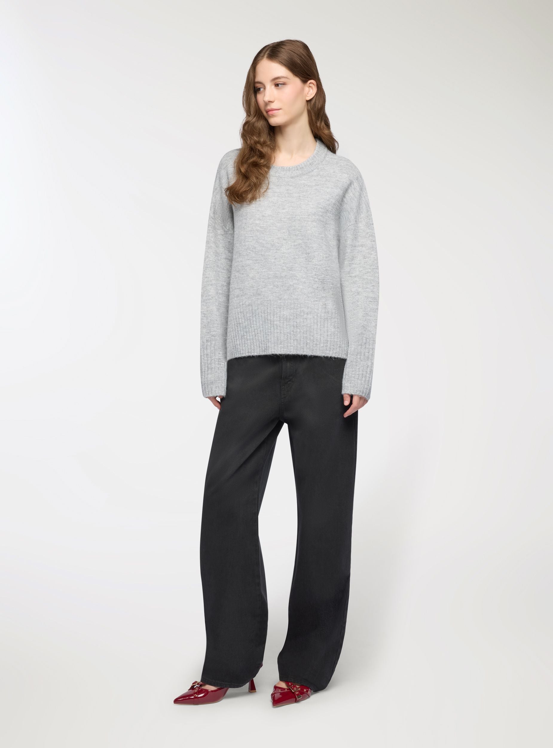 Maglia da donna con maniche lunghe e design a tinta unita. Presenta un collo rotondo e una vestibilità ampia, ideale per un look casual e confortevole. Perfetta per essere abbinata a jeans o pantaloni per un outfit quotidiano. Il design semplice e versatile la rende adatta a diverse occasioni, garantendo stile e comodità.