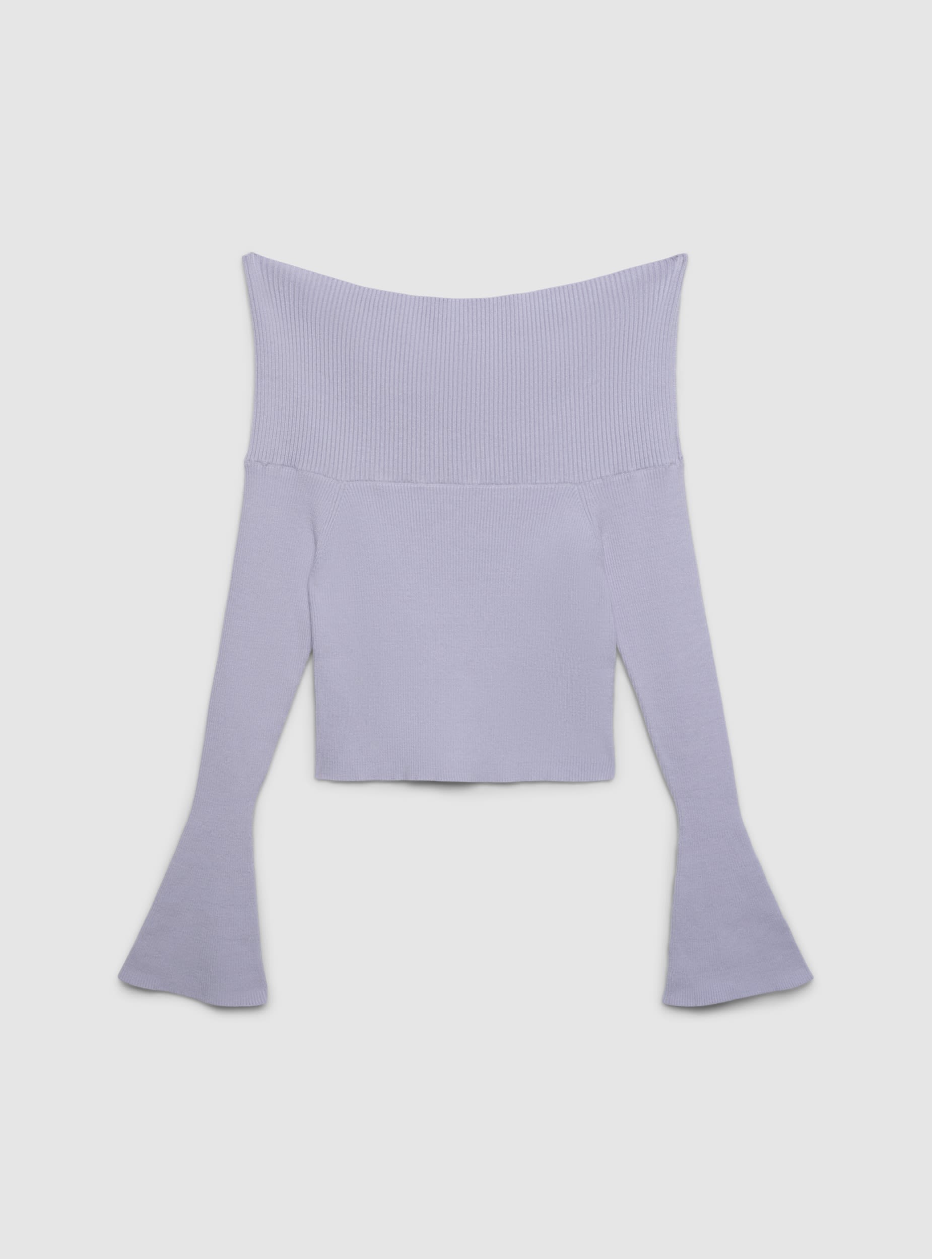 Maglia da donna crop a spalle scoperte, perfetta per look trendy e serate. Le maniche lunghe svasate aggiungono un tocco femminile. La lavorazione a coste nella parte superiore valorizza la silhouette. Vestibilità aderente sul busto. Tinta unita facile da abbinare con jeans a vita alta, gonne midi o pantaloni eleganti.Dettagli