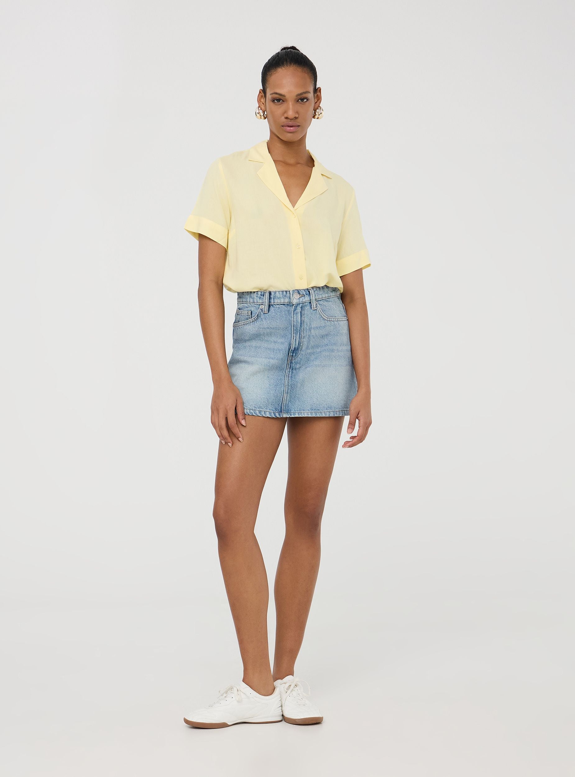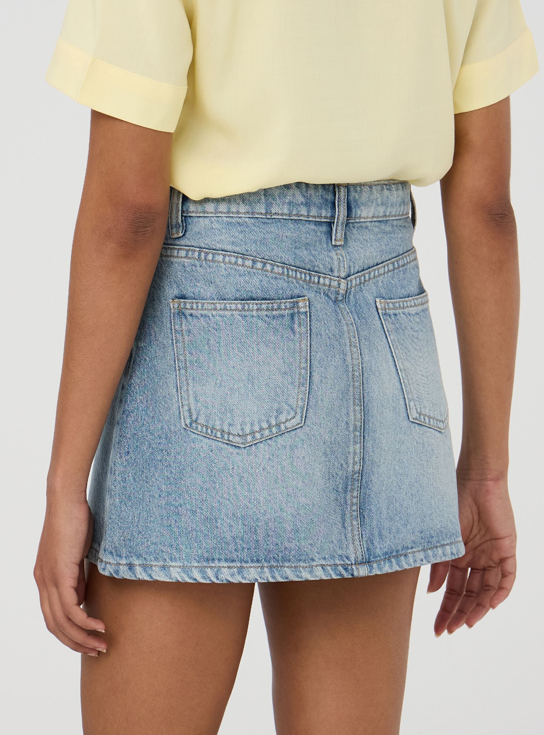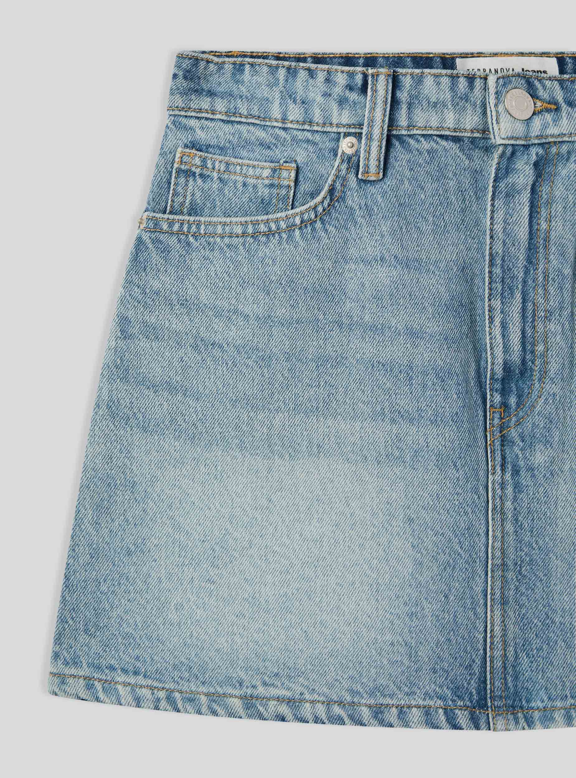 Minigonna da donna dal taglio essenziale e di tendenza, perfetta per look versatili e dinamici. La tinta unita con lavaggio denim medio si abbina facilmente a qualsiasi outfit, mentre il design a cinque tasche aggiunge funzionalità. Dotata di chiusura con bottone e zip e passanti in vita per un fit personalizzabile. Ideale con una t-shirt e sneakers per il giorno o con una camicia e sandali per un tocco più ricercato.Dettagli