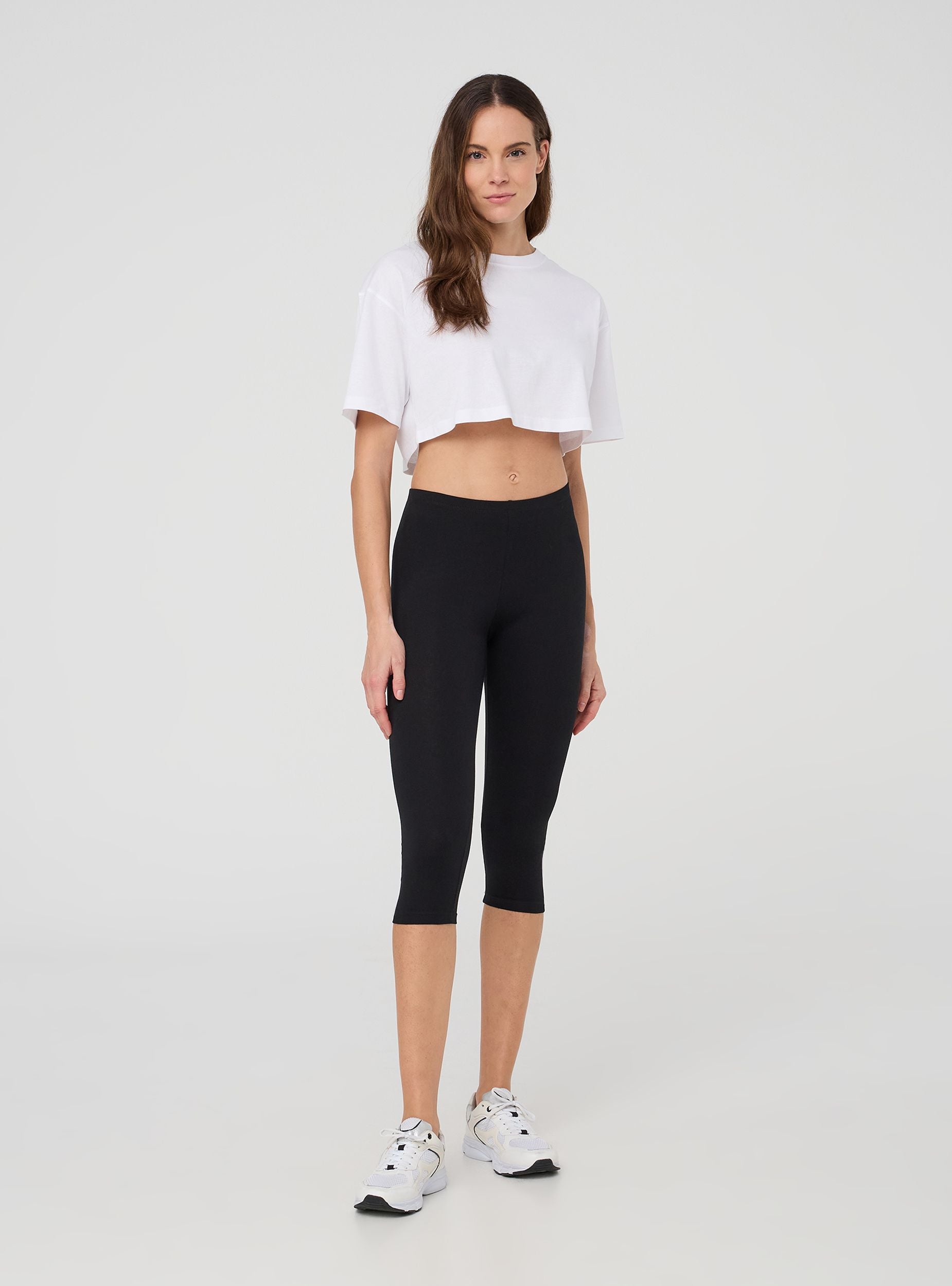 Confezione composta da 2 leggings da donna, ideali per un look pratico e versatile. Con un design a tre quarti, questi leggings sono caratterizzati da un tessuto a tinta unita che li rende facili da abbinare a qualsiasi outfit. Realizzati per garantire comfort e libertà di movimento, grazie alla loro elasticità si adattano perfettamente al corpo, offrendo un fit aderente e confortevole. Ideali per l'uso quotidiano, assicurando morbidezza e traspirabilità.Dettagli