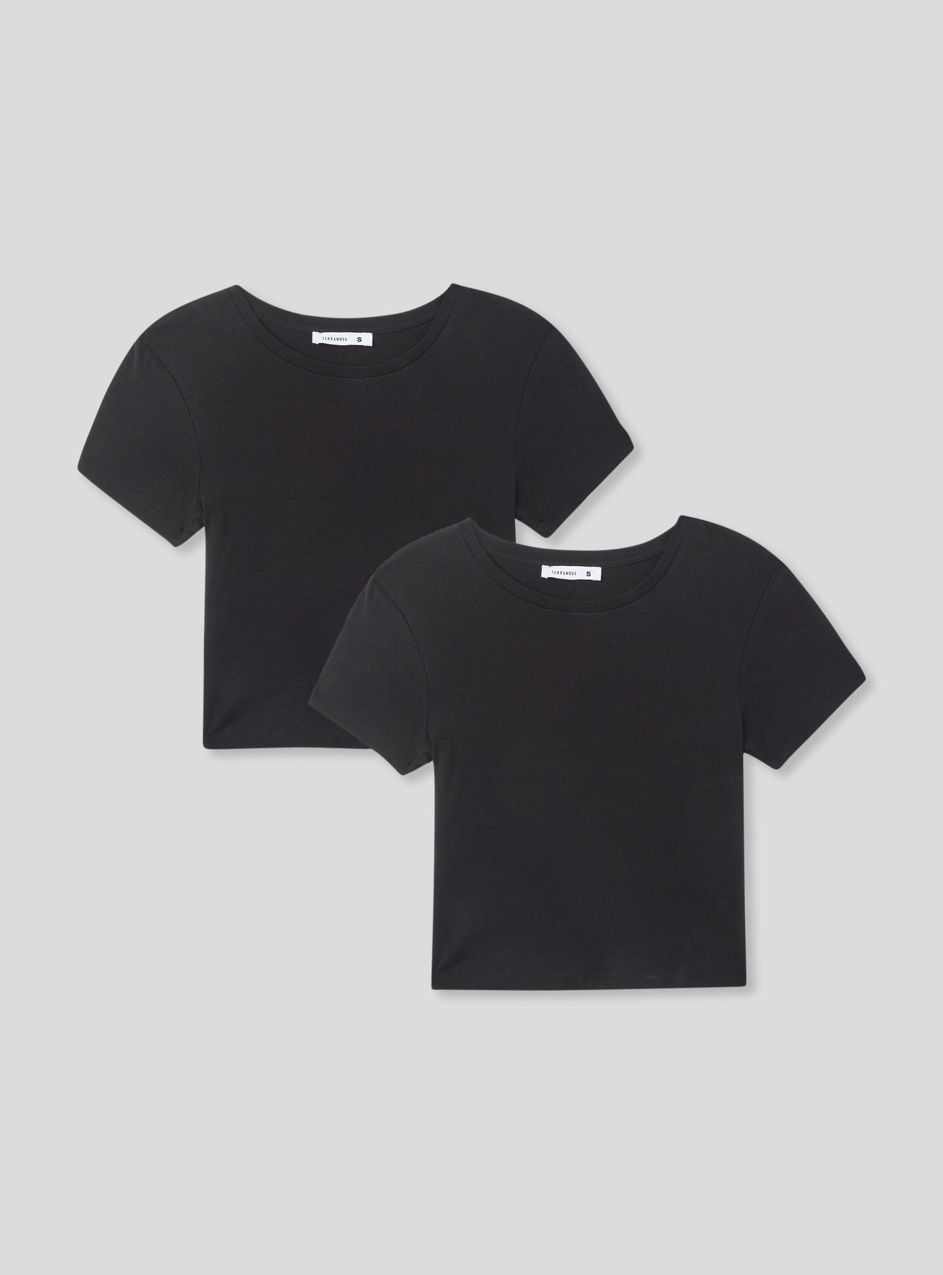 Confezione composta da 2 magliette da donna dal taglio crop e dalla vestibilità aderente. Le magliette sono a tinta unita, ideali per creare un look casual e moderno. La loro lunghezza corta le rende perfette per essere abbinate a capi a vita alta, mentre la vestibilità aderente esalta la figura. Sono versatili e si adattano bene a diversi stili, dall'abbigliamento quotidiano a quello più ricercato, grazie alla semplicità della tinta unita che le rende facilmente combinabili con altri capi.Dettagli