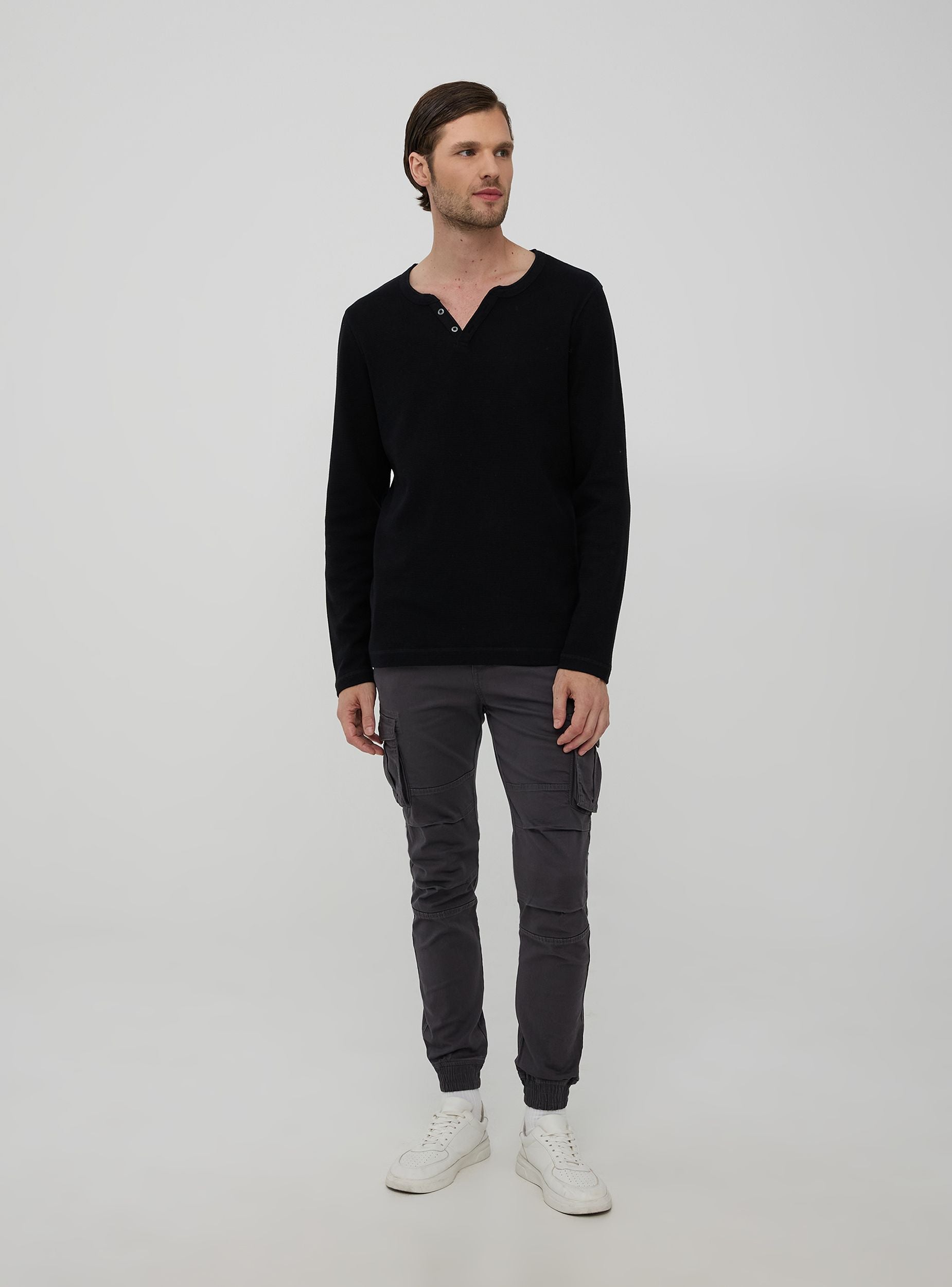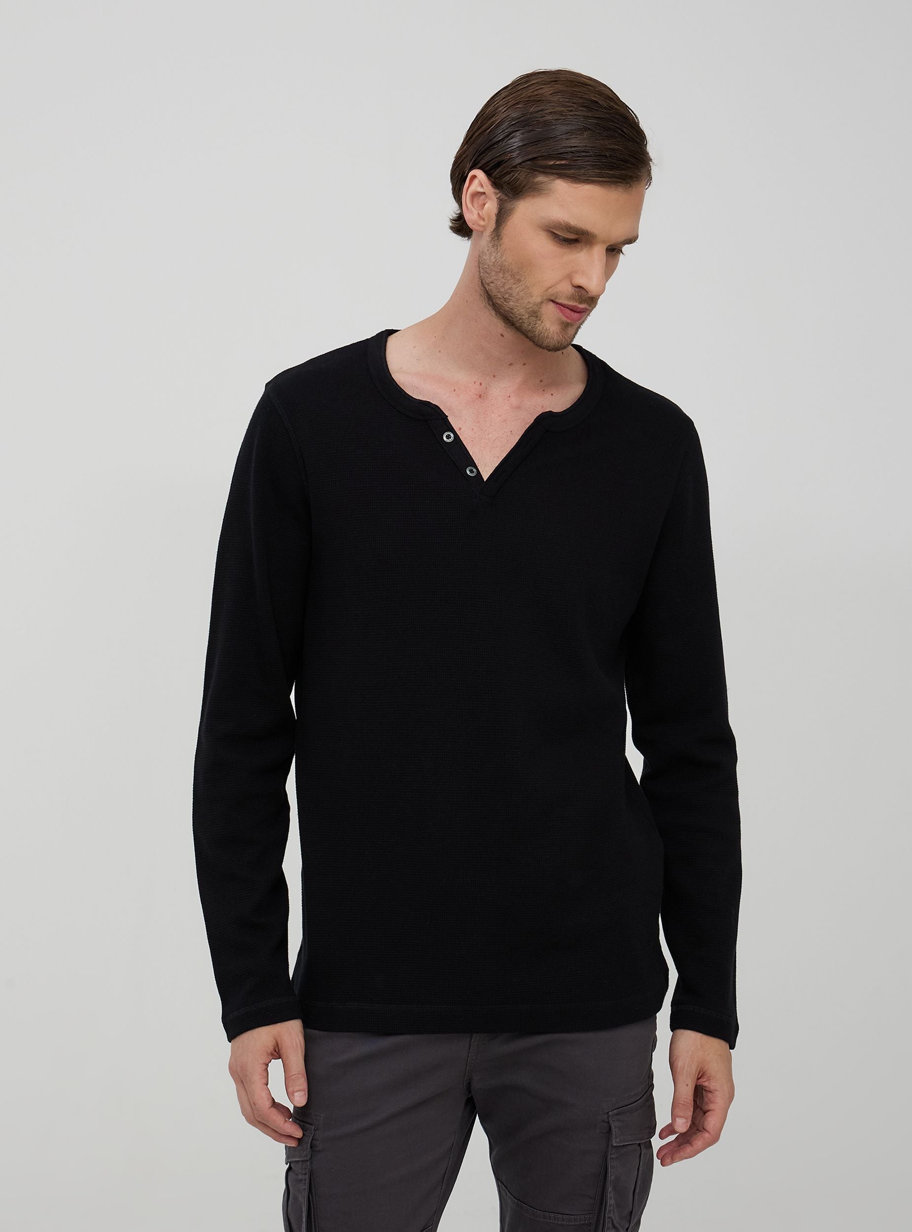 Confezione composta da due maglie a maniche lunghe, realizzate in morbido cotone a tinta unita, presentano un elegante scollo a V arricchito da bottoni come dettaglio di design. Ideale per un look casual ma curato. Perfette per il tempo libero o serate informali, queste maglie si abbinano facilmente a jeans e sneakers.Dettagli