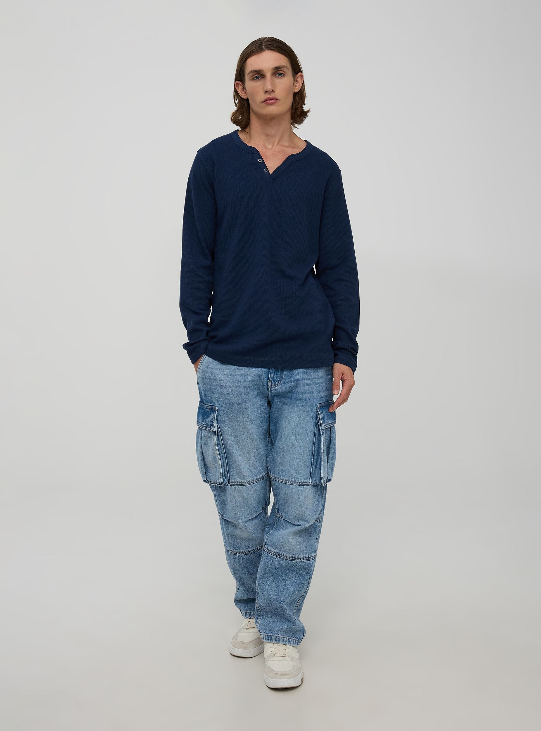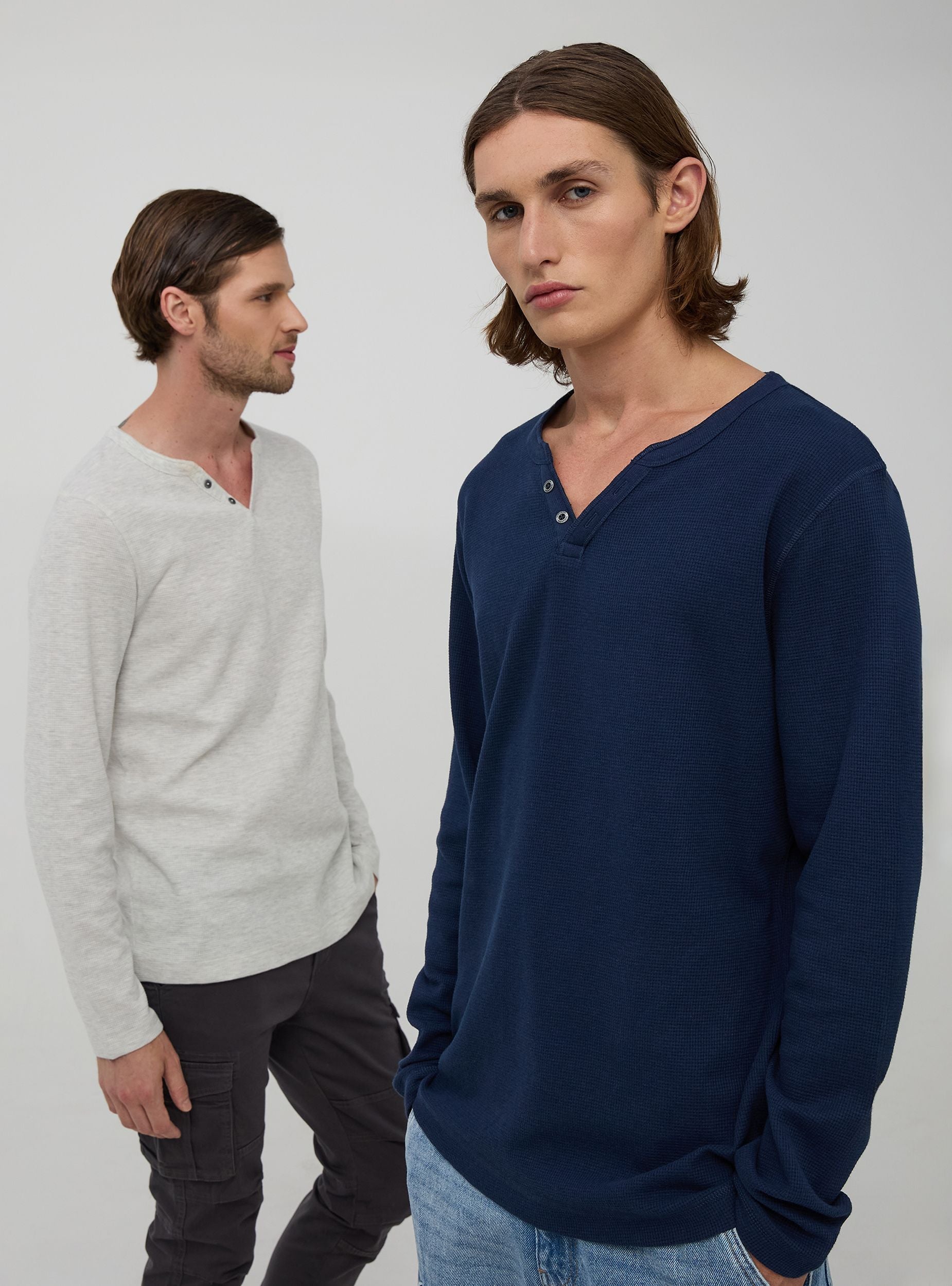 Confezione composta da due maglie a maniche lunghe, realizzate in morbido cotone a tinta unita, presentano un elegante scollo a V arricchito da bottoni come dettaglio di design. Ideale per un look casual ma curato. Perfette per il tempo libero o serate informali, queste maglie si abbinano facilmente a jeans e sneakers.Dettagli