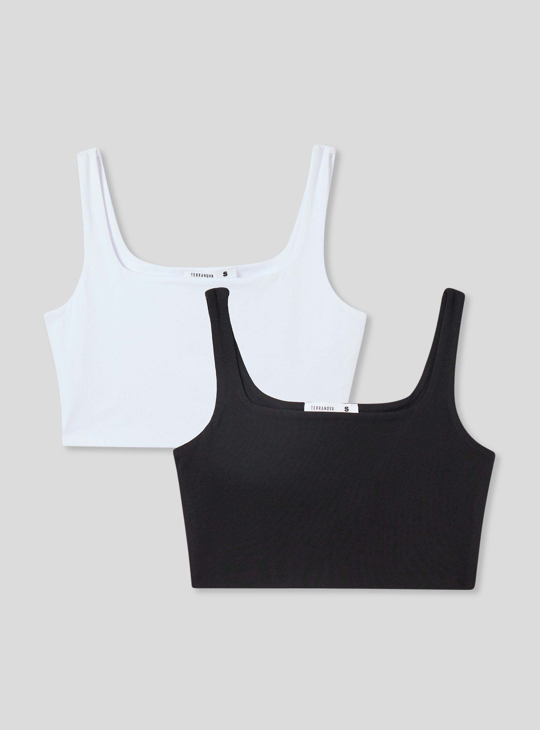 Confezione composta da due top da donna ideali per completare il guardaroba con uno stile versatile e confortevole. Presentano un raffinato scollo quadrato che valorizza il décolleté, abbinato a un design crop che li rende perfetti per le giornate più calde. Entrambi i top, in tinta unita, offrono un tocco di semplicità e praticità. Un'opzione essenziale per chi cerca comodità e stile in un unico capo.Dettagli