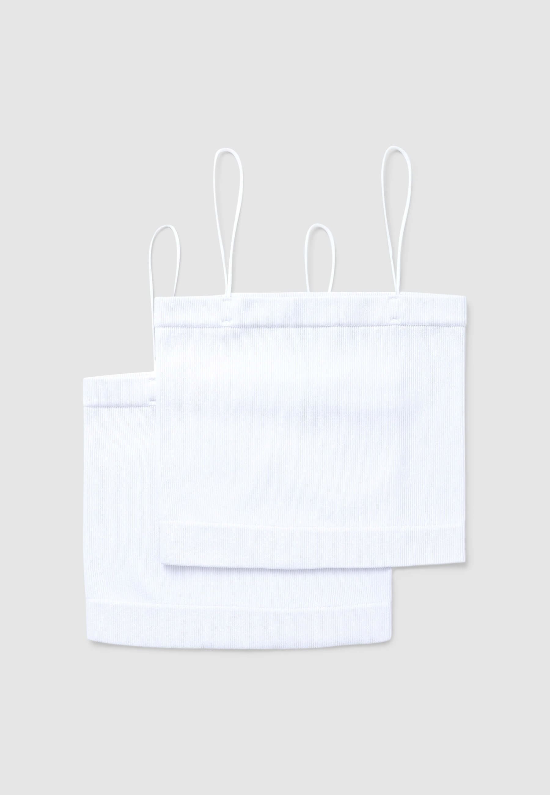 Confezione composta da 2 top da donna, ideali per un look versatile. Caratterizzati da un design crop a tinta unita, presentano una lavorazione elasticizzata con dettagli a costine che donano comfort e stile. Le sottili spalline aggiungono un tocco delicato, rendendo questi top perfetti per essere abbinati con qualsiasi outfit casual o sportivo.Dettagli