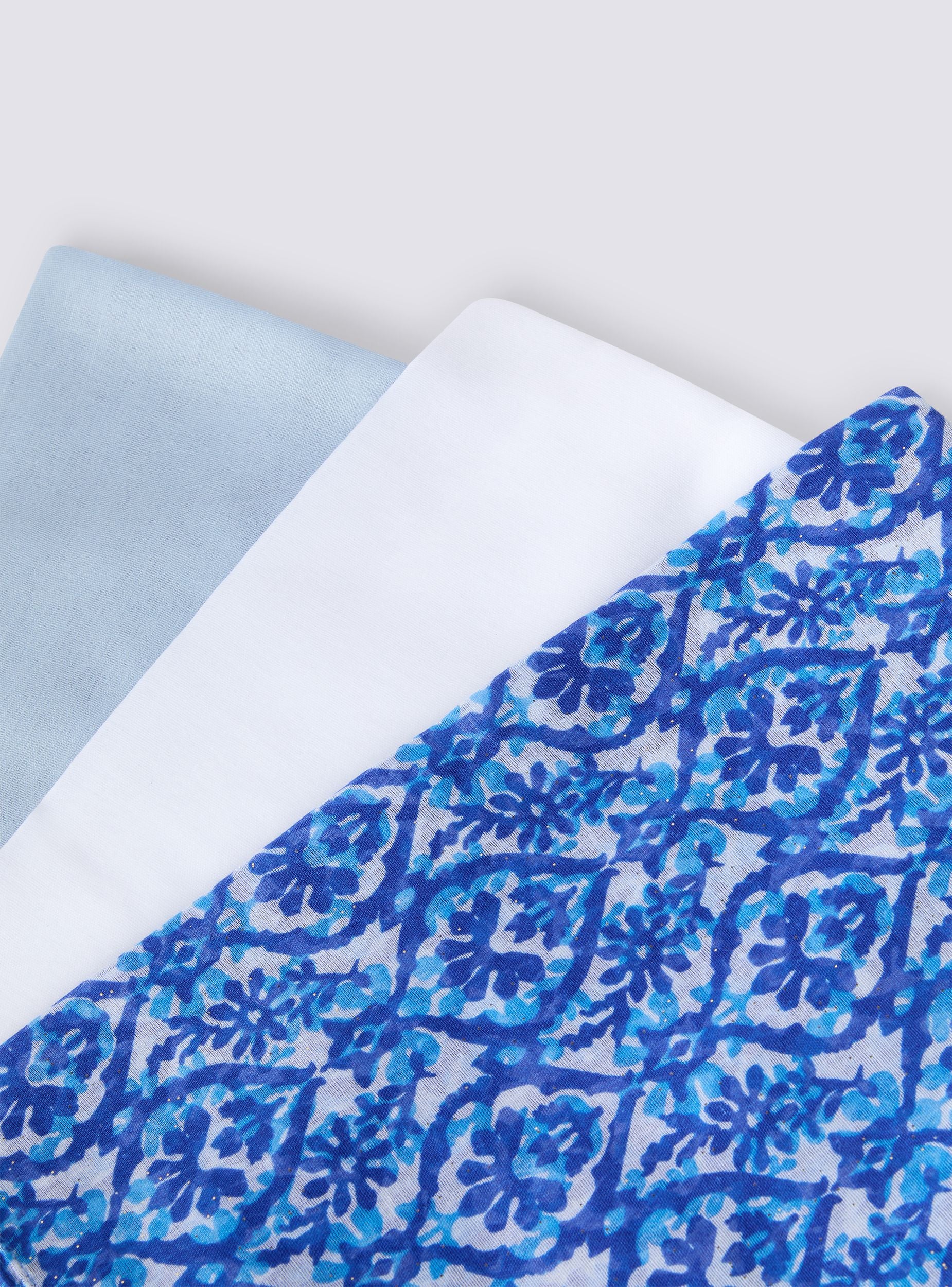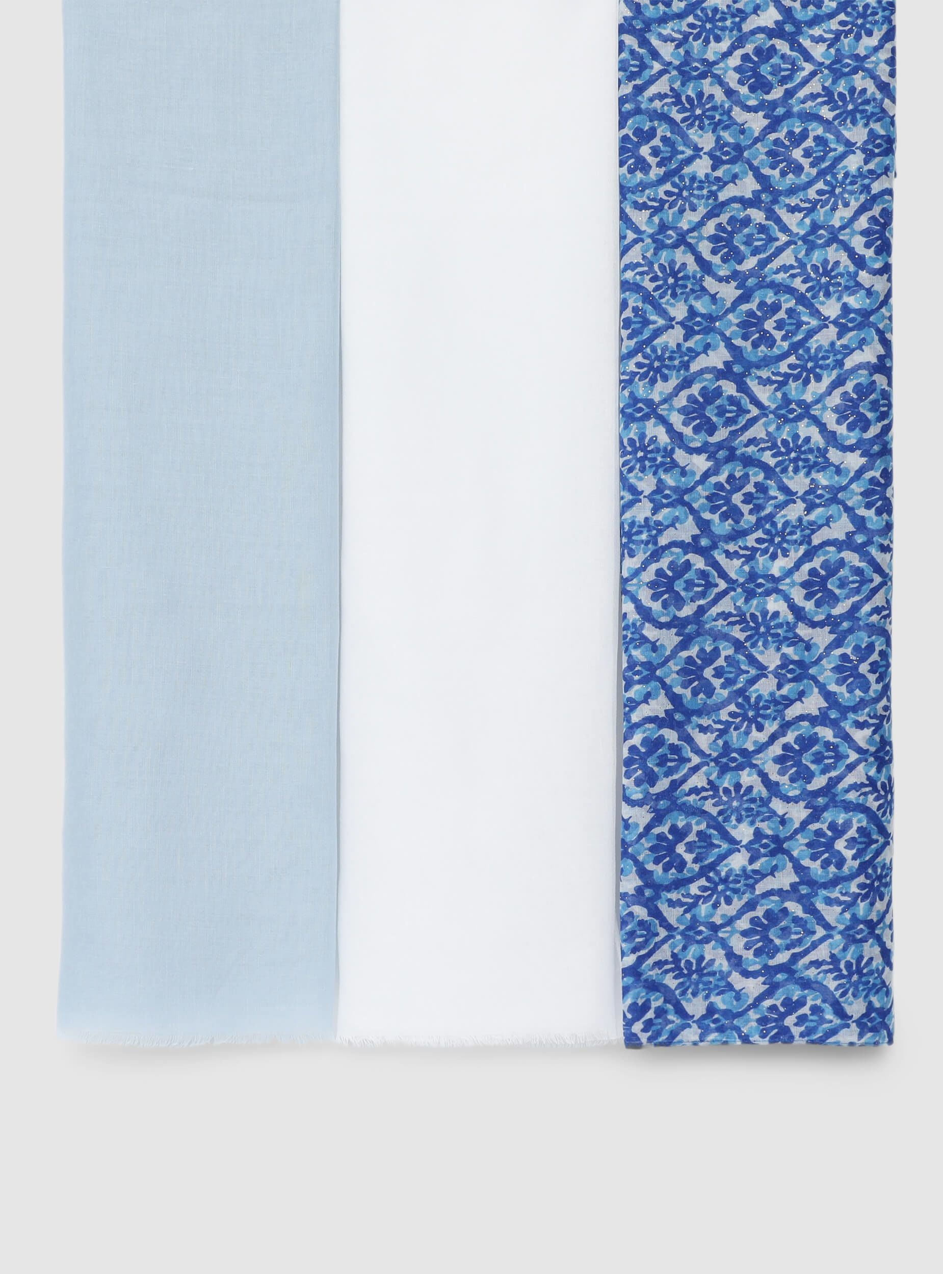 Confezione composta da 3 foulard versatili, perfetti per arricchire ogni look con stile e praticità. La combinazione di tinta unita e fantasia permette di abbinarli con facilità a diversi outfit, da quelli casual a quelli più ricercati. Ideali da indossare come pareo in spiaggia, avvolti intorno al collo per un tocco sofisticato o legati alla borsa per un dettaglio di classe. Un accessorio indispensabile per ogni stagione.Dettagli