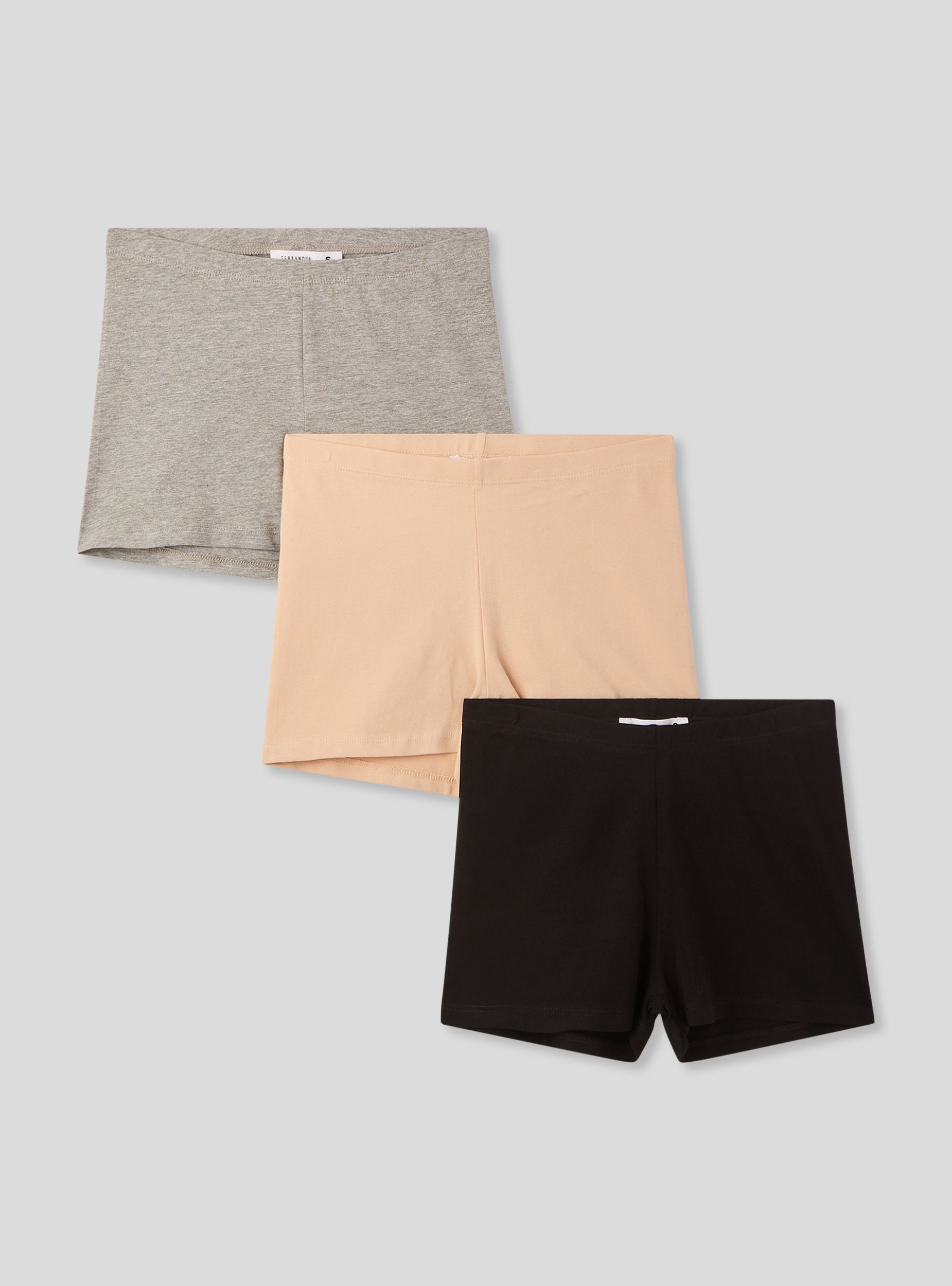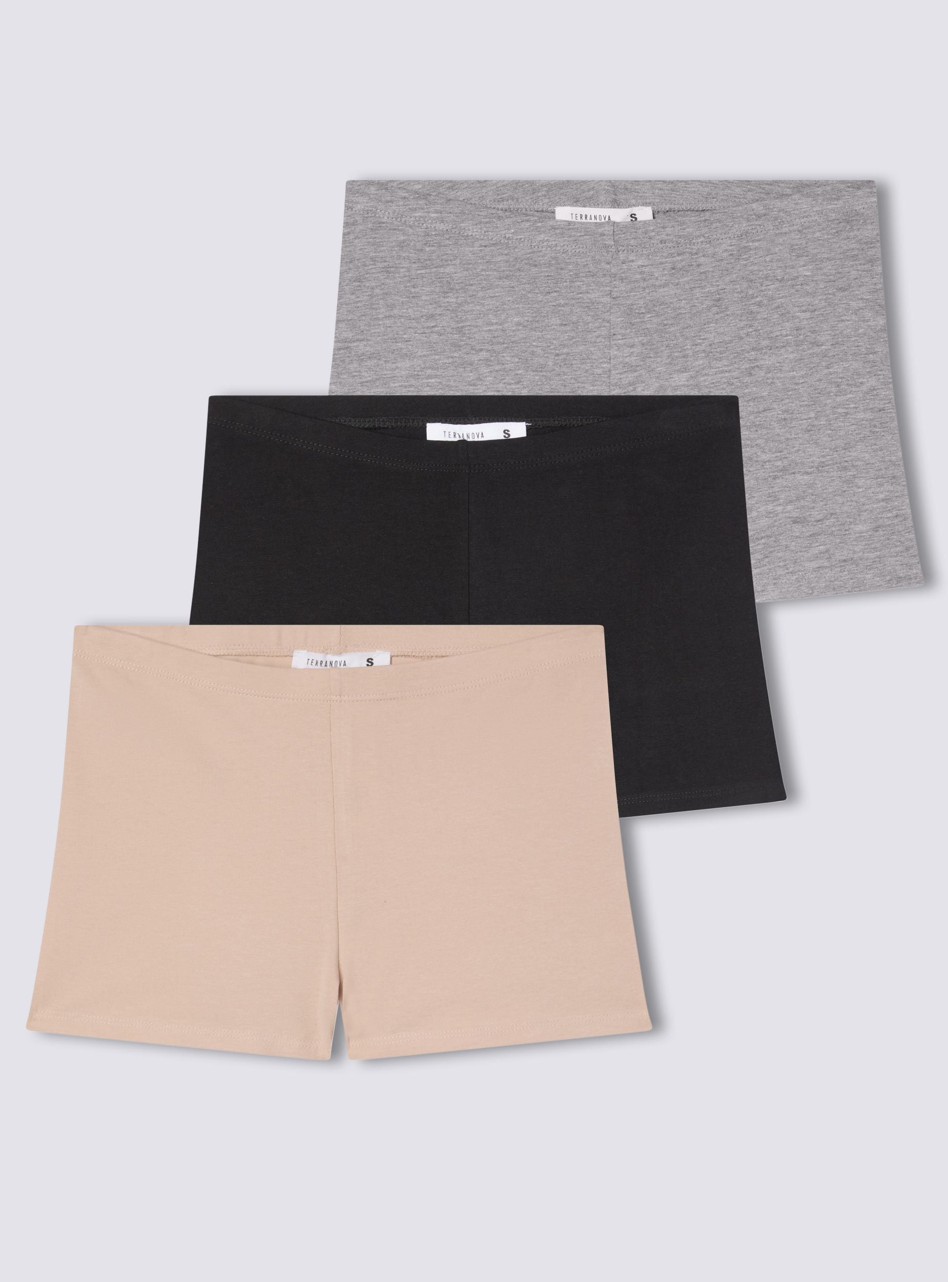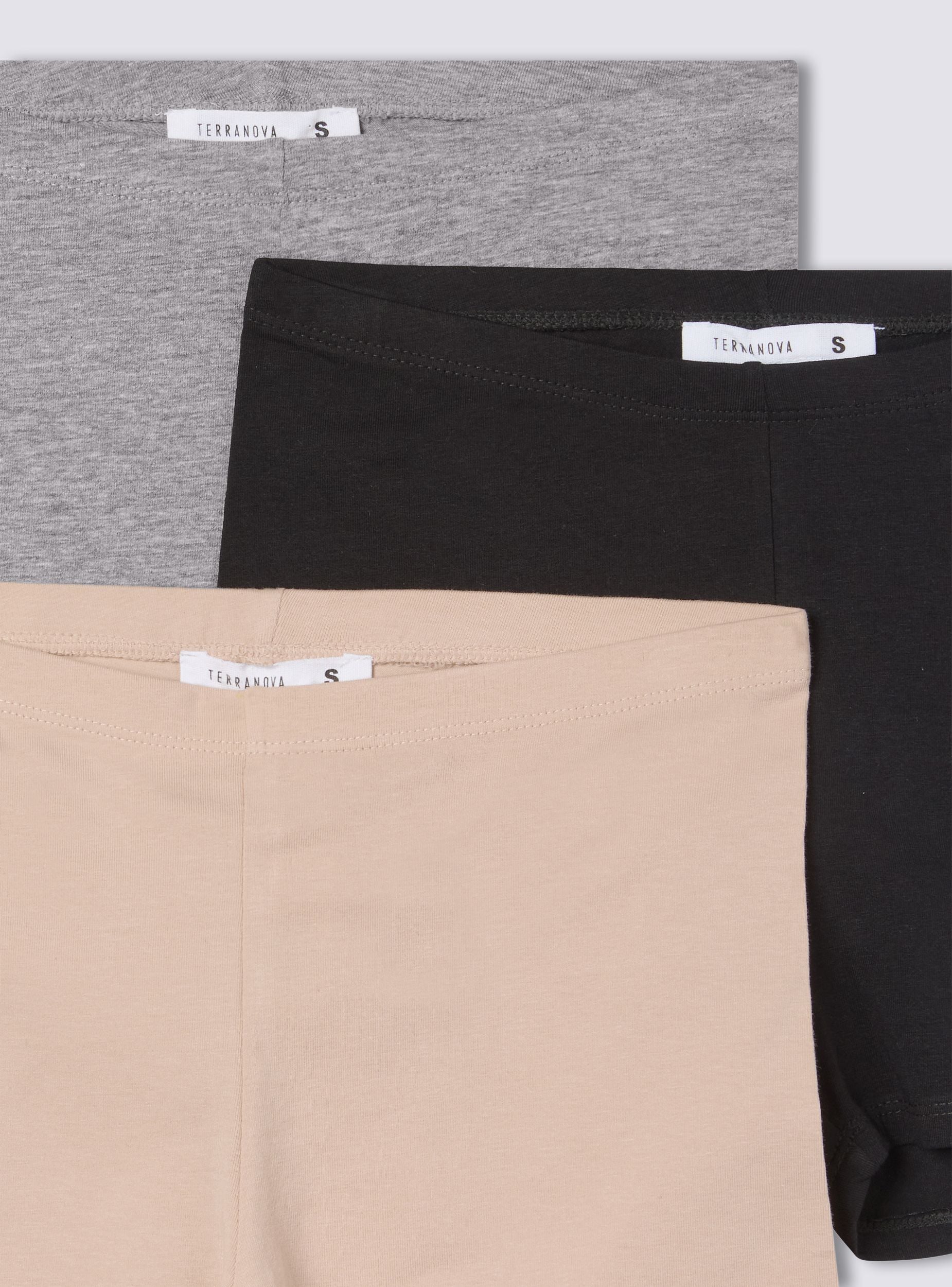 Confezione composta da 3 leggings corti da donna perfetti per attività sportive o momenti di relax. Il design a tinta unita li rende facilmente abbinabili a qualsiasi outfit, mentre il tessuto elasticizzato assicura una vestibilità aderente e confortevole. Ideali per allenamenti in palestra, jogging o semplicemente per il tempo libero, questi leggings corti uniscono praticità e stile, garantendo libertà di movimento in ogni occasione.Dettagli