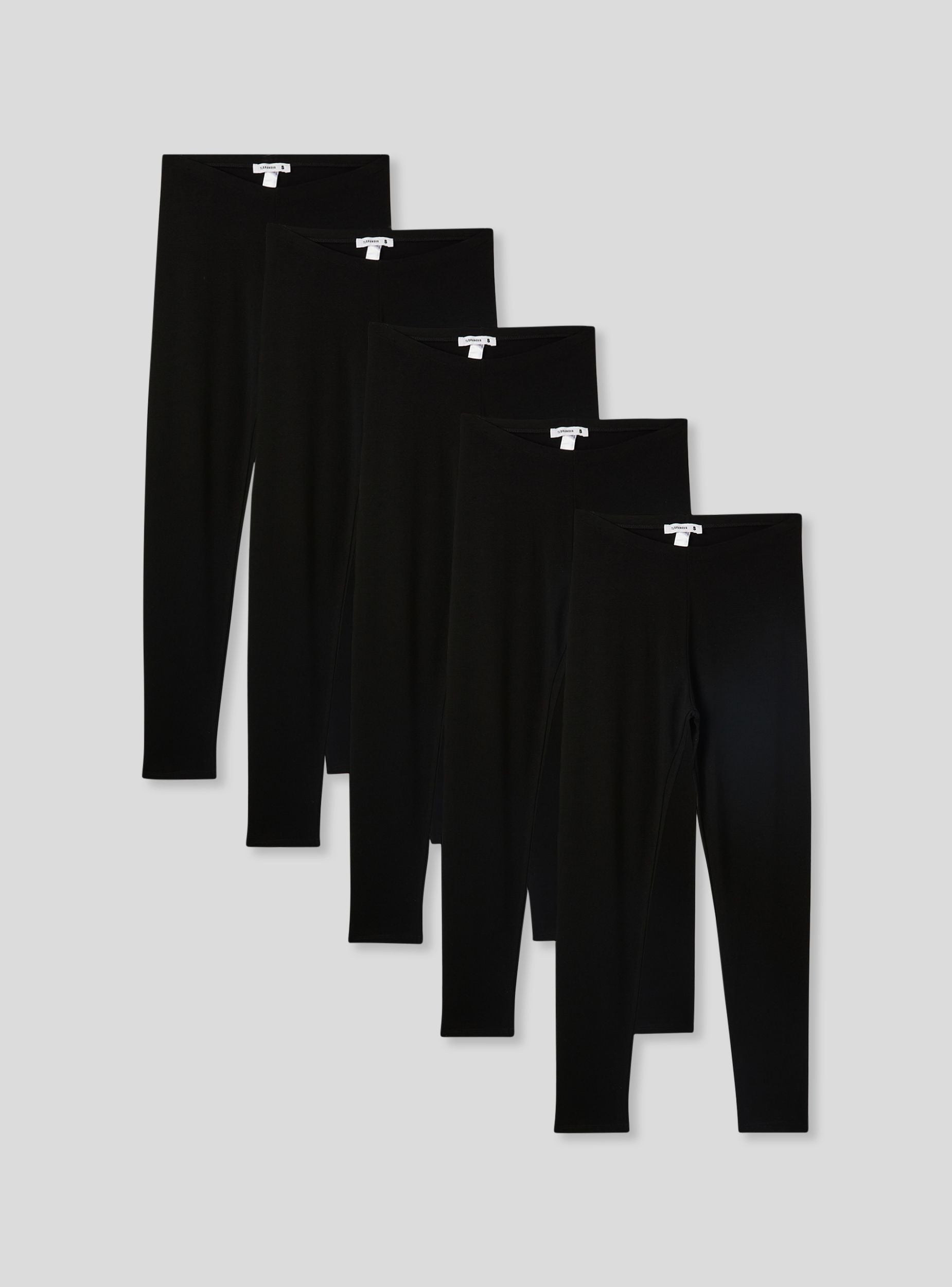 Confezione composta da 5 leggings basic da donna realizzati in tessuto elasticizzato a tinta unita. Offrono una vestibilità aderente e confortevole, perfetta per l'uso quotidiano, garantendo supporto e libertà di movimento.Dettagli