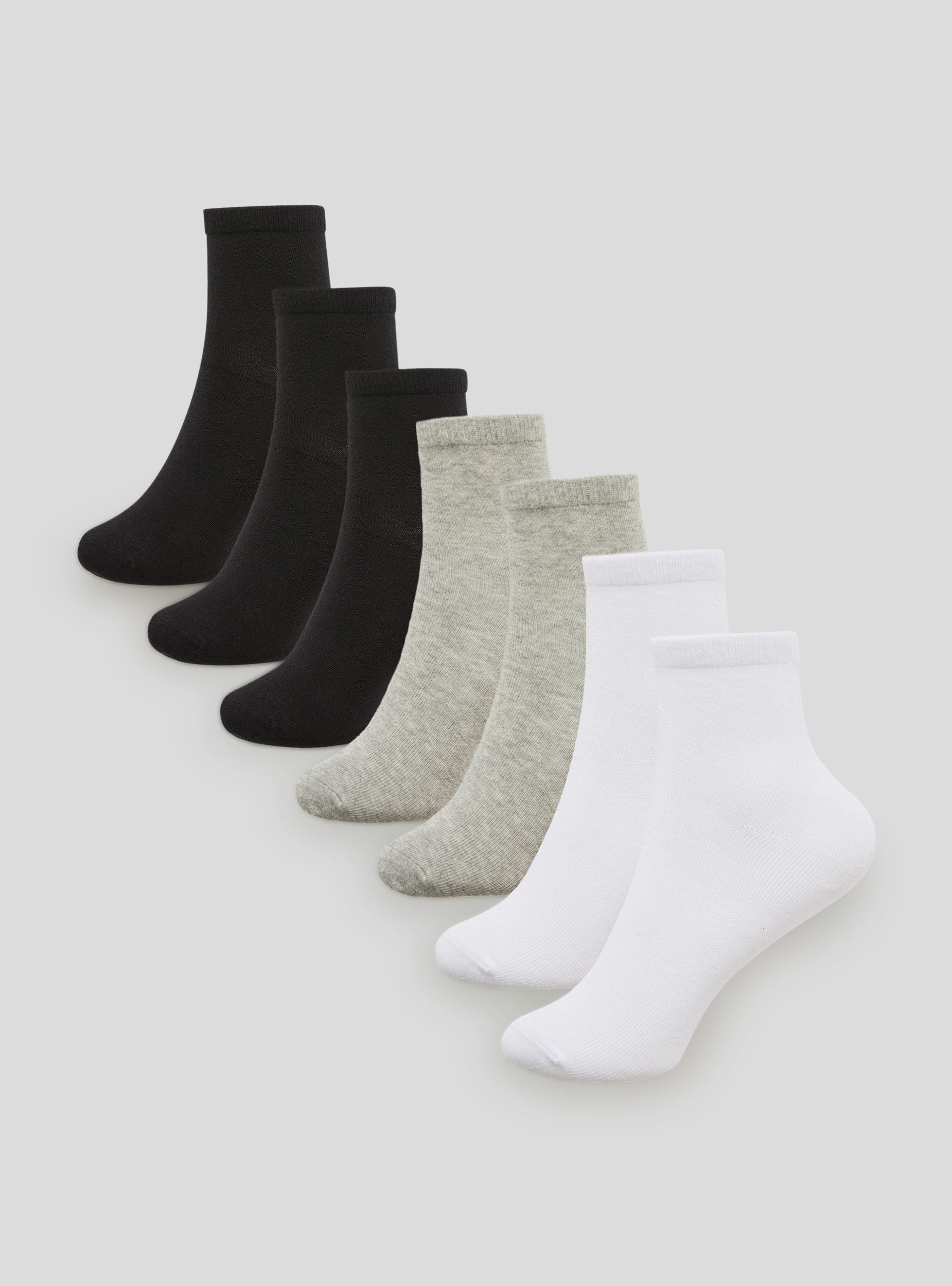 Confezione composta da 7 paia di calzini da bambino, ideali per garantire comfort e praticità durante tutta la giornata. Il design a tinta unita li rende versatili e perfetti per ogni occasione, adattandosi facilmente a diversi outfit. Un'opzione funzionale e sempre utile, pensata per accompagnare le attività quotidiane con uno stile semplice e curato.Dettagli