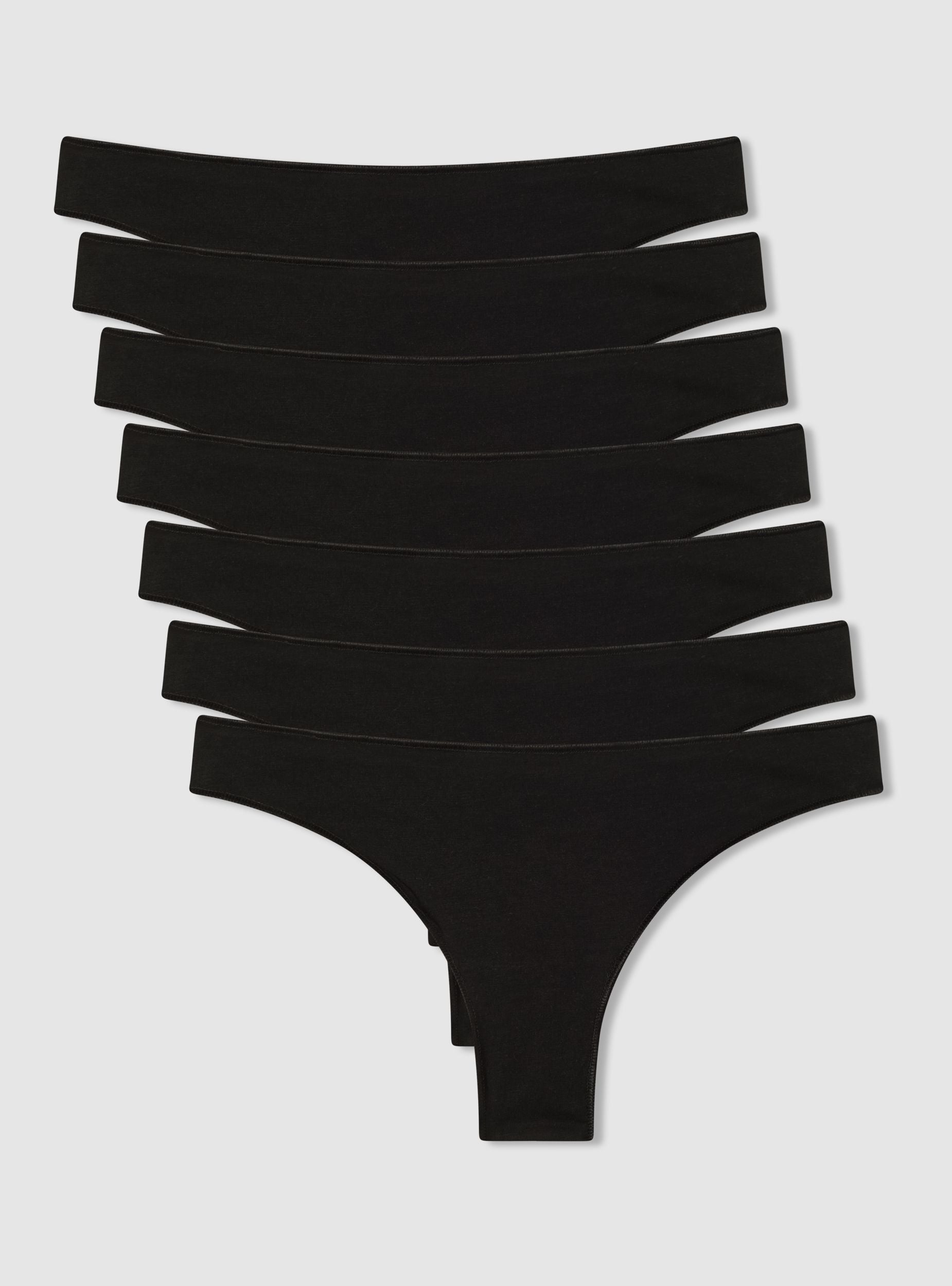 Confezione composta da 7 slip da donna con vestibilità brasiliana. Ideali per un look casual e confortevole. Perfette per essere indossate sotto abiti aderenti grazie alla vestibilità comoda. La tinta unita li rende versatili e adatti a ogni occasione. Un capo essenziale per il guardaroba quotidiano.Dettagli