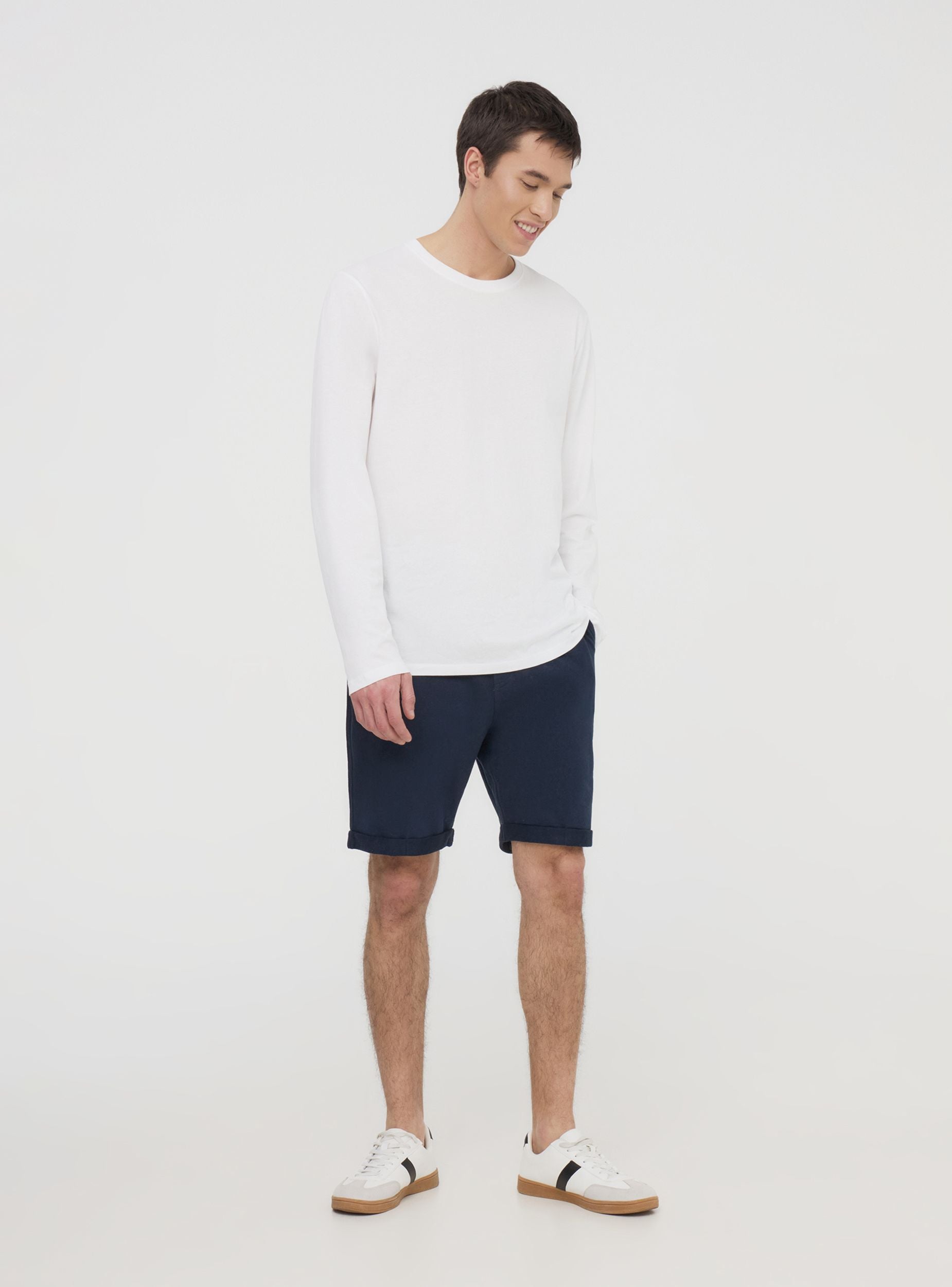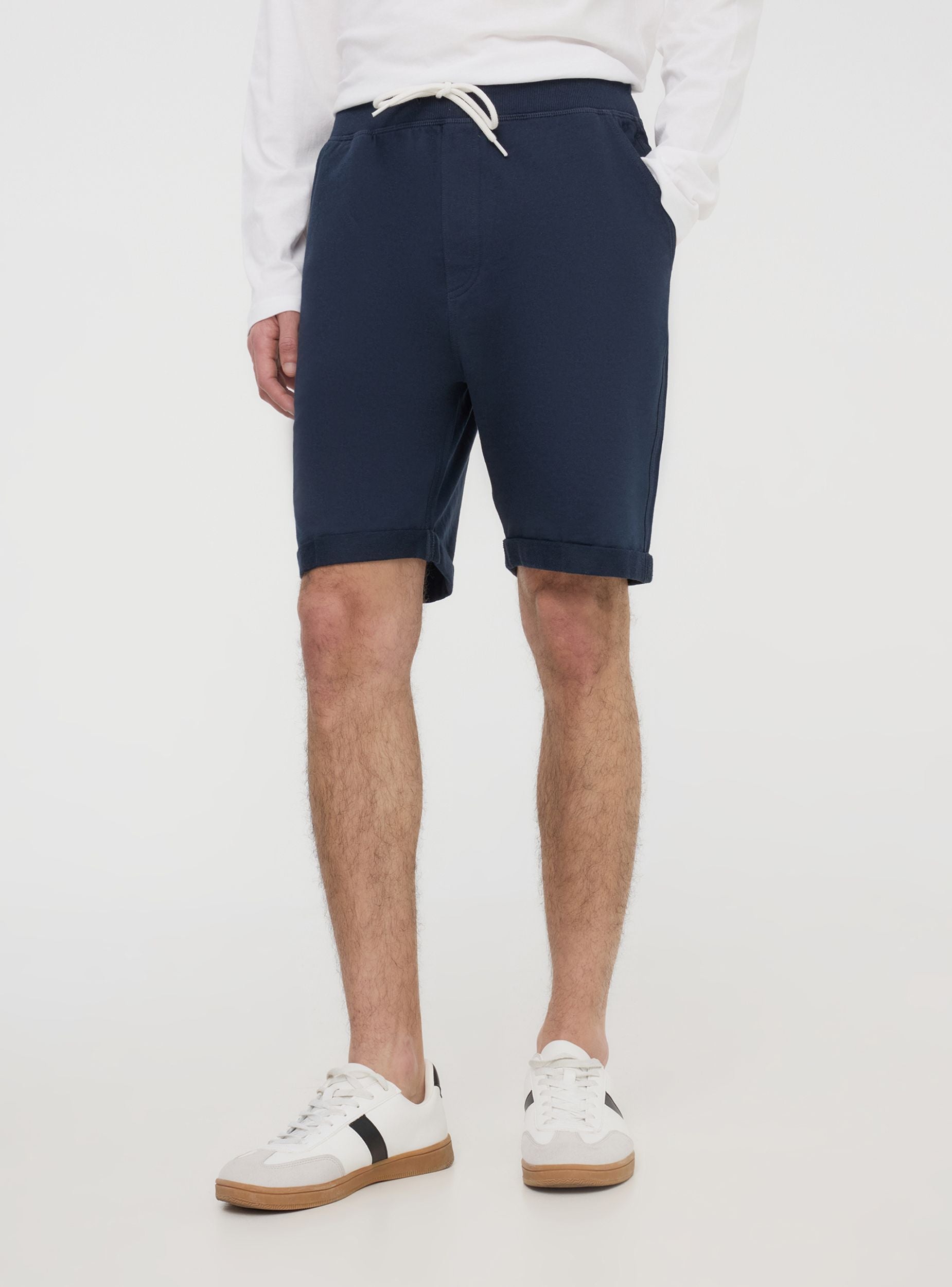 Pantaloncini chino da uomo leggeri in tessuto french terry a tinta unita che li rende versatili e comodi. Dotati di pratiche tasche laterali, offrono spazio per piccoli oggetti, mantenendo uno stile minimalista. La coulisse in vita permette di regolare la vestibilità, garantendo comfort durante l'uso. Ideali per attività quotidiane o momenti di relax, questi pantaloncini uniscono praticità e semplicità con un design pulito e funzionale.Dettagli