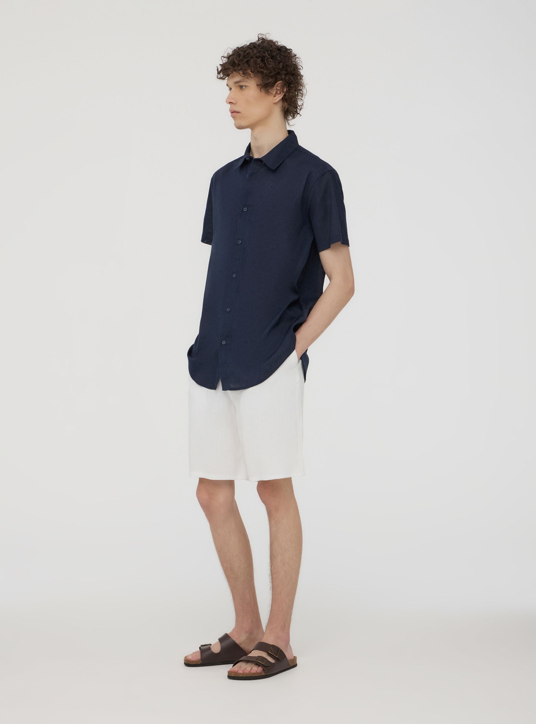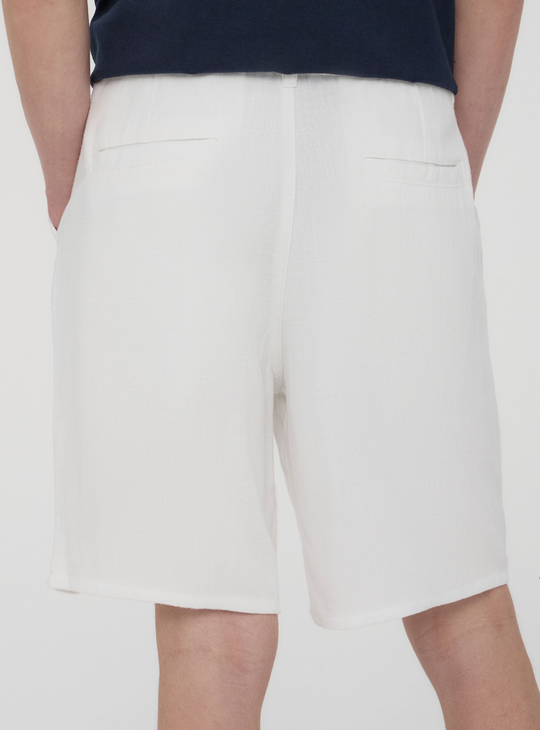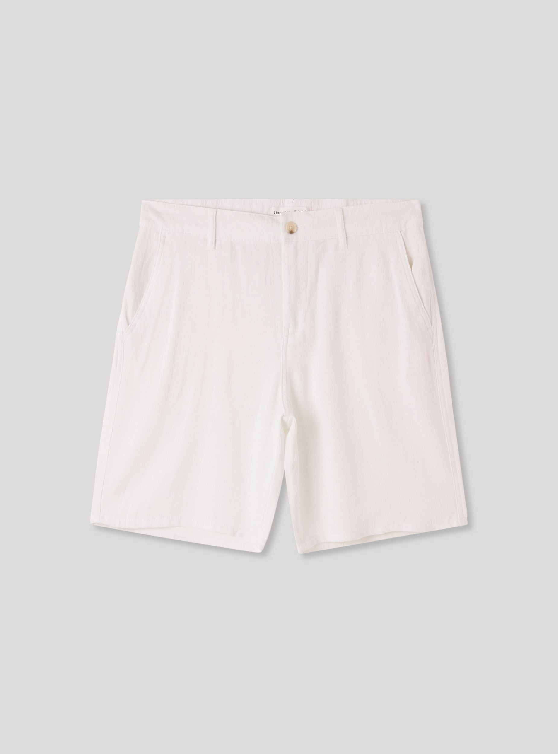 Pantaloncini da uomo in misto lino ideali per un look casual e rilassato, perfetti per il tempo libero o per giornate estive. Caratterizzati da una vestibilità regolare, presentano una chiusura con bottone e tasche laterali inclinate. Un capo versatile e confortevole, adatto a molteplici occasioni informali.Dettagli