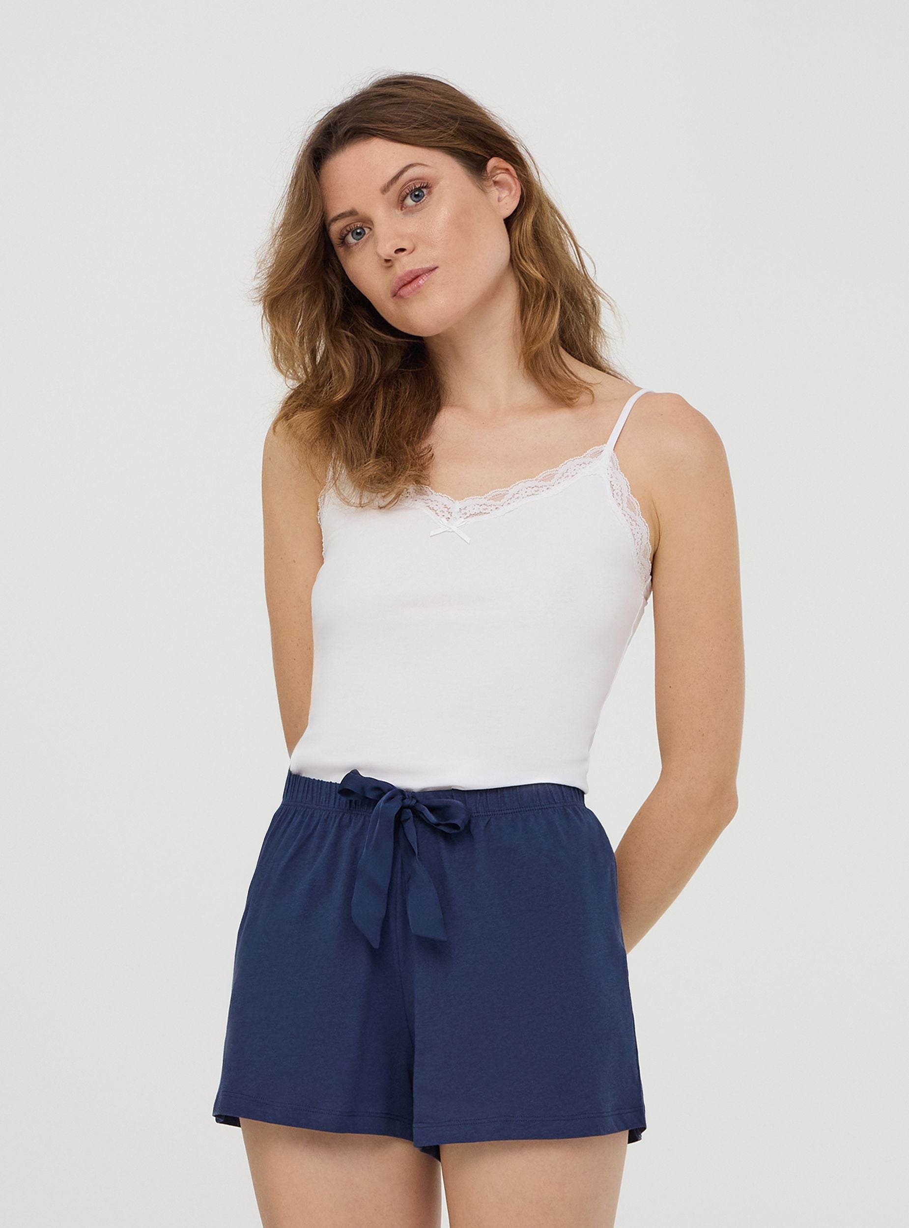 Pantaloncini del pigiama da donna ideali per serate di relax e riposo. Design corto con una pratica coulisse in vita che garantisce una vestibilità personalizzata. La tinta unita li rende versatili e facili da abbinare a diversi top per un comfort inimitabile durante il riposo.Dettagli