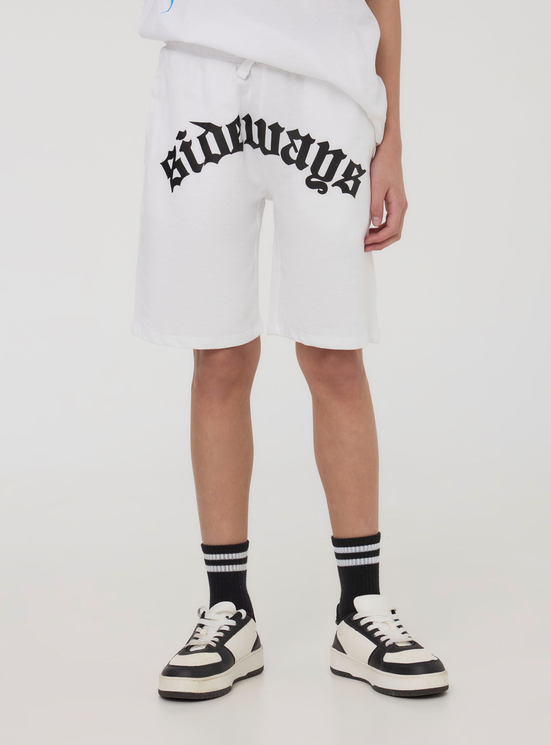 Pantaloncini della tuta leggeri da bambino perfetti per un look casual e grintoso. Dotati di coulisse regolabile in vita per un comfort ottimale, presentano una scritta in stile gotico sul davanti che aggiunge un tocco di carattere. Le tasche laterali e la tasca posteriore offrono praticità e spazio per piccoli oggetti. Ideali per il tempo libero, si abbinano facilmente a t-shirt e sneakers per un outfit urbano e alla moda.Dettagli