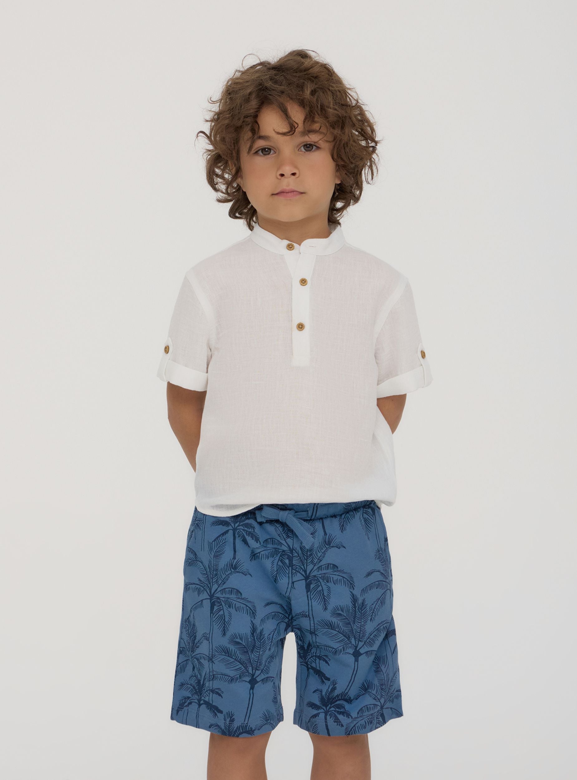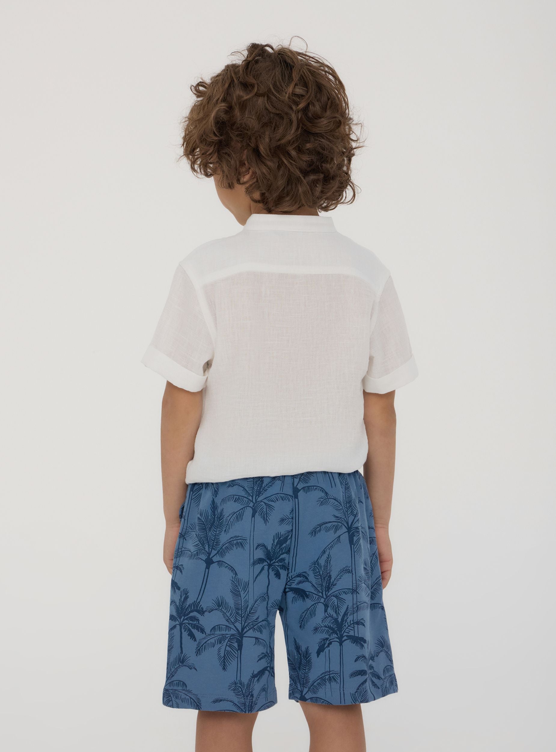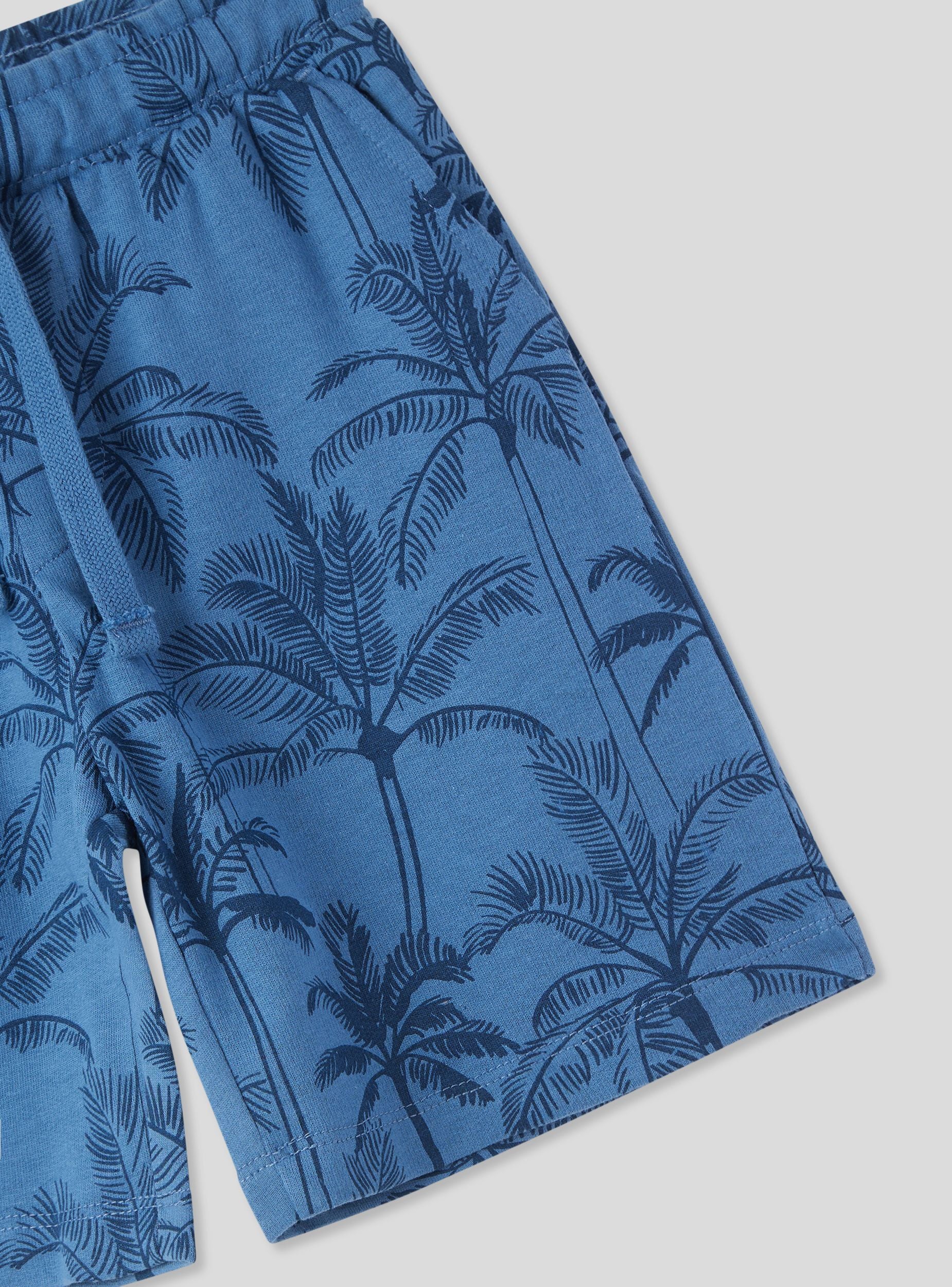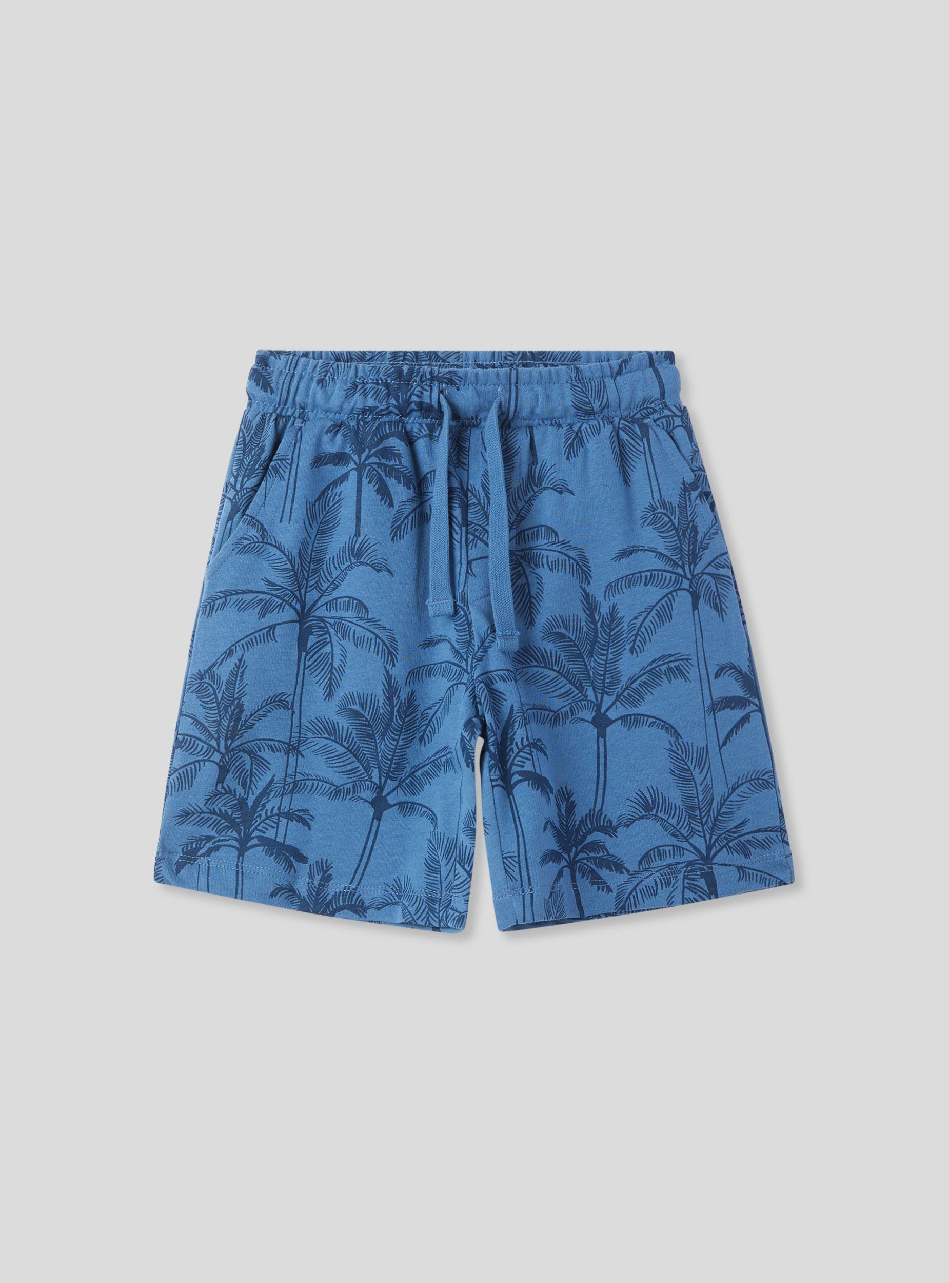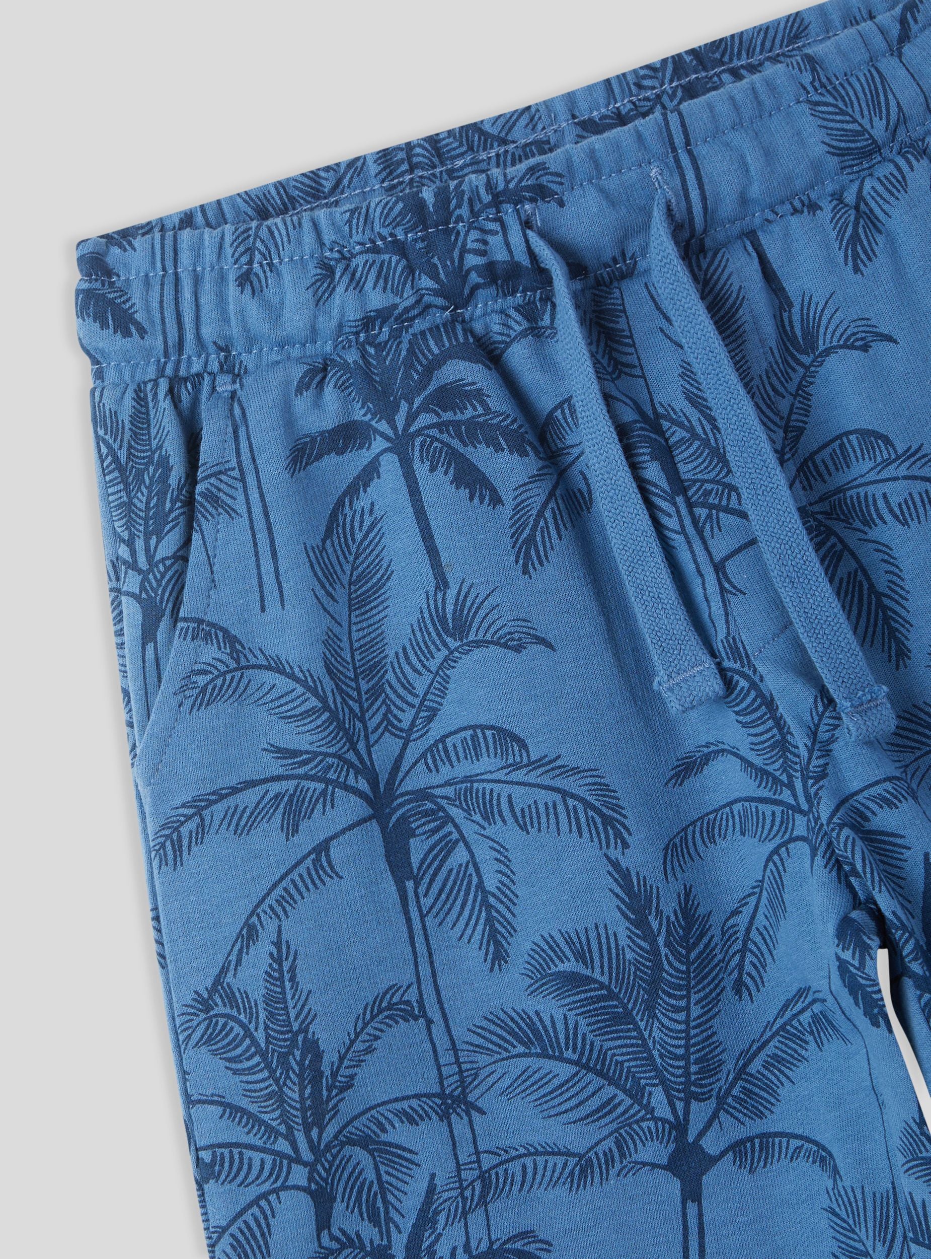 Pantaloncini della tuta leggeri da bambino, perfetti per le giornate estive grazie al design comodo e alla fantasia palme che richiama atmosfere vacanziere. La coulisse regolabile in vita assicura una vestibilità ottimale, mentre le tasche laterali offrono praticità per ogni attività. Ideali per il tempo libero e il gioco, si abbinano perfettamente a una t-shirt e sandali per un look fresco, oppure a una felpa leggera e sneakers per un outfit casual e confortevole.Dettagli