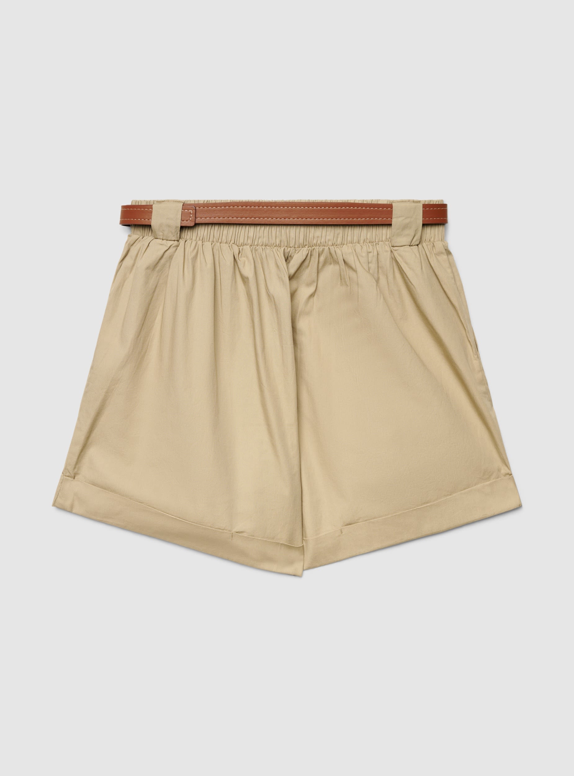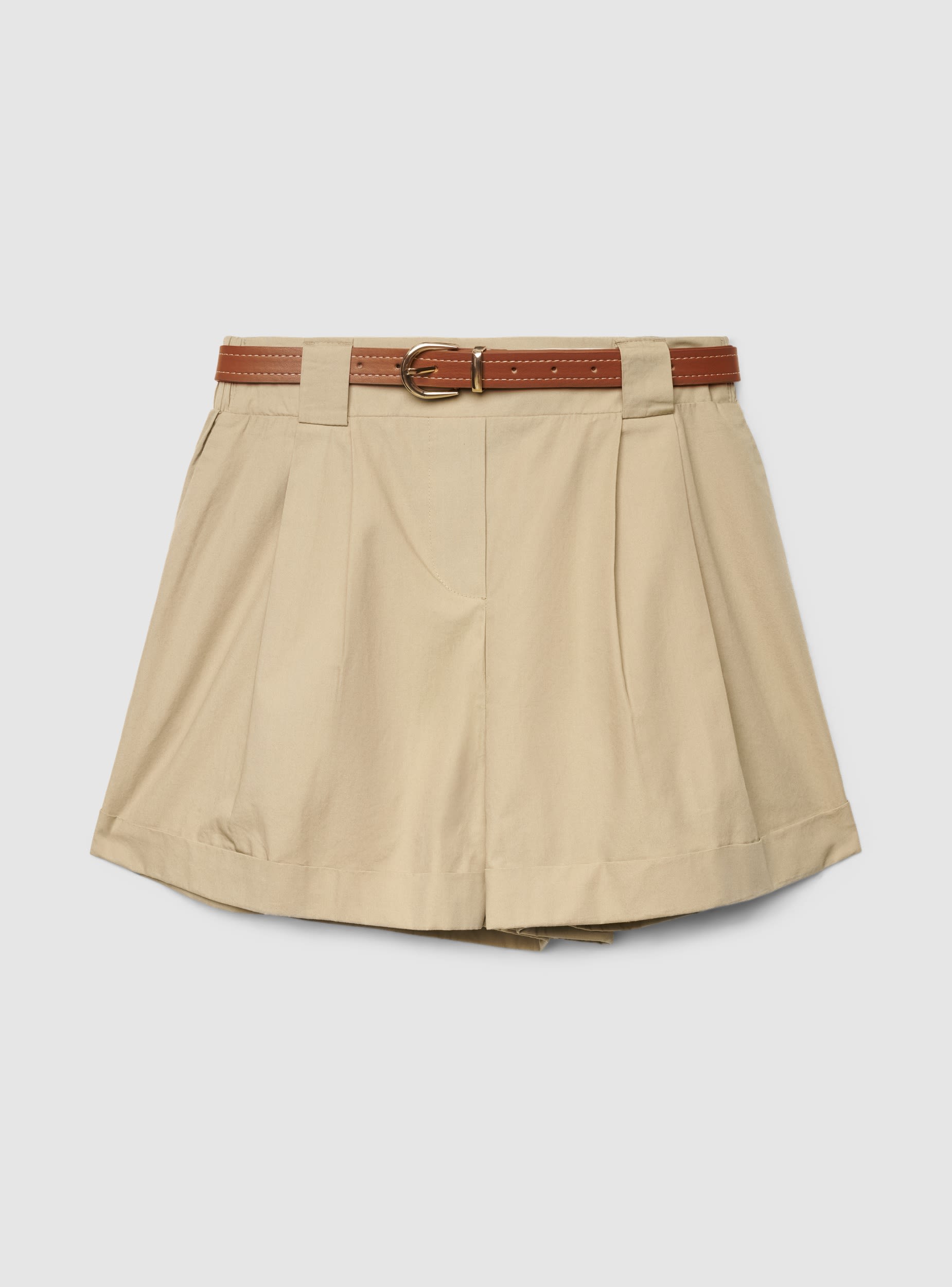 Pantaloncini da donna a tinta unita dal taglio morbido, ideali per look da città e tempo libero. Vita alta con elastico sul retro e passanti, completata da cintura con fibbia. Pinces sul davanti per una linea ordinata, tasche laterali pratiche e fondo con risvolto. Perfetti con camicie, top o blazer e sandali o sneakers.Dettagli