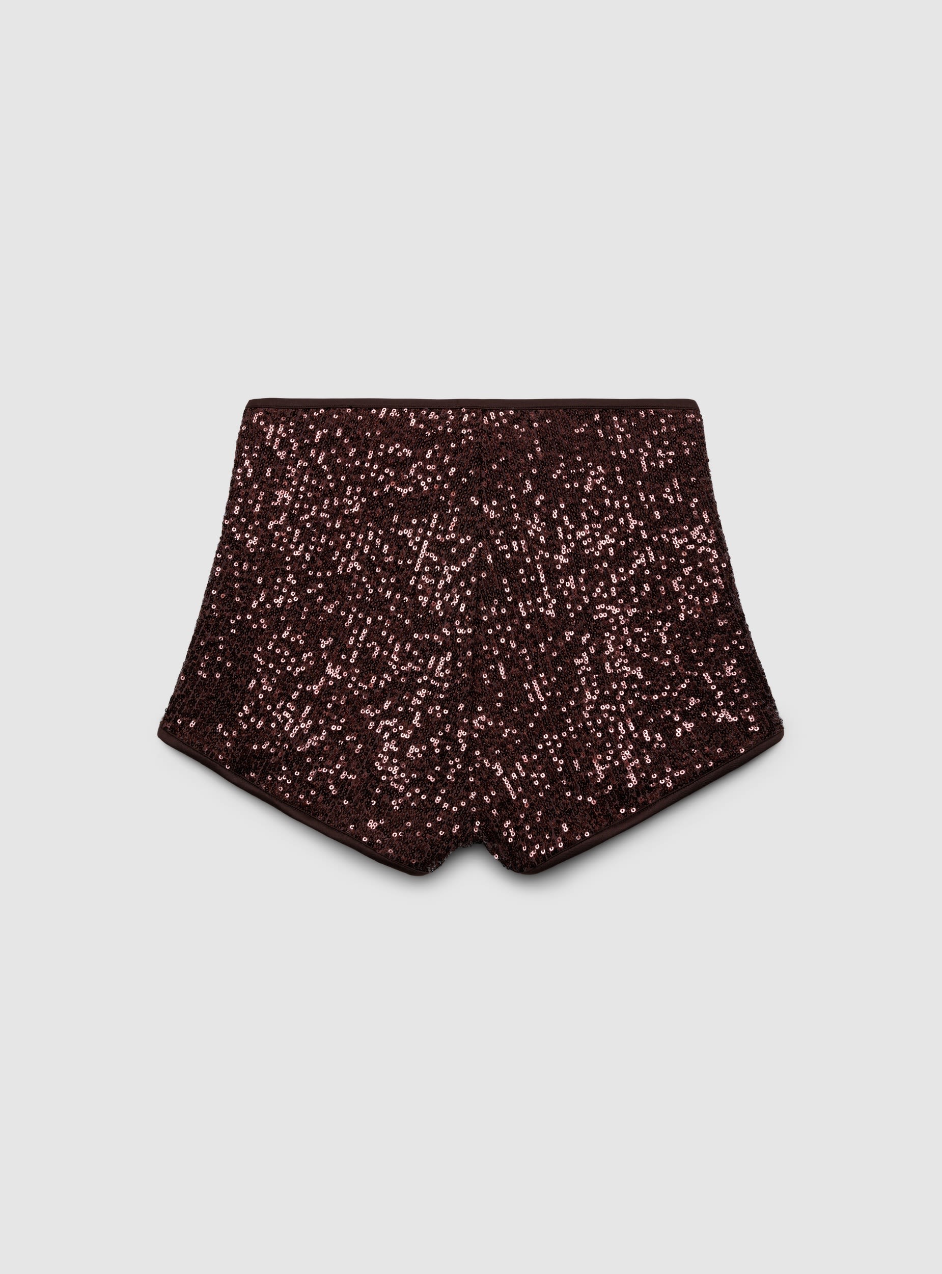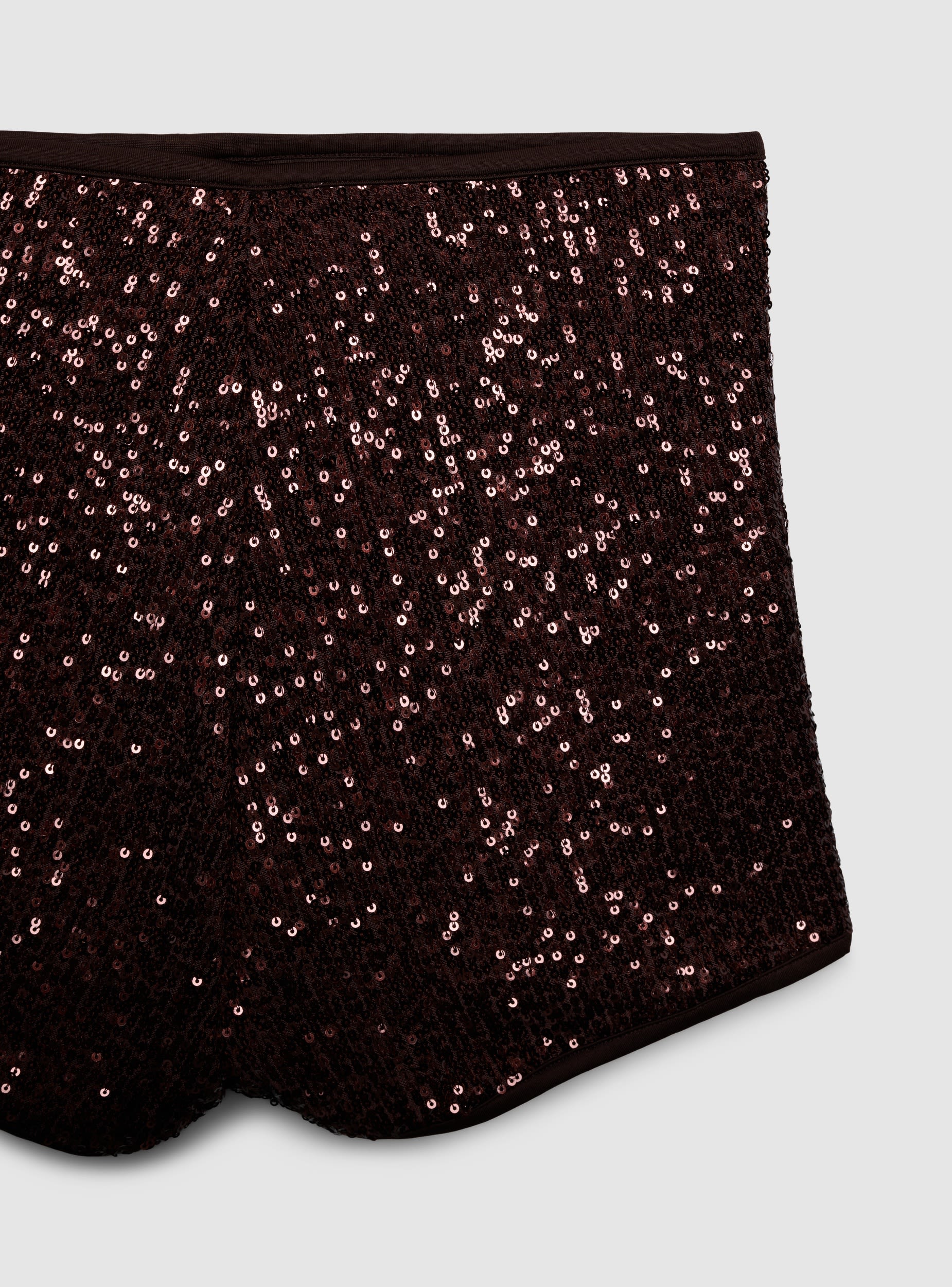 Pantaloncini da donna con paillettes all over e linea a vita alta, pensati per look da sera e occasioni speciali. La fascia in vita è elasticizzata per una vestibilità comoda e stabile. Design essenziale senza tasche né chiusure, facile da abbinare a top aderenti, camicie morbide e blazer per un outfit d’impatto.Dettagli