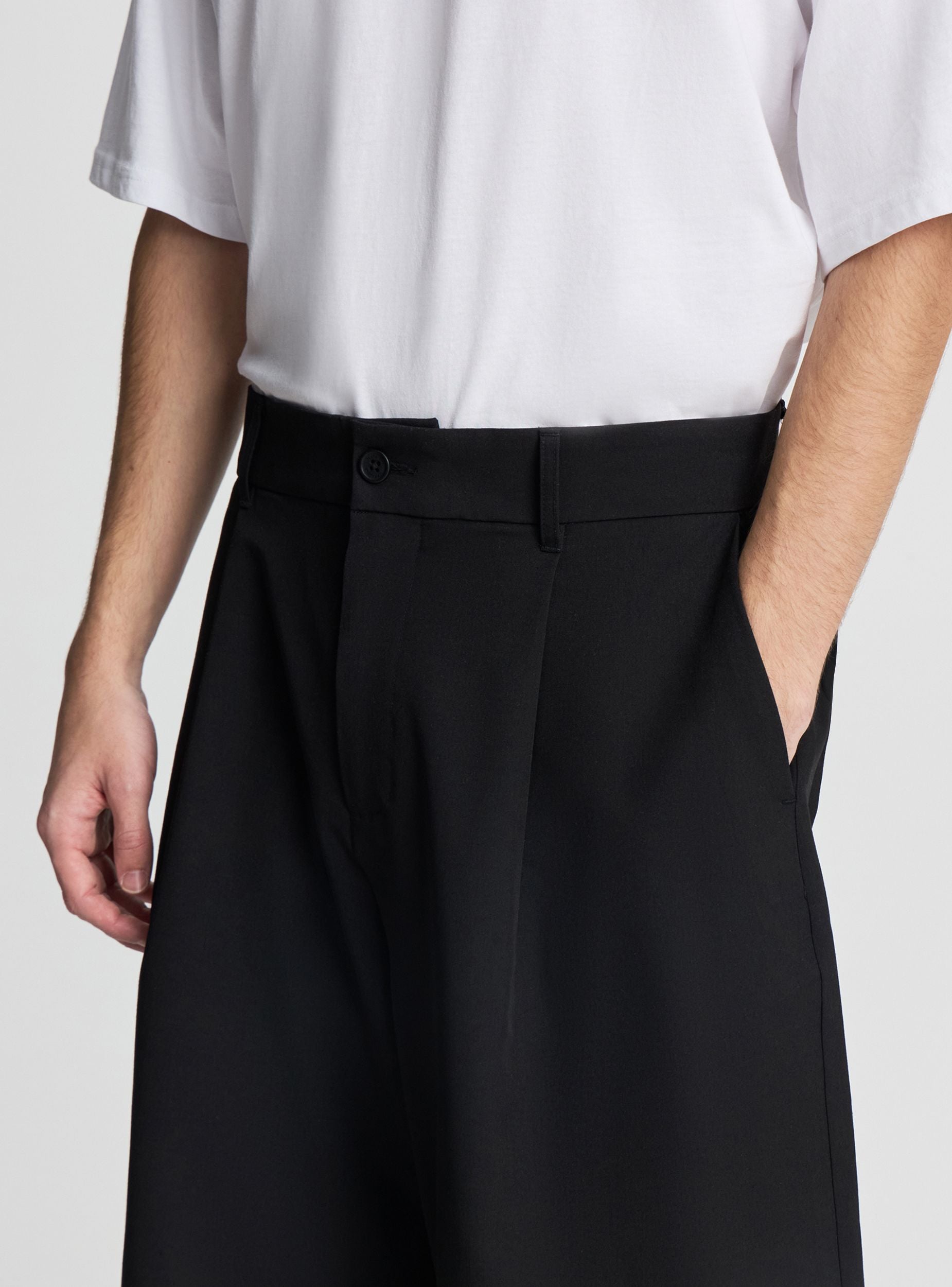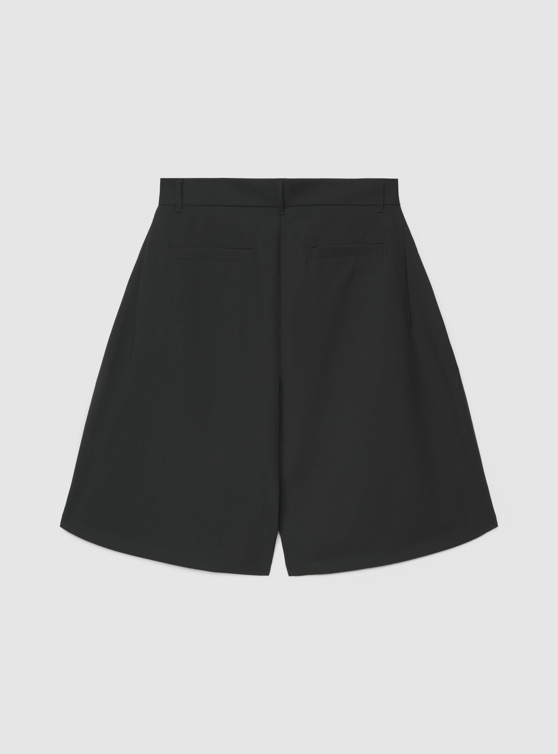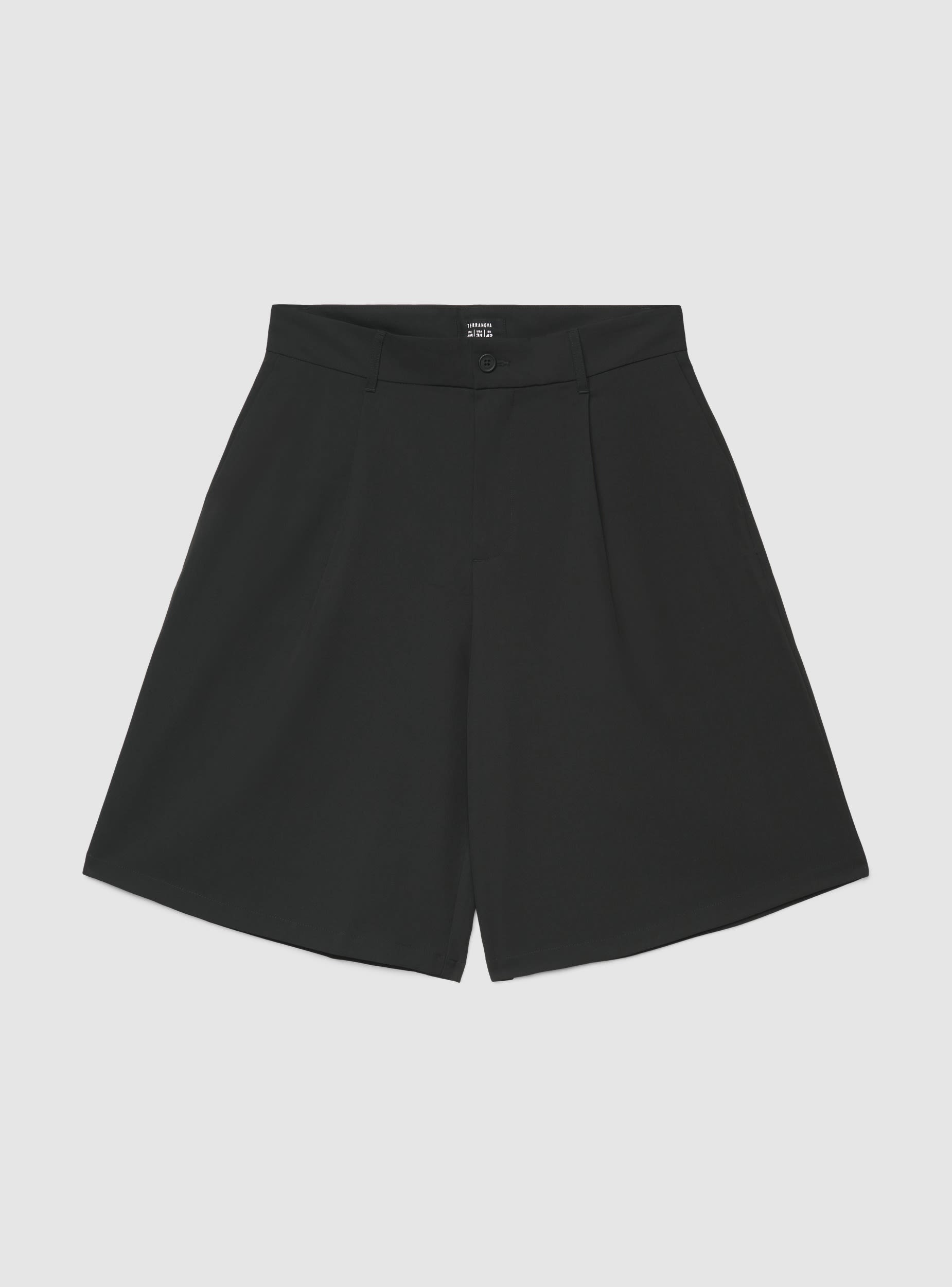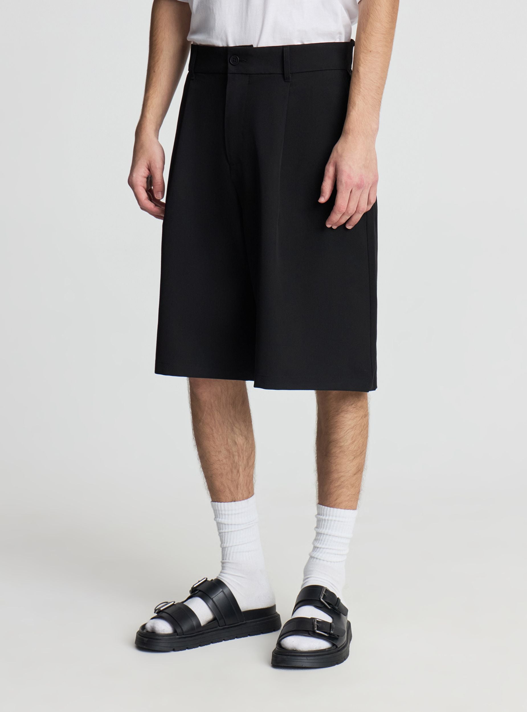 Pantaloncini da uomo a tinta unita dal taglio bermuda, ideali per look urban e occasioni smart. Vita media con passanti, chiusura con bottone e zip e pinces frontali che slanciano la linea. Tasche laterali a taglio e tasche posteriori a filetto per un tocco ordinato. Perfetti con camicia, polo o t-shirt e sneakers o mocassini.Dettagli
