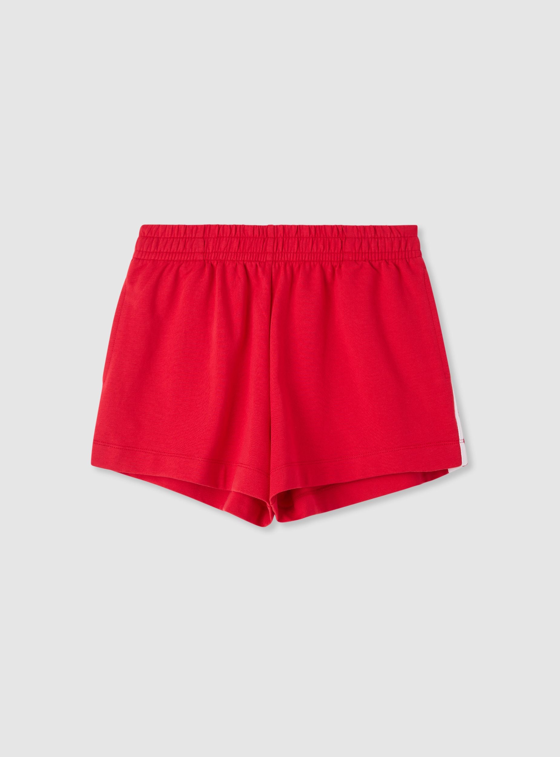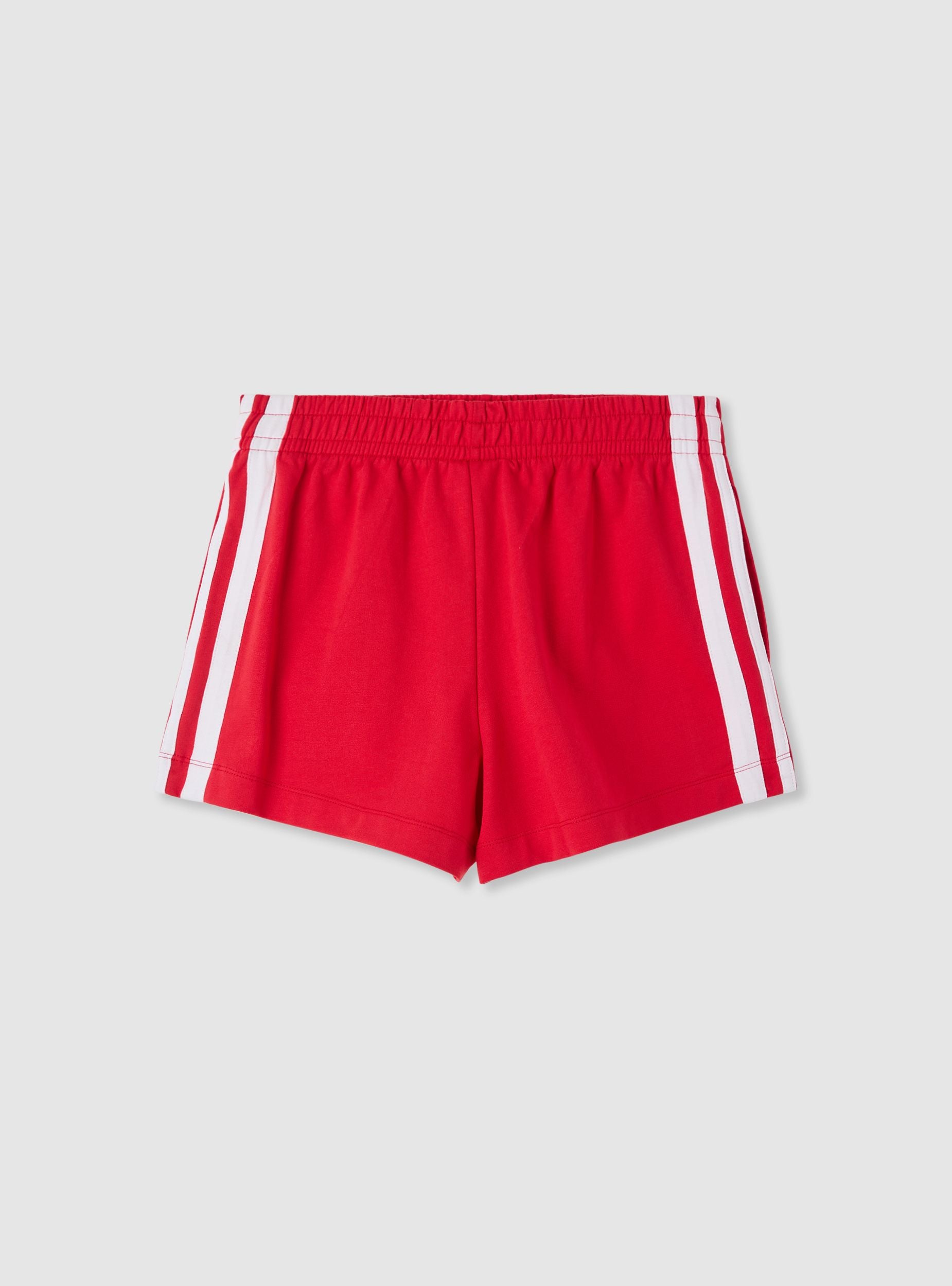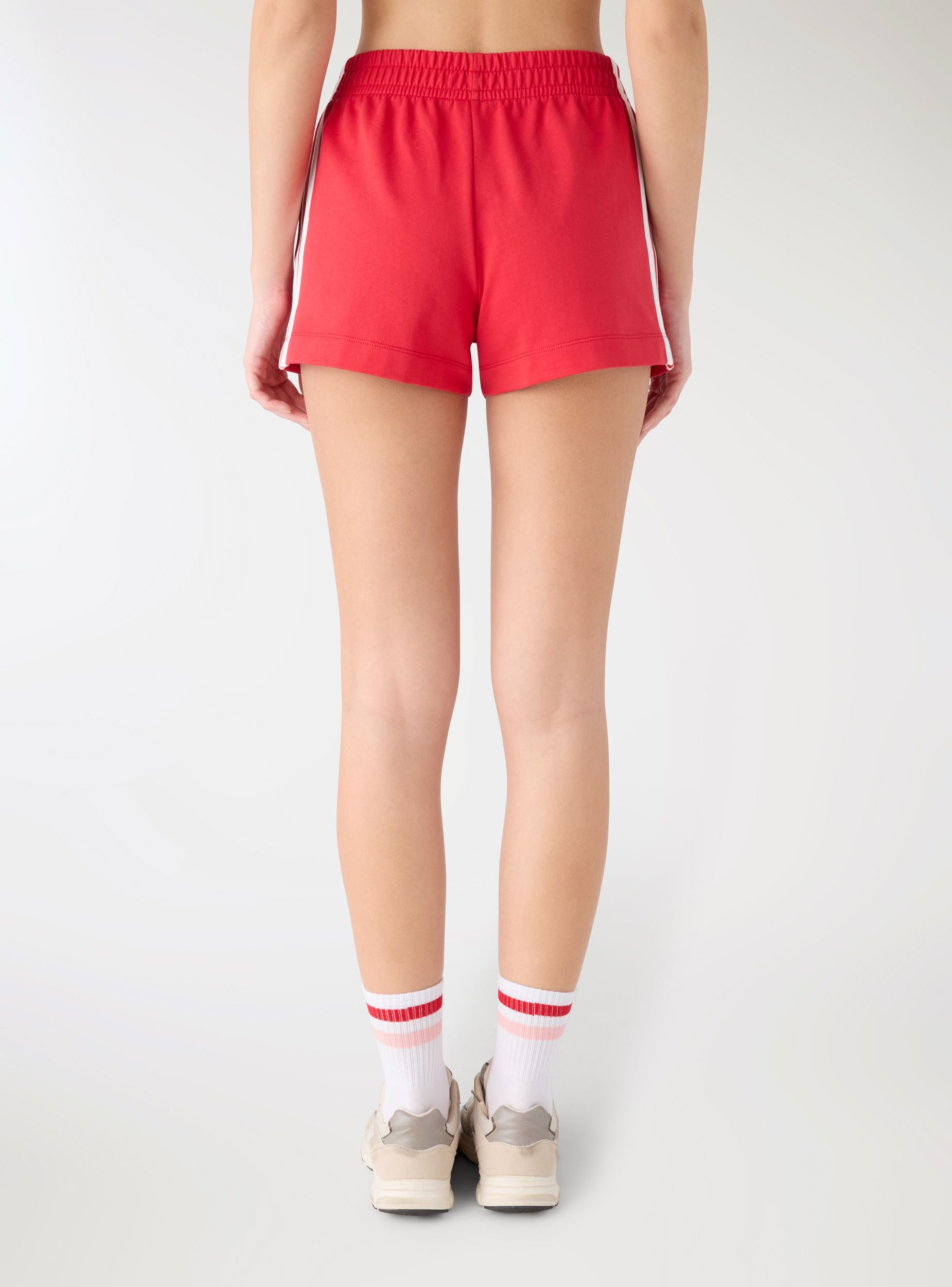 Pantaloncini da donna elasticizzati con fascia in vita e lunghezza corta. Design a tinta unita con bande laterali a contrasto che richiamano lo stile sportivo, perfetti per allenamento, tempo libero e look casual. Vestibilità regular. Facili da abbinare a maglietta e sneakers. Tessuto leggero.Dettagli