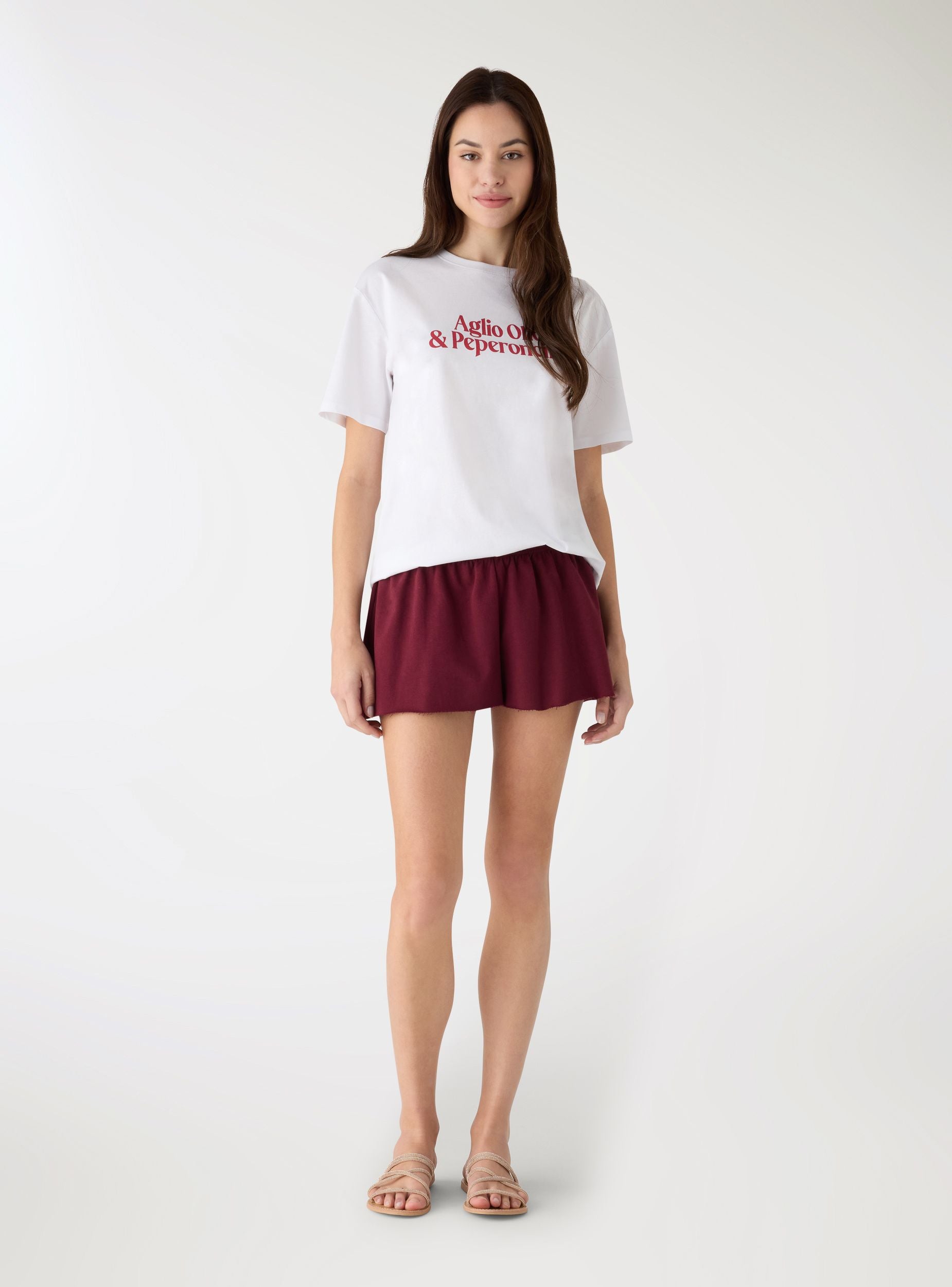 Pantaloncini da donna a tinta unita, ideali per il tempo libero e l’allenamento leggero. Modello svasato con vita elasticizzata che assicura comfort e libertà di movimento. Orlo rifinito a taglio vivo per un tocco disinvolto. Perfetti con una maglietta basic e sneakers per un look casual oppure con una felpa leggera per le uscite di giorno. Tessuto leggero.Dettagli