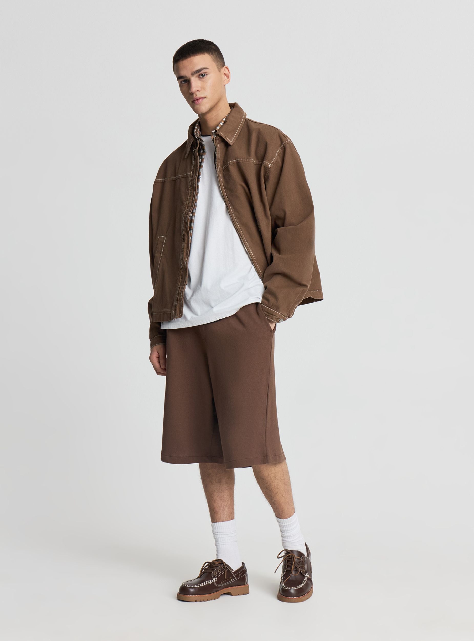 Bermuda da uomo elasticizzata in tinta unita, ideali per allenamento e tempo libero. Vita con elastico e coulisse per una regolazione comoda, lunghezza sopra il ginocchio e vestibilità regular. Tasche laterali per essenziali e tasca applicata sul retro. Facili da abbinare a maglietta e sneakers per un look sporty casual. Realizzati in tessuto pesante.Dettagli