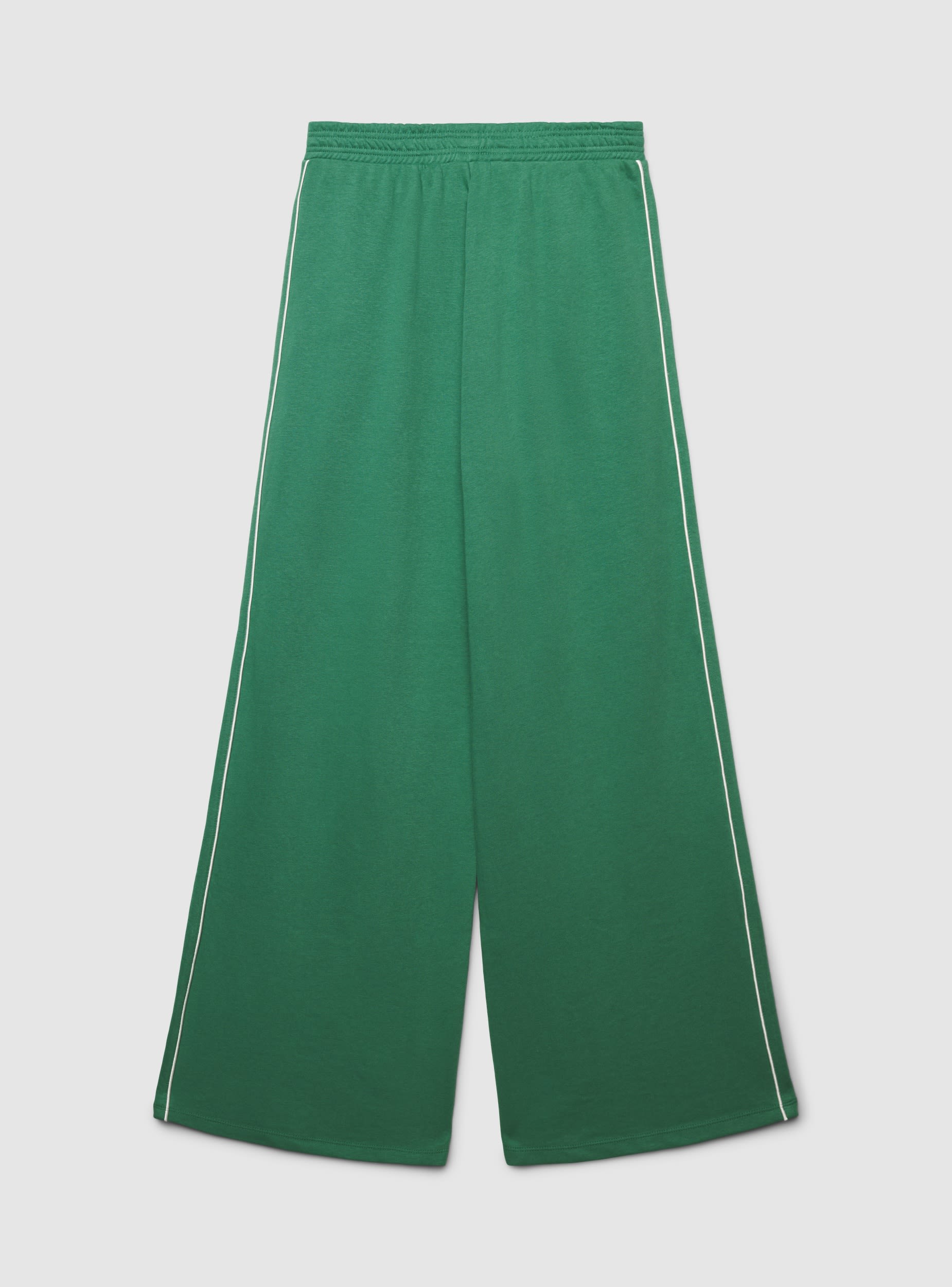 Pantaloni tuta da donna in tinta unita, a gamba ampia con bande a contrasto lungo i lati. Vita con elastico per comfort quotidiano e libertà di movimento, ideale per allenamento leggero, relax o look sportivo. Tasche laterali pratiche. Facili da abbinare a felpe con cappuccio o magliette e sneakers per un outfit casual.Dettagli