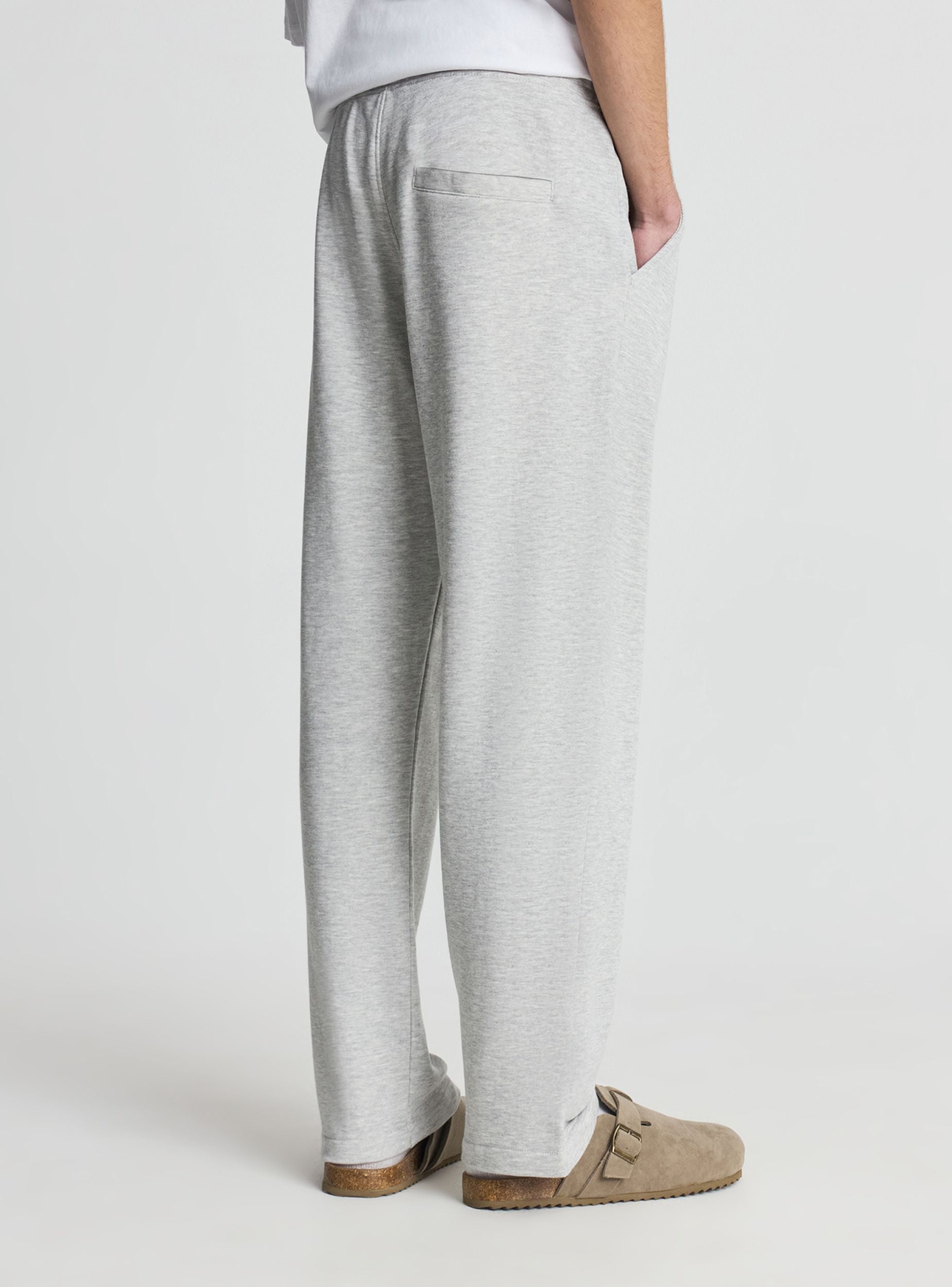 Pantaloni tuta da uomo a tinta unita, perfetti per relax e tempo libero. Vita elasticizzata con coulisse regolabile per comfort su misura. Tasche laterali. Vestibilità relaxed ideale per uscite casual o allenamenti leggeri, facile da abbinare a felpe con cappuccio o magliette e sneakers. Tessuto leggero.Dettagli
